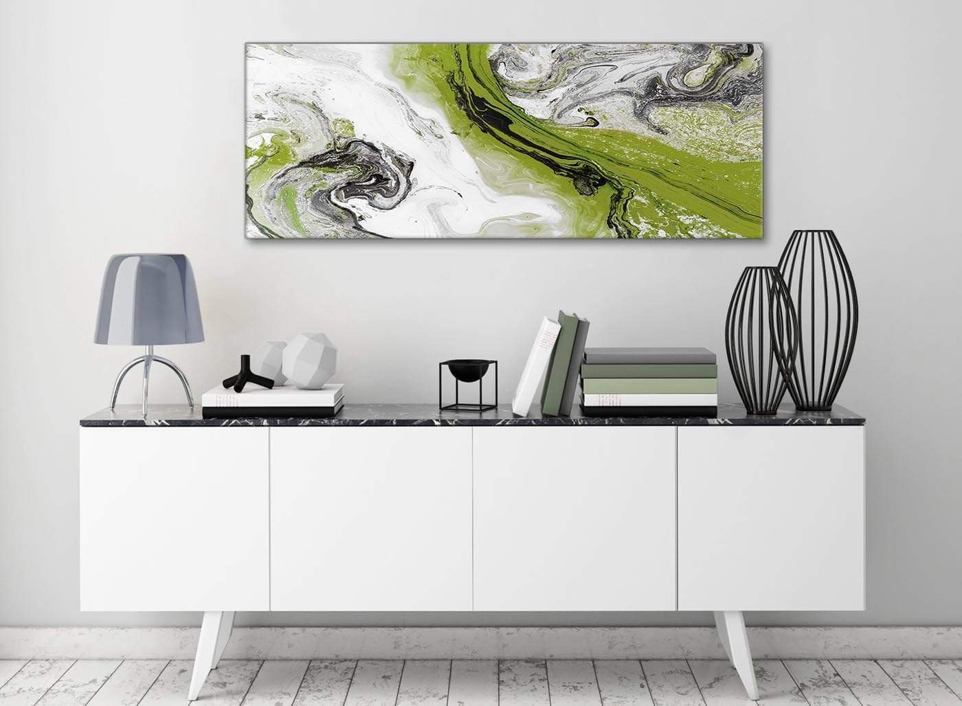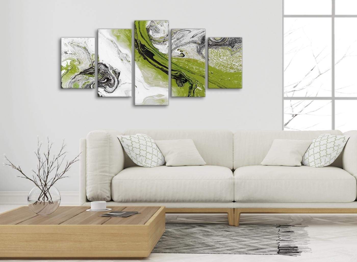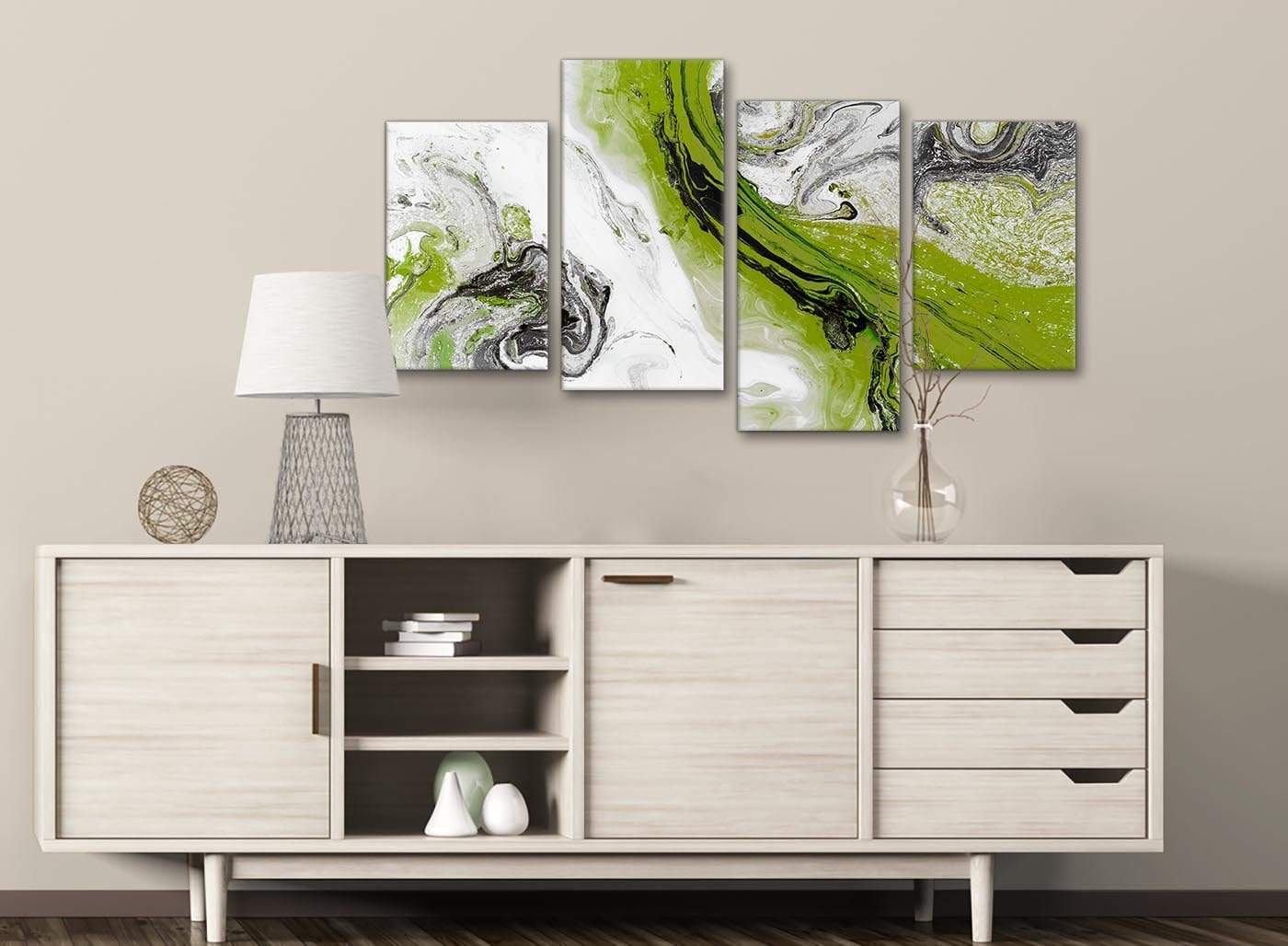 Lime Green and Grey Swirl Bedroom Canvas Pictures Accessories - Abstract Print