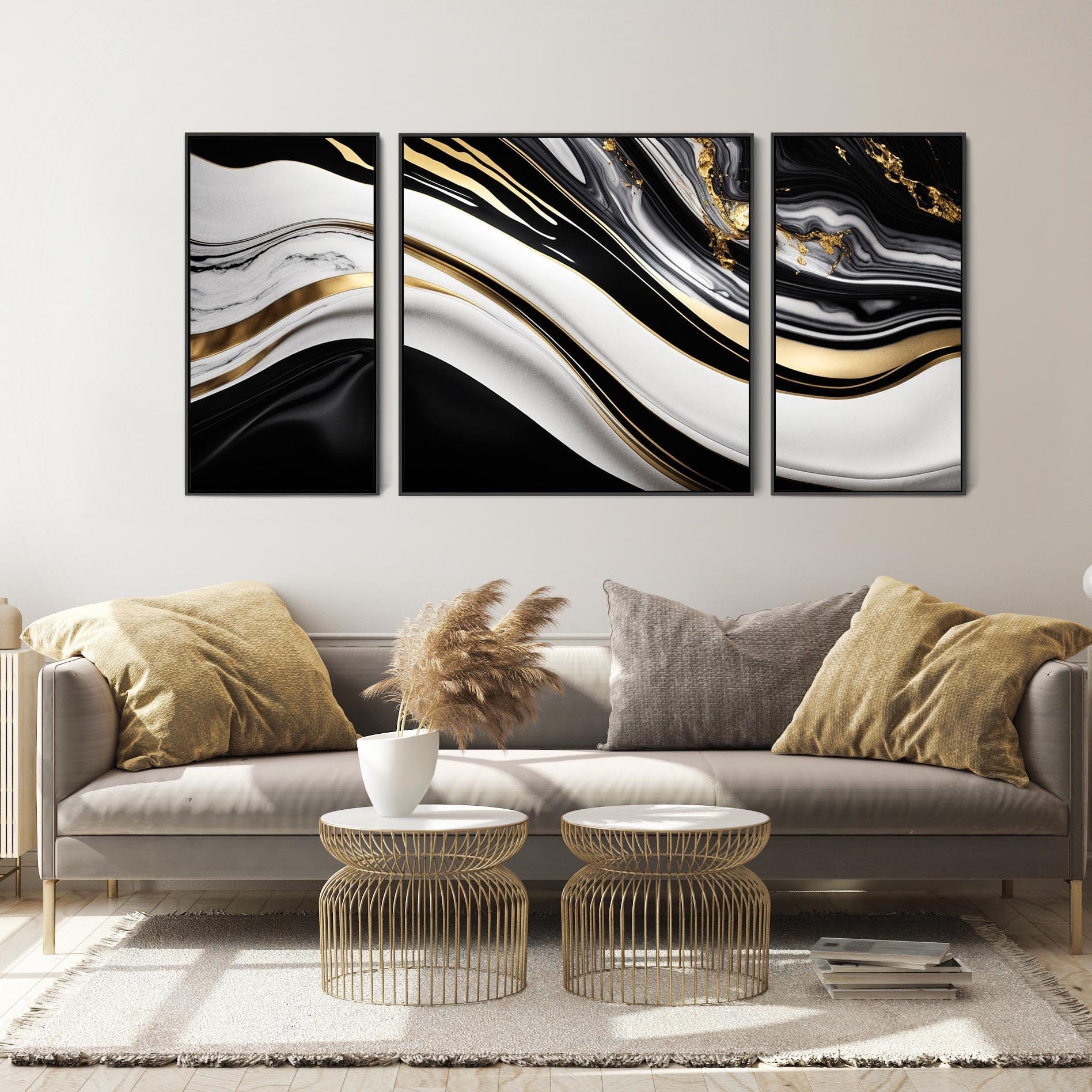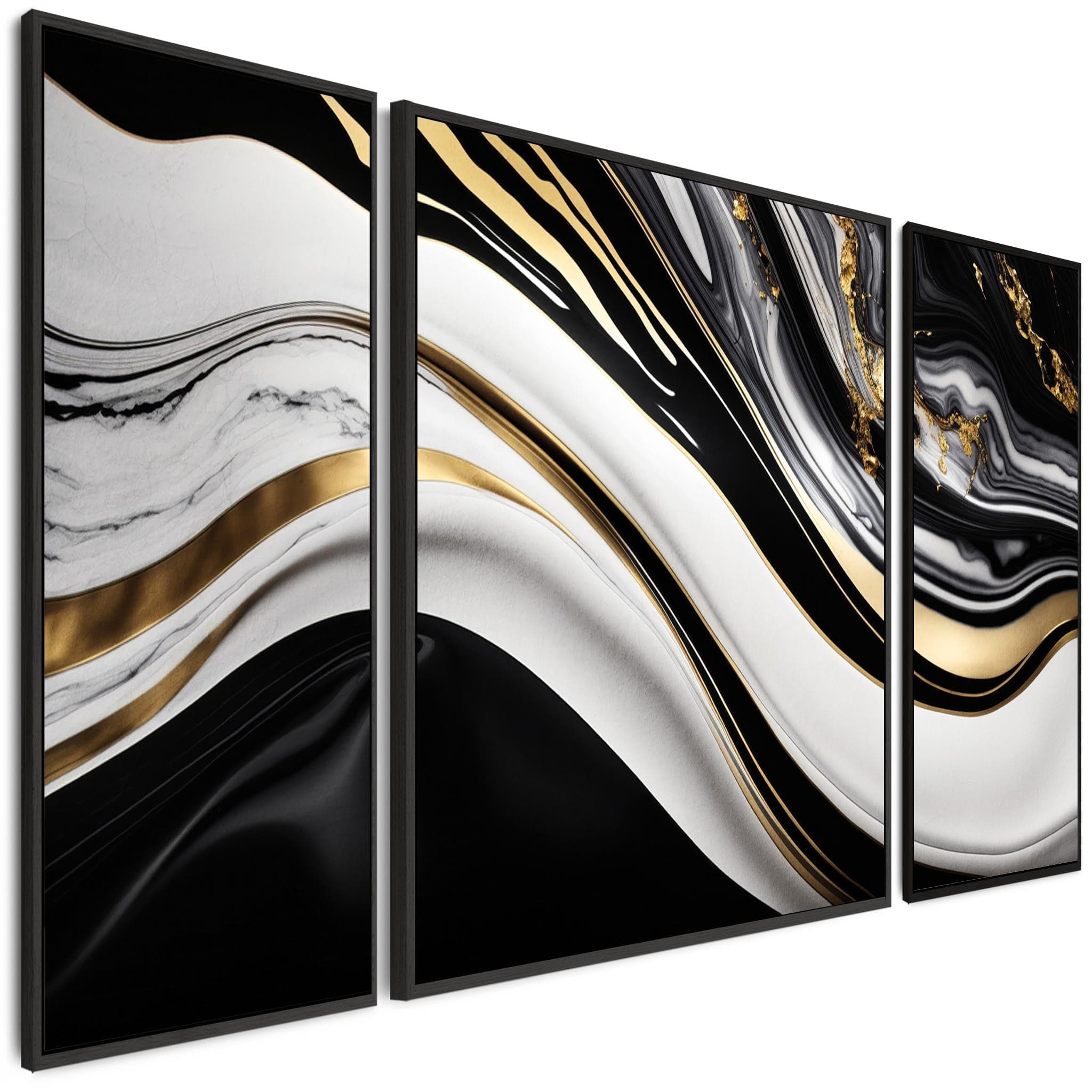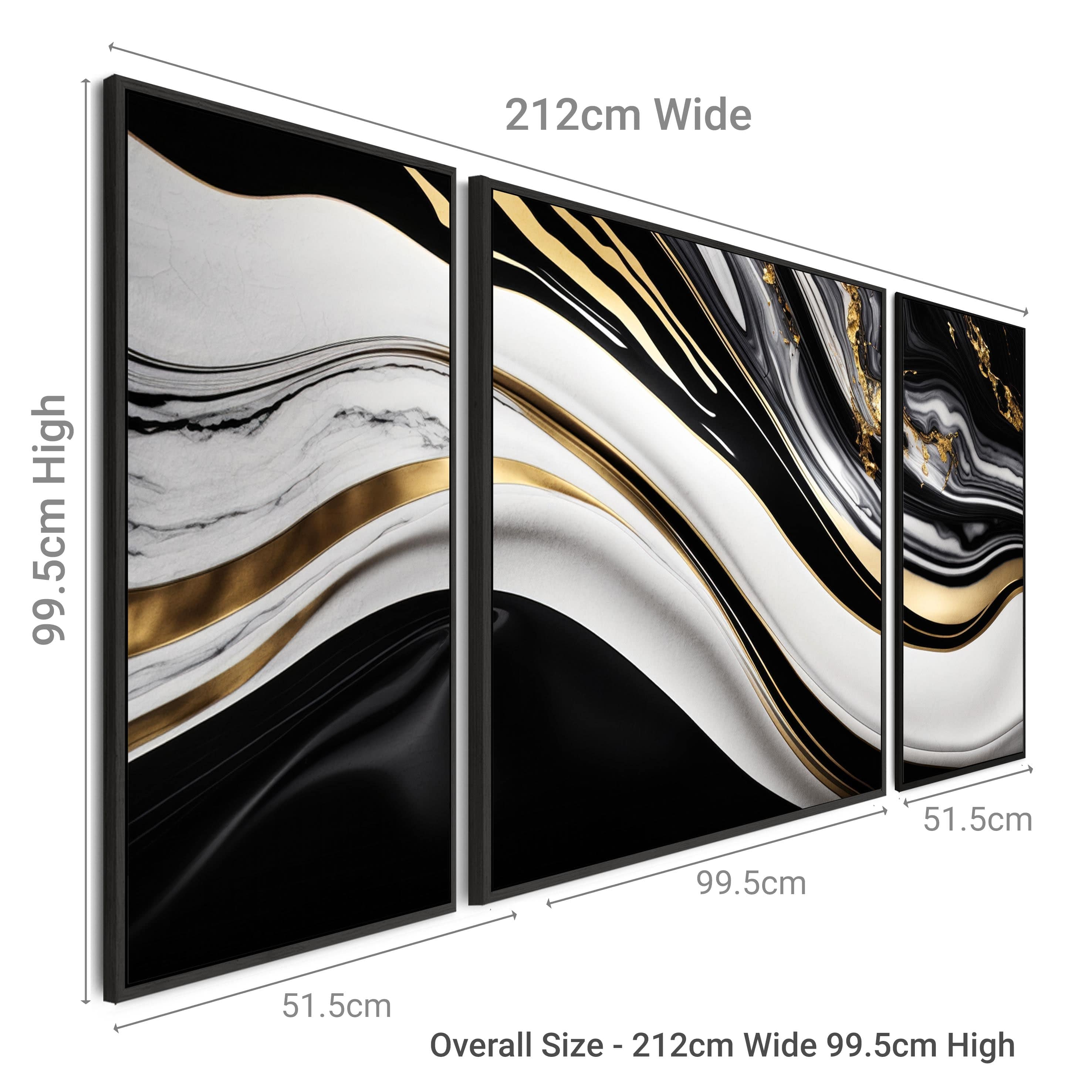 Extra Large Black Gold Framed Wall Art - Modern XXL Set 3 Canvas - 212cm Wide