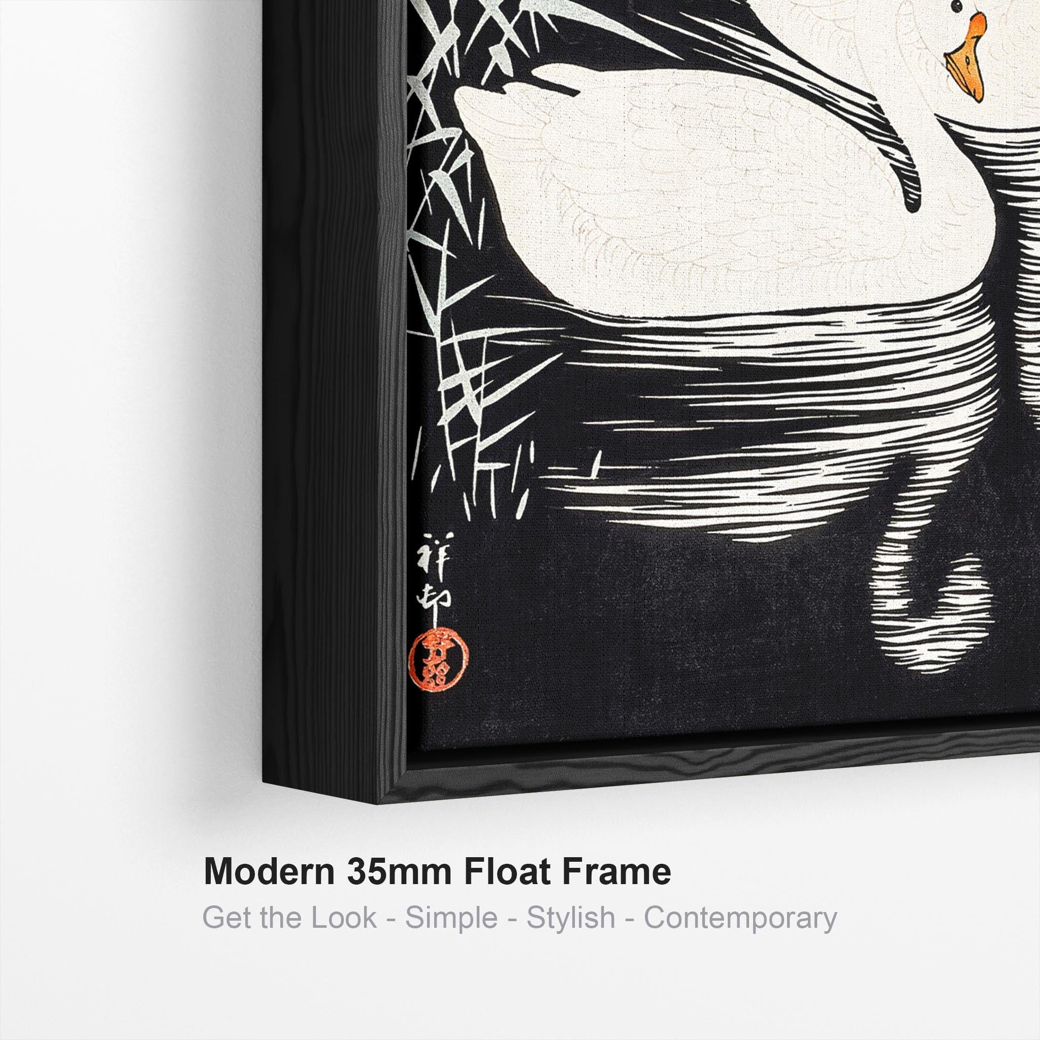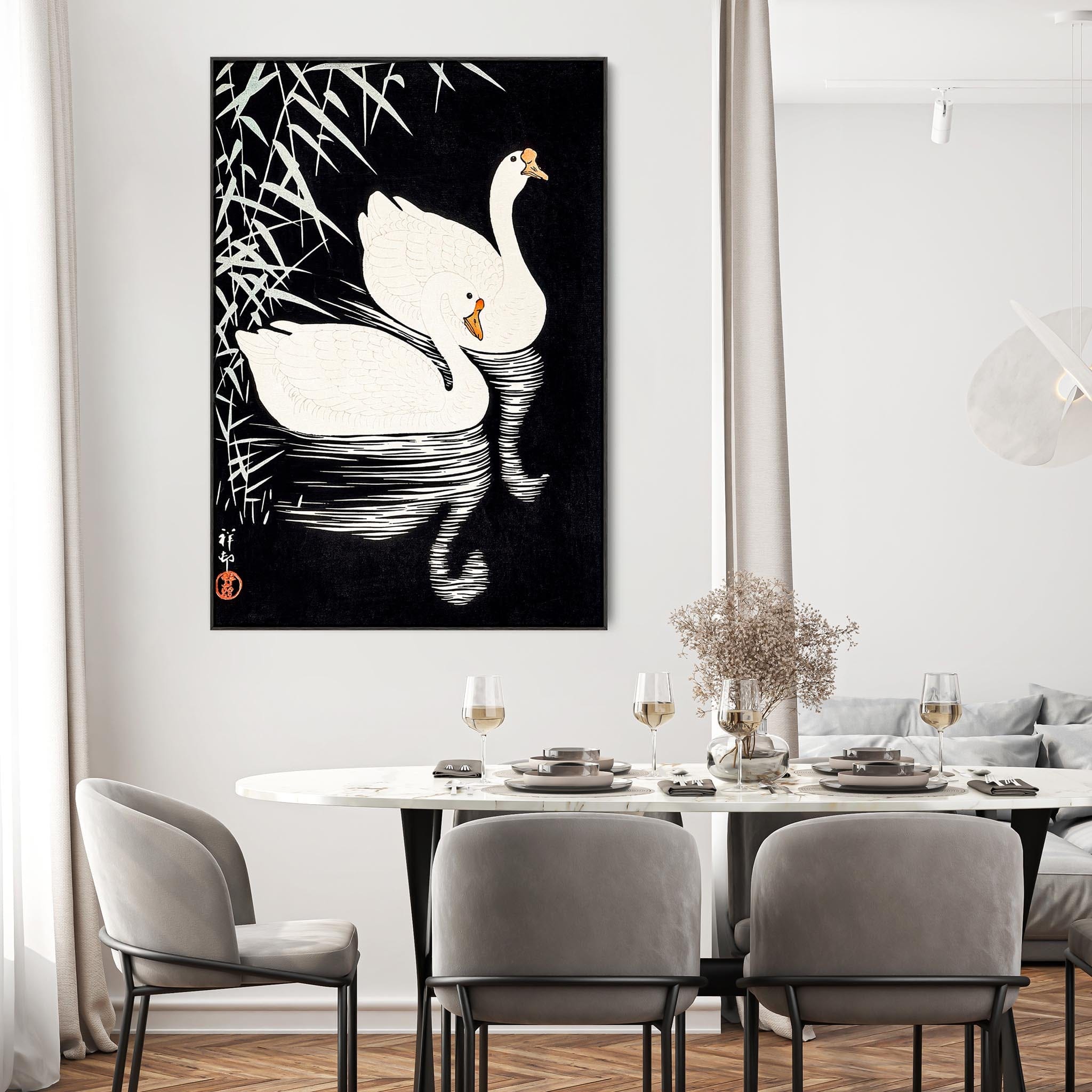 White Swans Japanese Wall Art Framed Canvas Print of Ohara Koson Painting