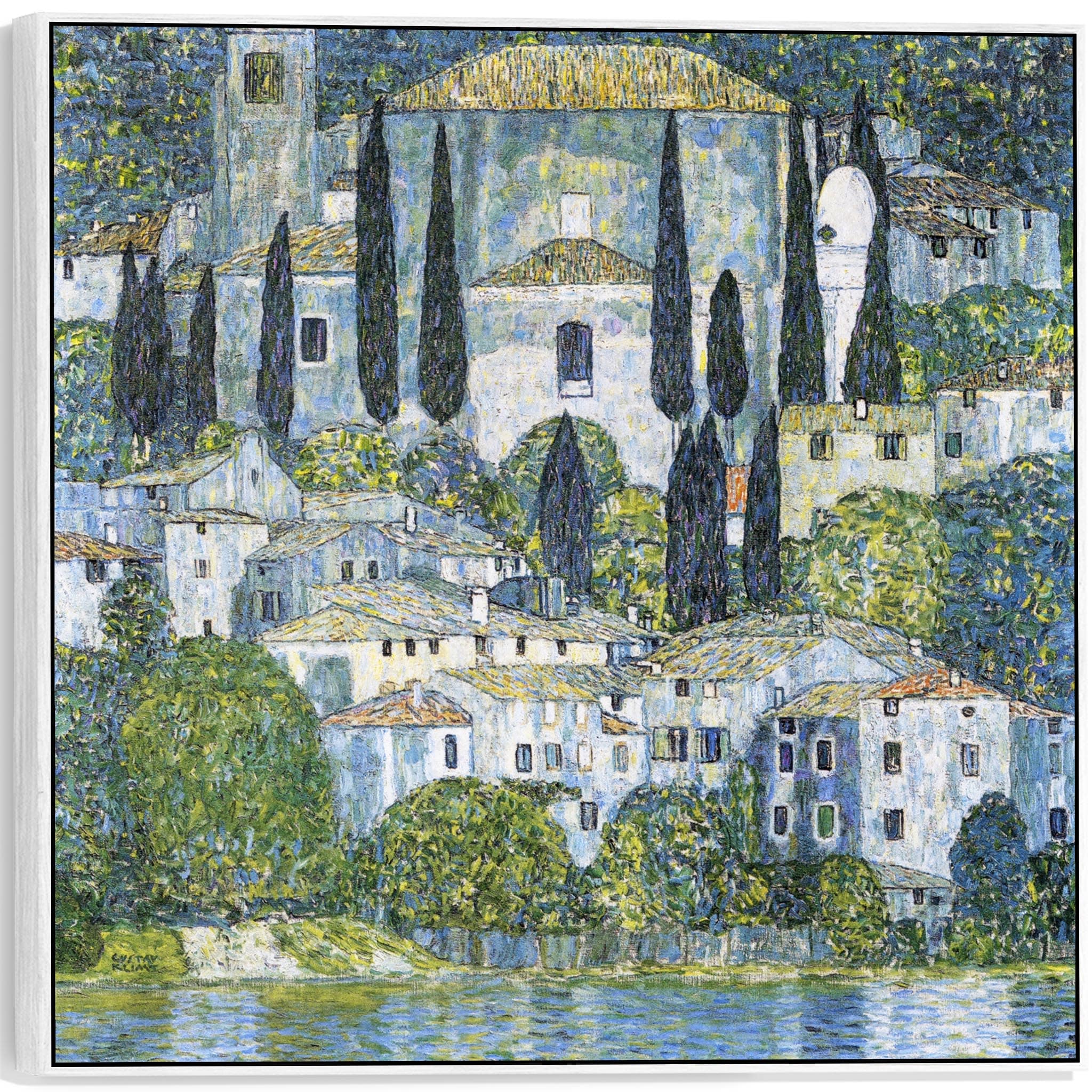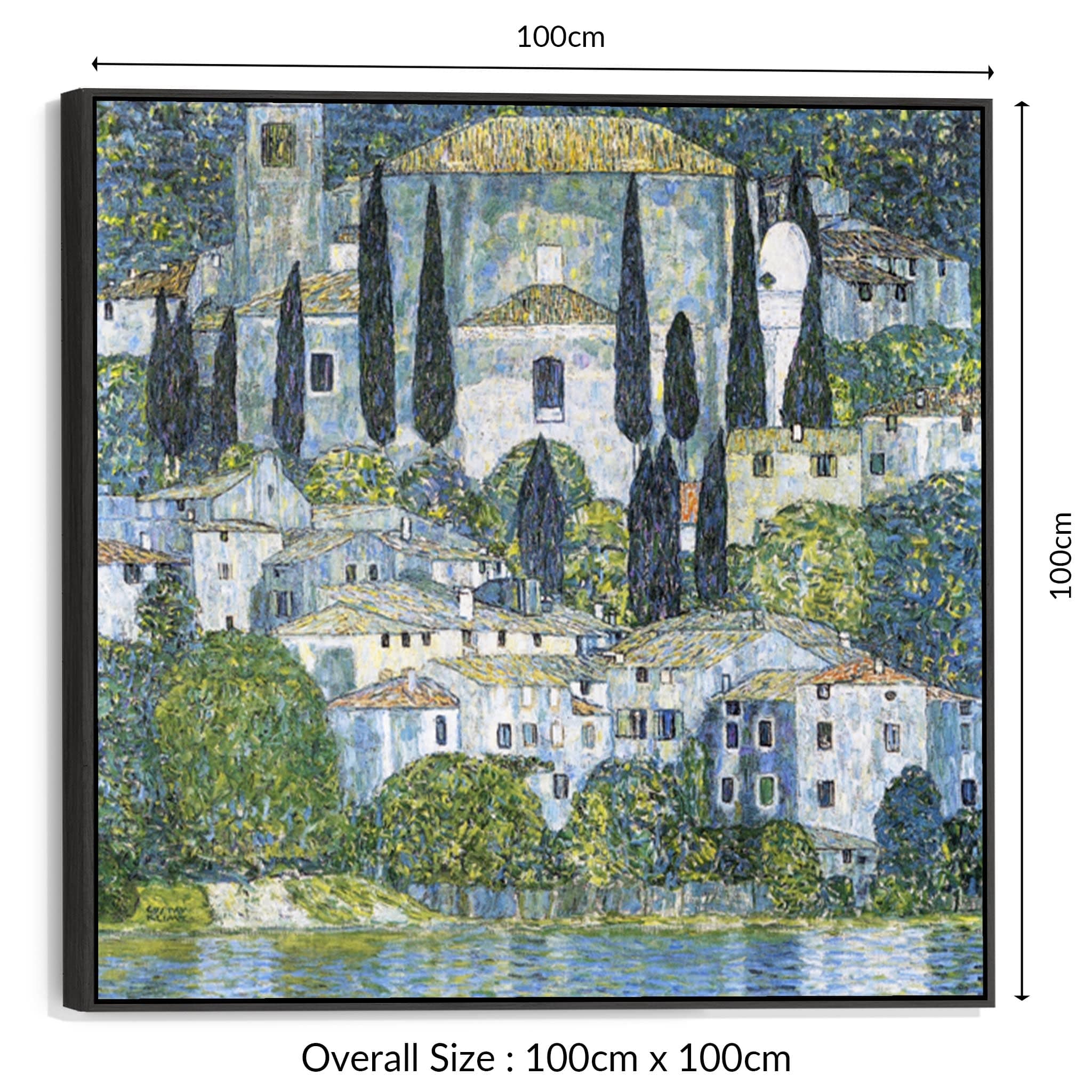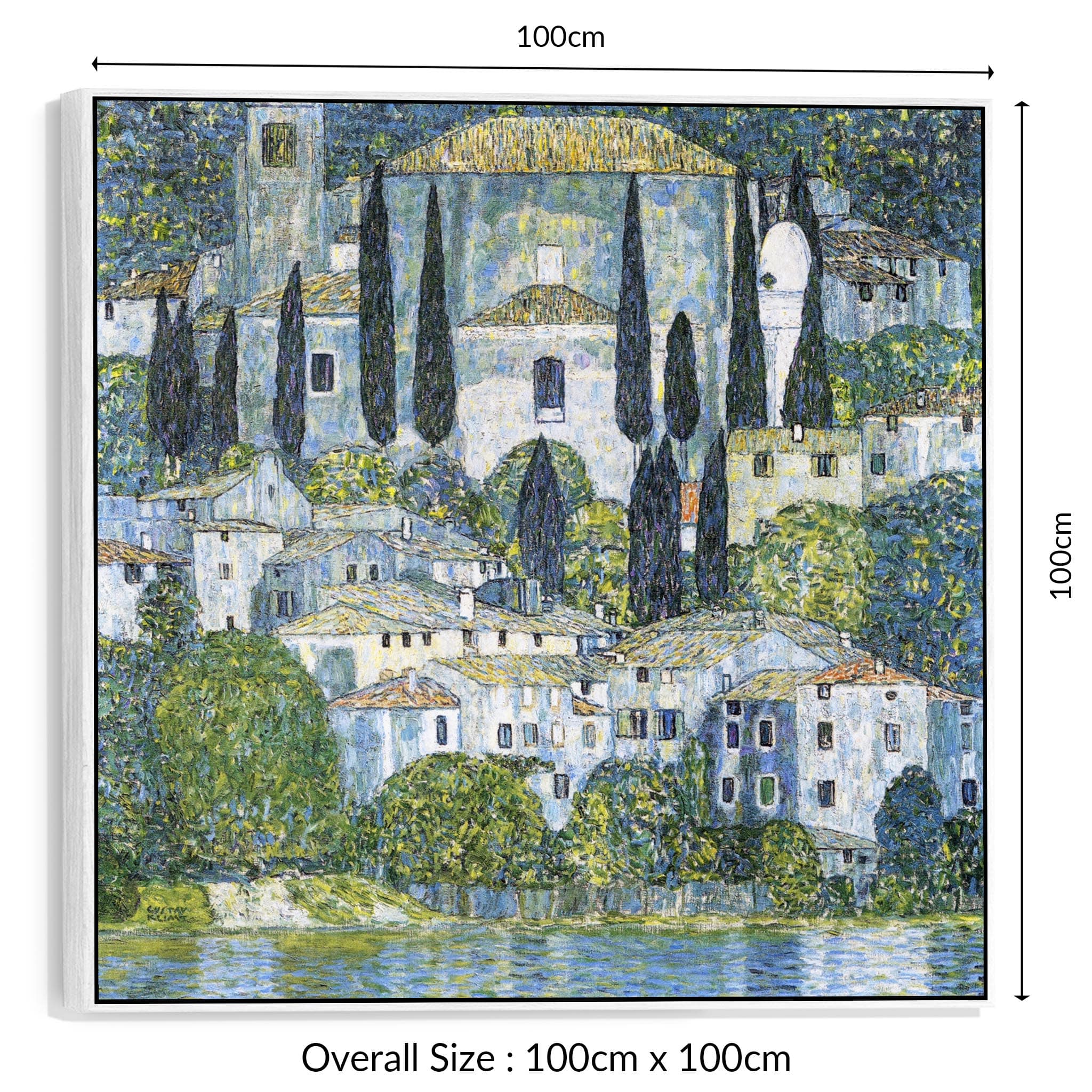 Large Blue Gustav Klimt Landscape Wall Art Framed Canvas Print of Kirche in Casseone Painting - 100cm x 100cm