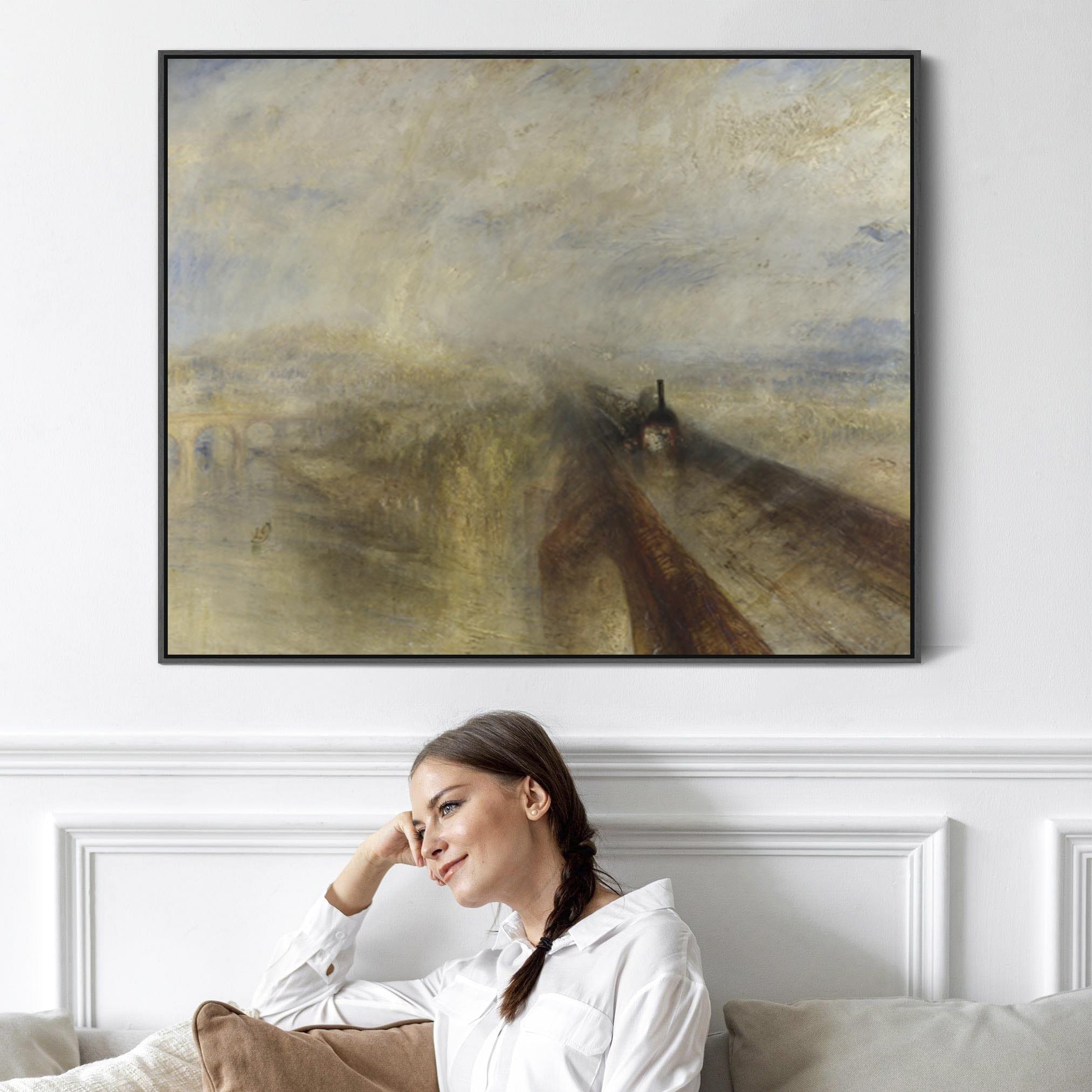 Large JMW William Turner Train Wall Art Framed Canvas of Rain Steam Speed Painting