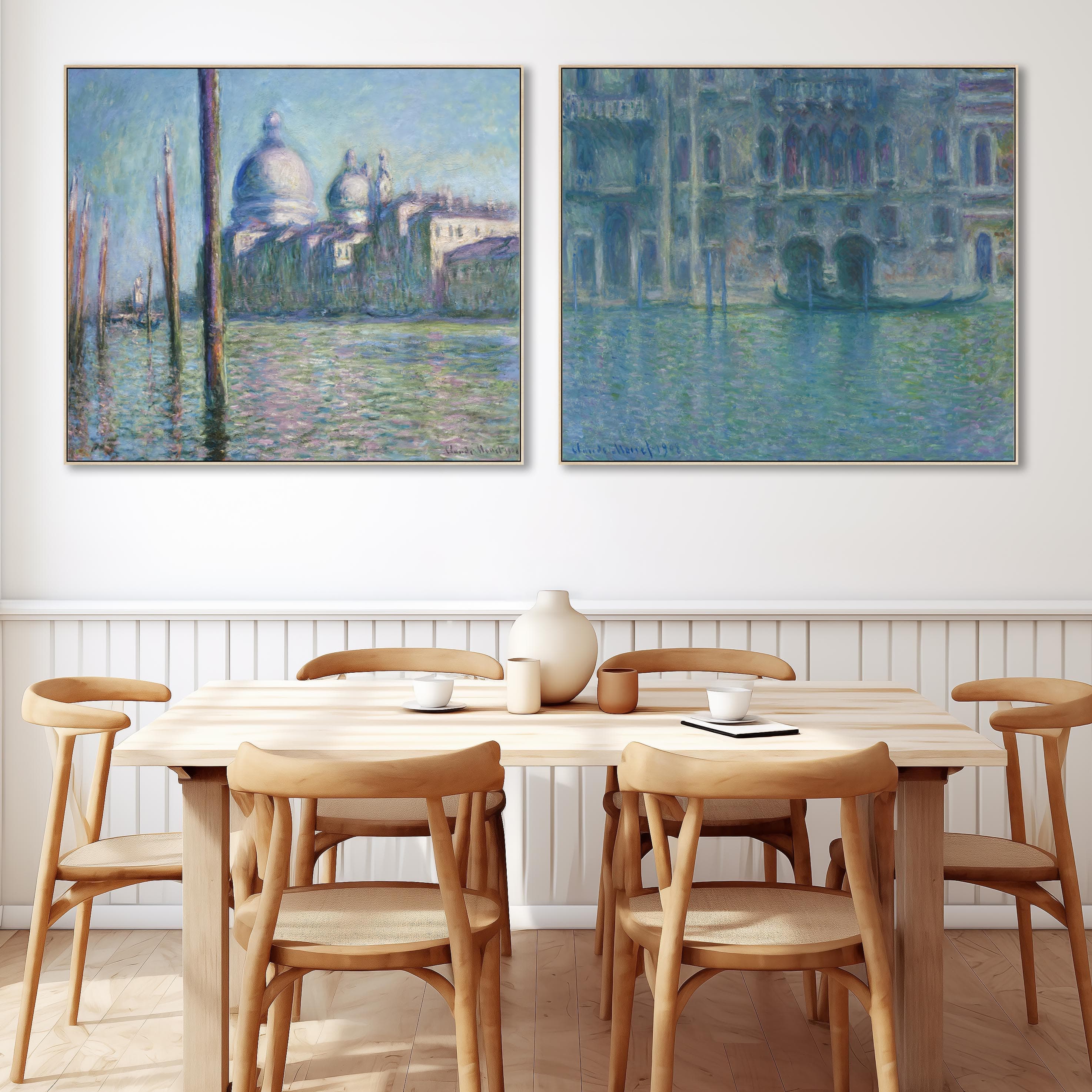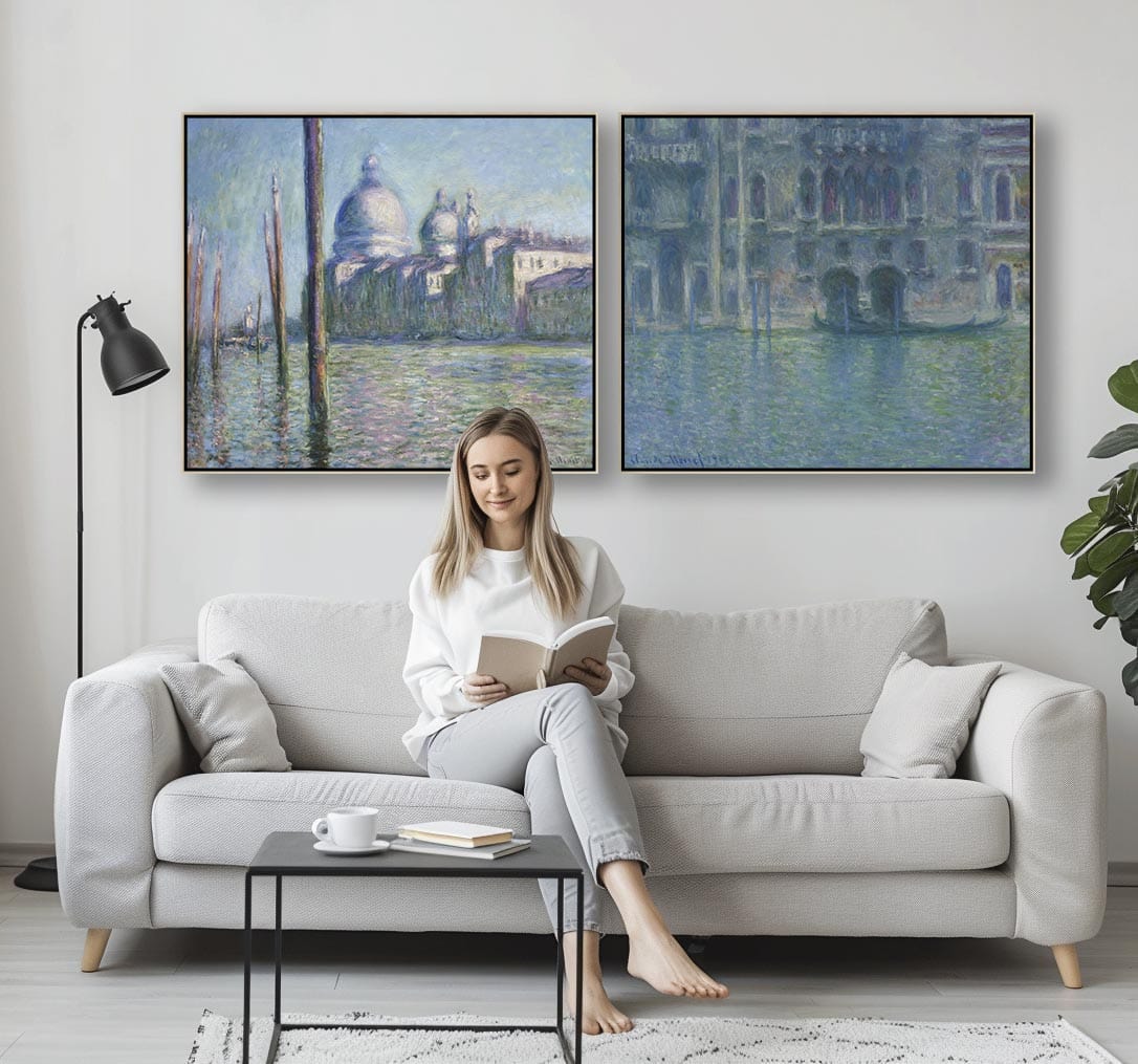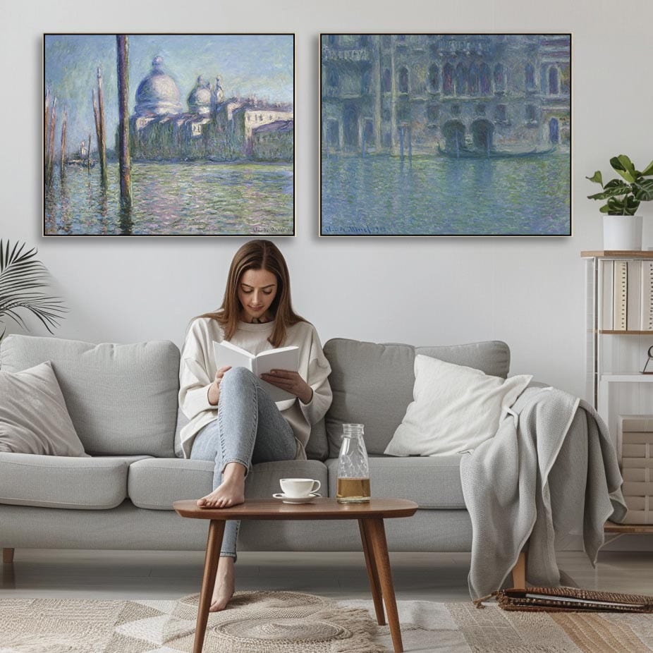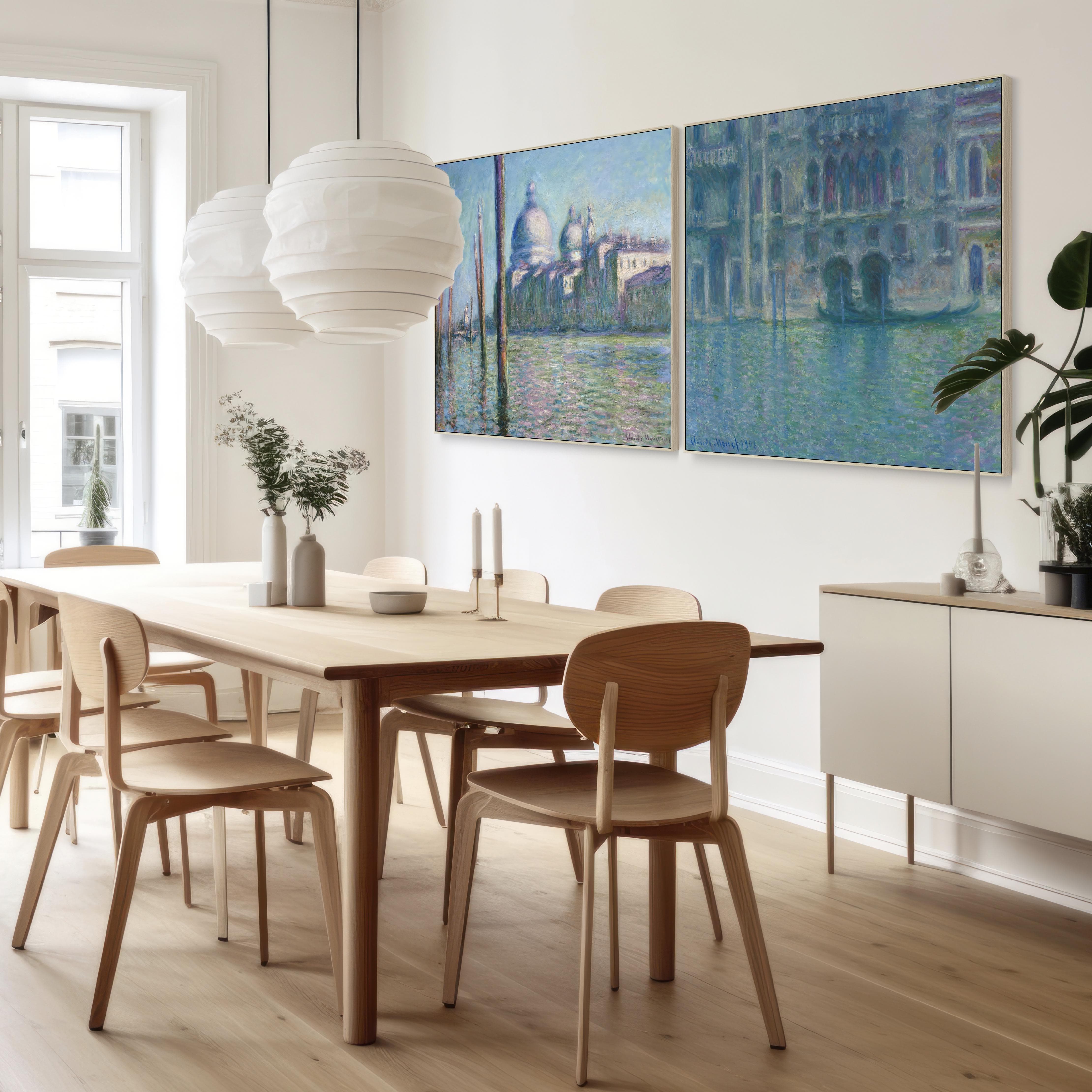 Extra Large Claude Monet Venice Pair of Blue Wall Art Framed Canvas Impressionist Pictures - Set of 2