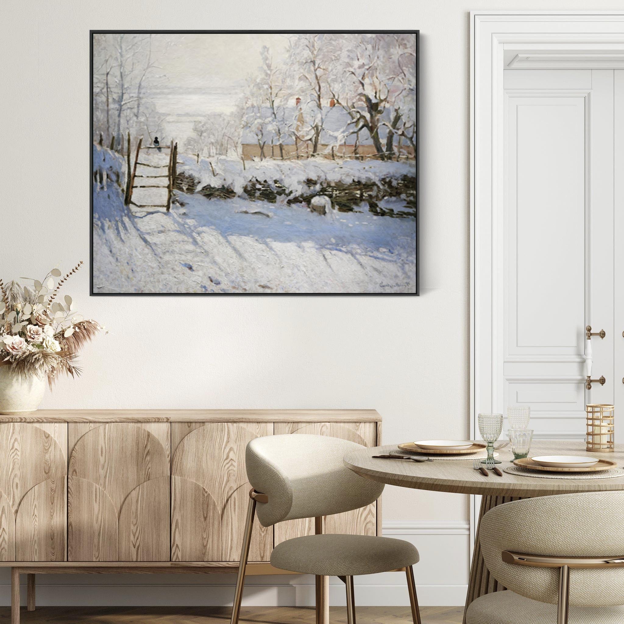 Large Claude Monet Framed Canvas Print of The Magpie Winter Landscape Painting
