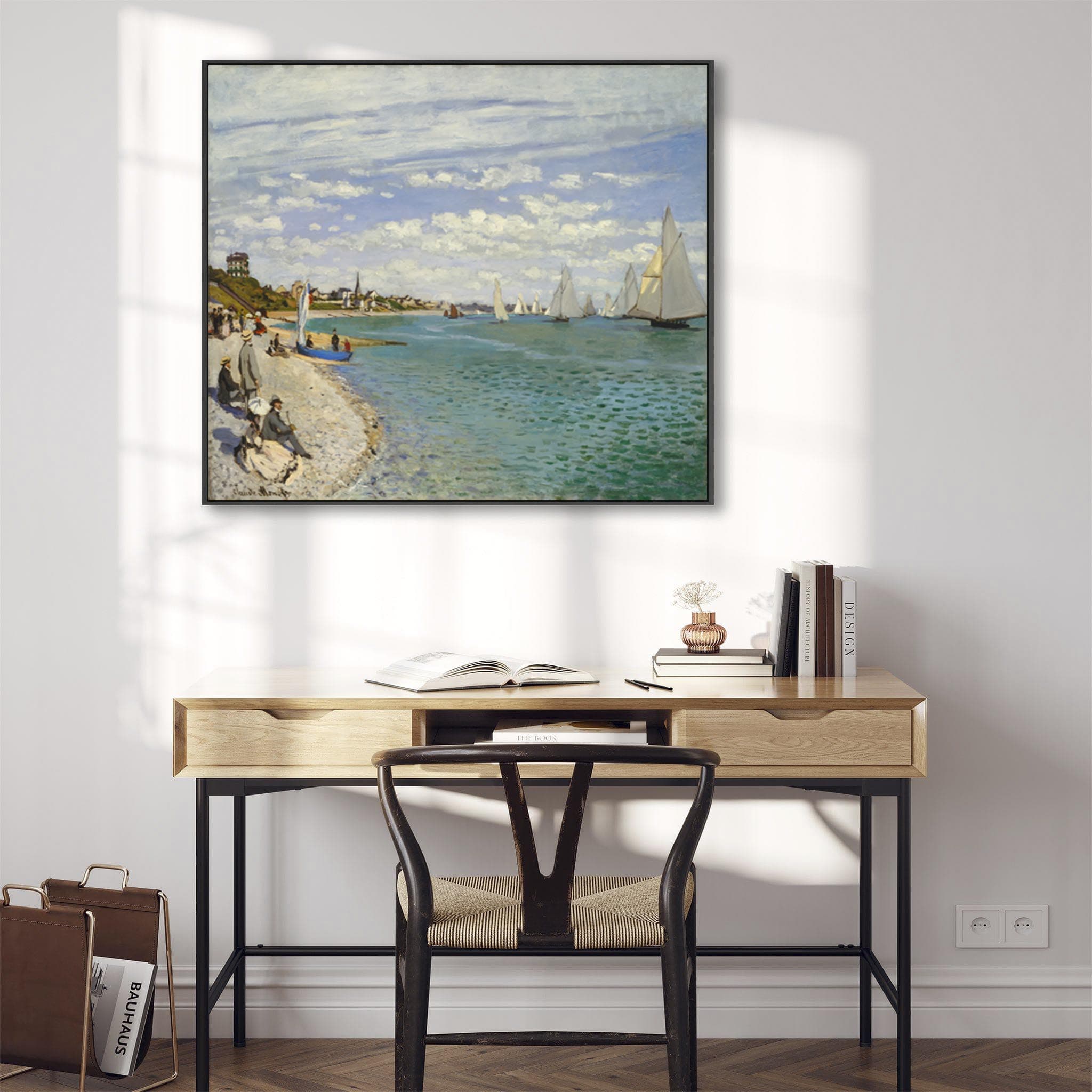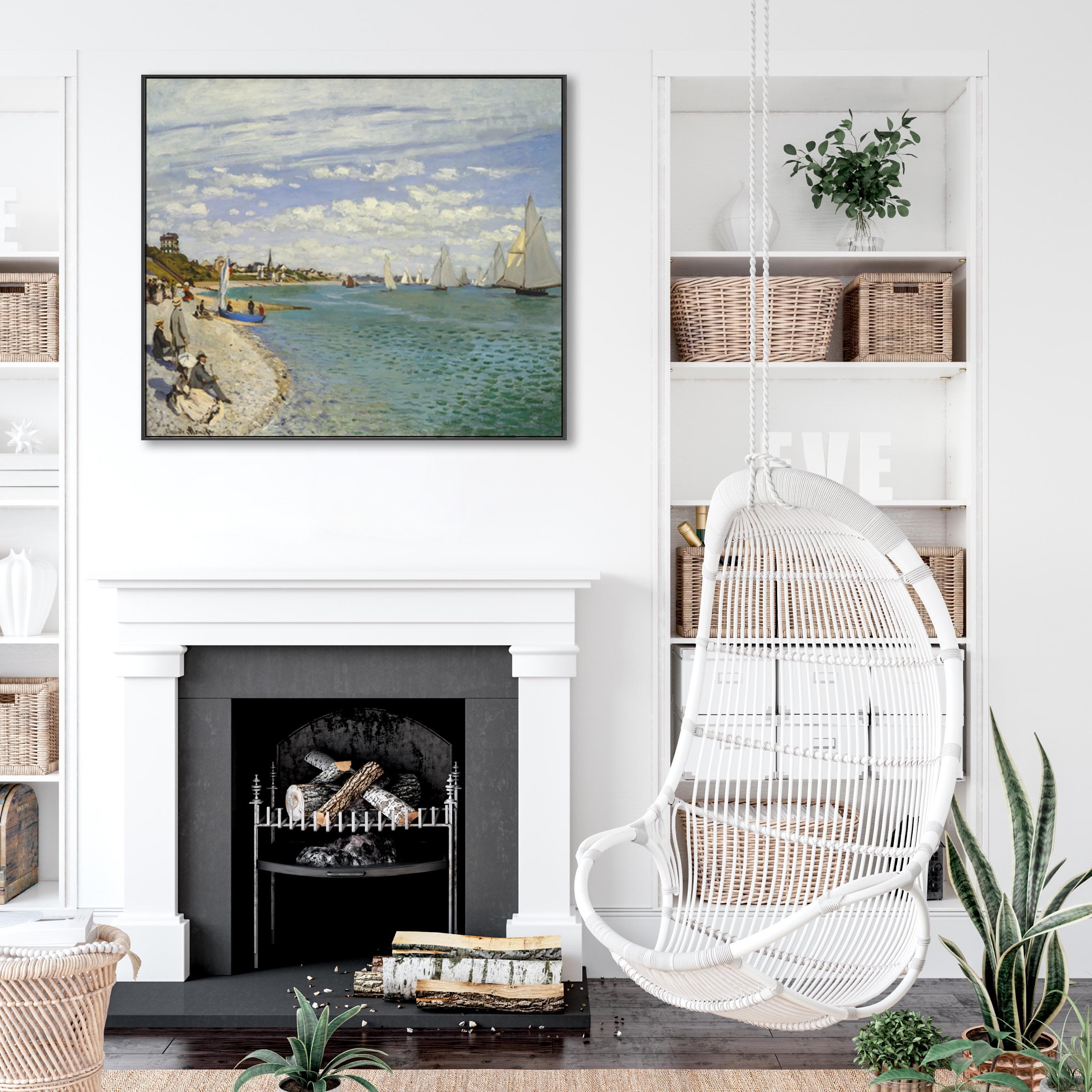 Large Claude Monet Framed Landscape Wall Art Print of Boats Regatta at Sainte-Adresse Painting