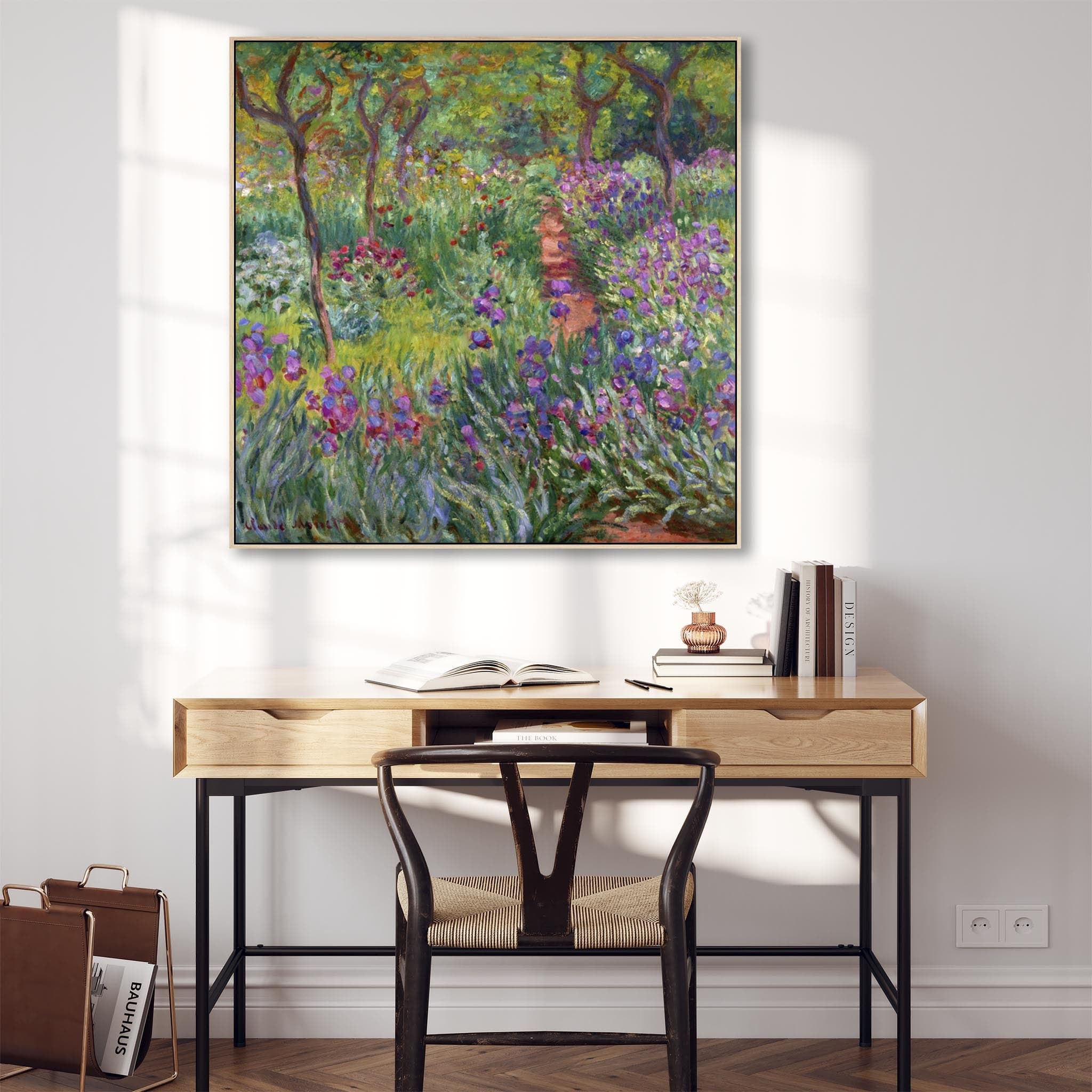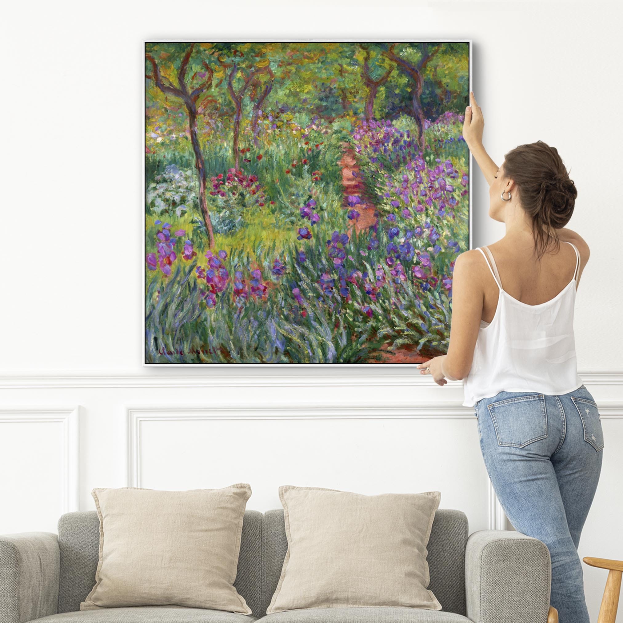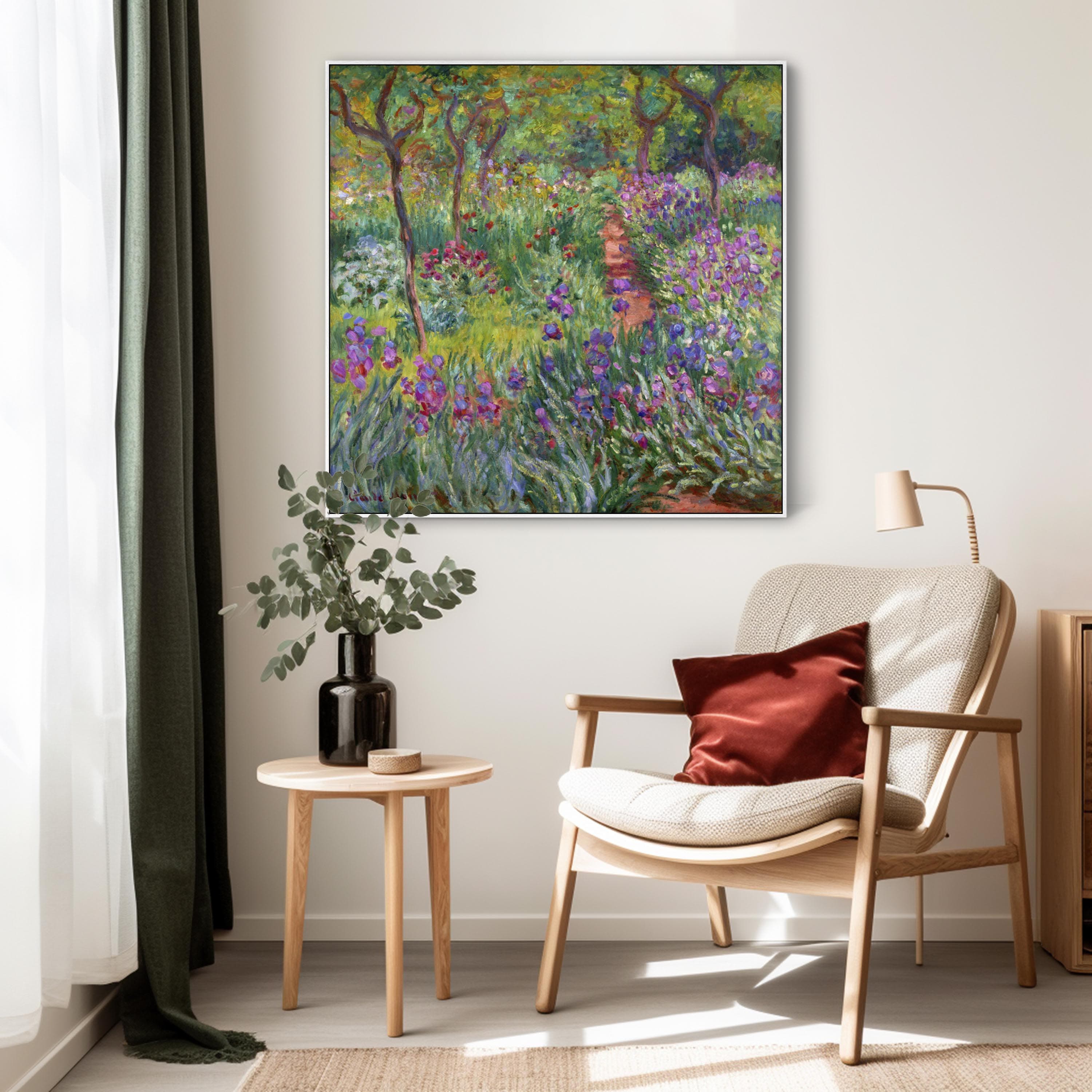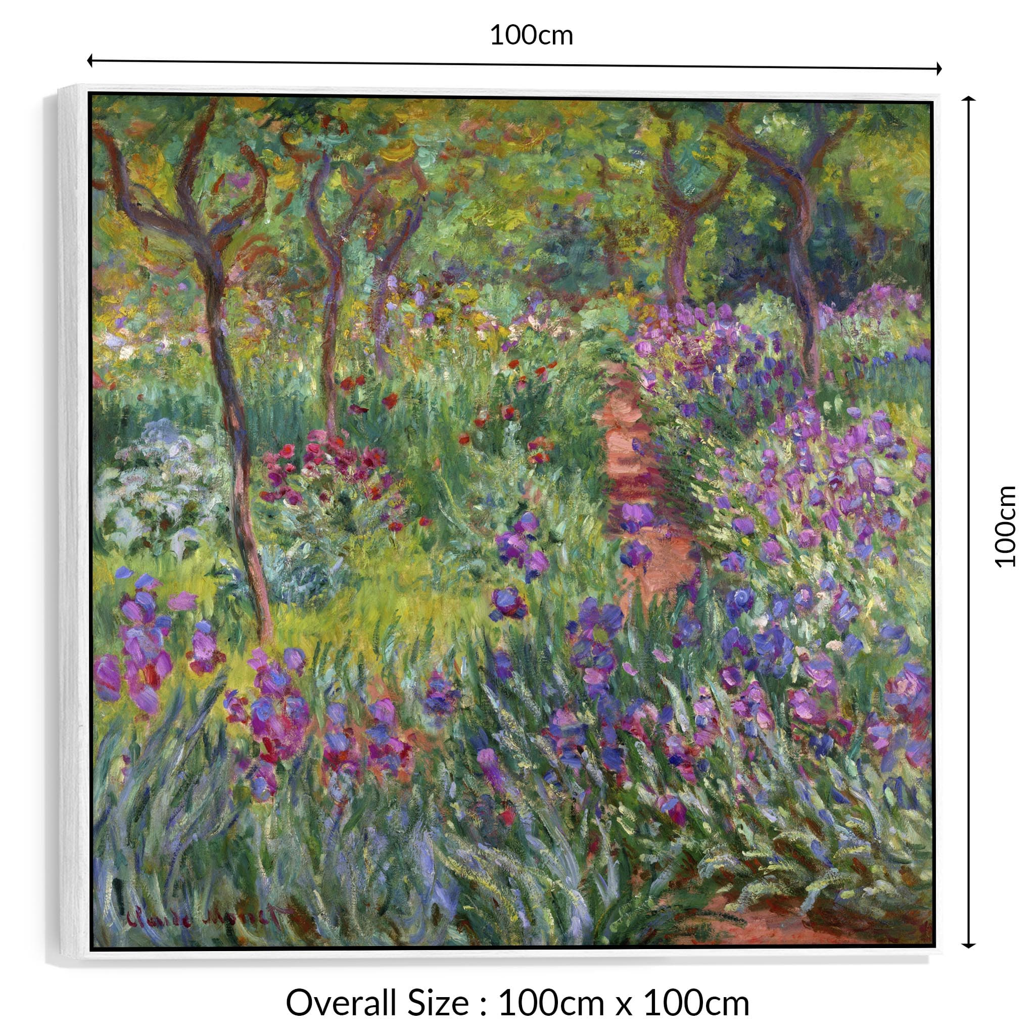 Large Colourful Claude Monet Wall Art Framed Canvas Print of Iris Garden at Giverny Painting - 100cm x 100cm