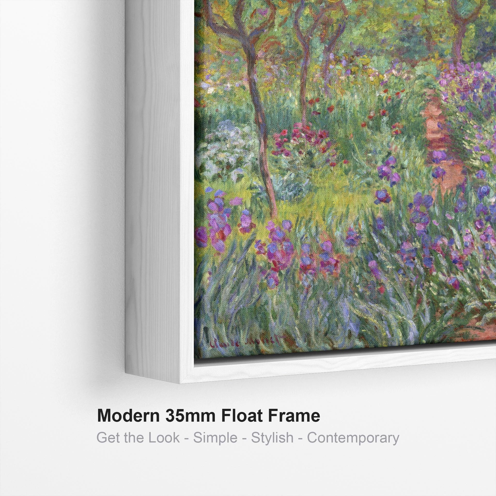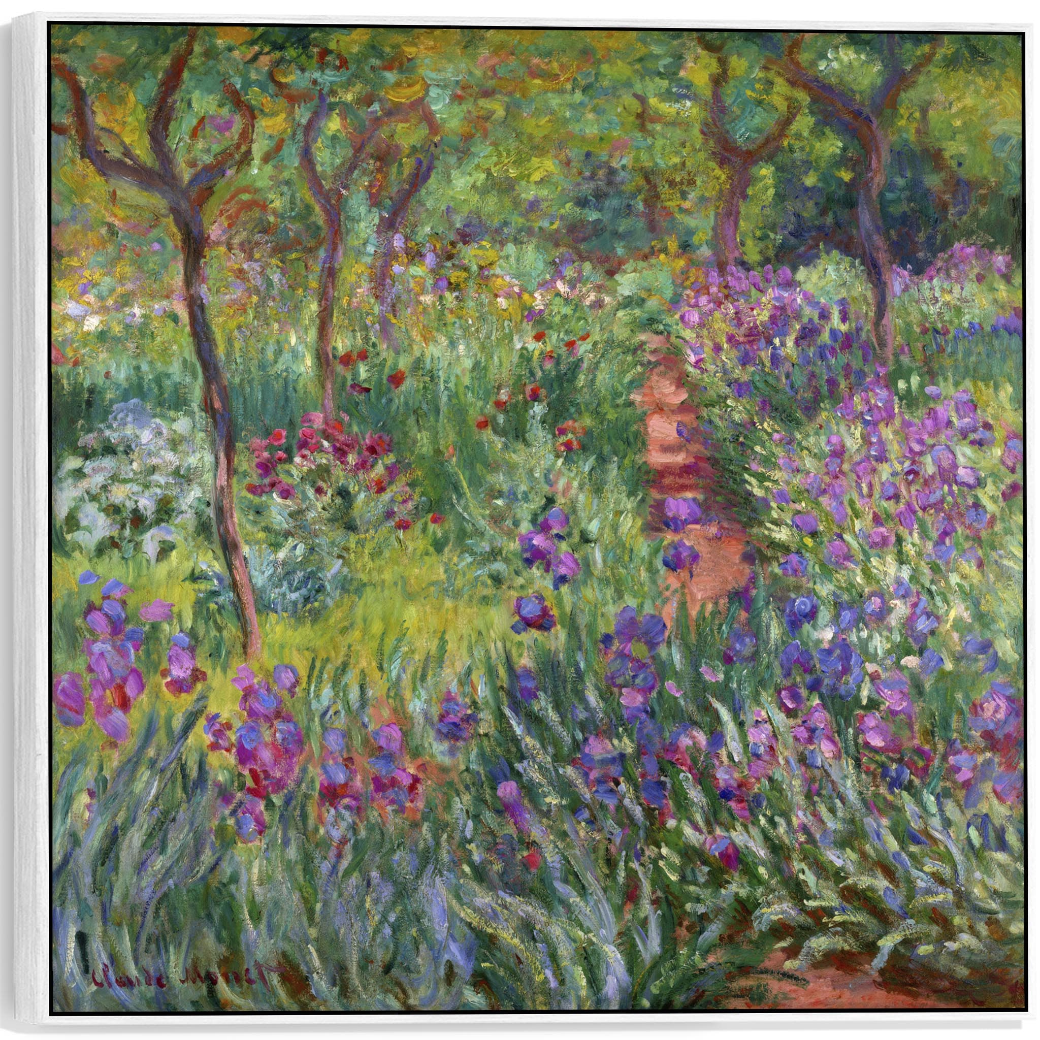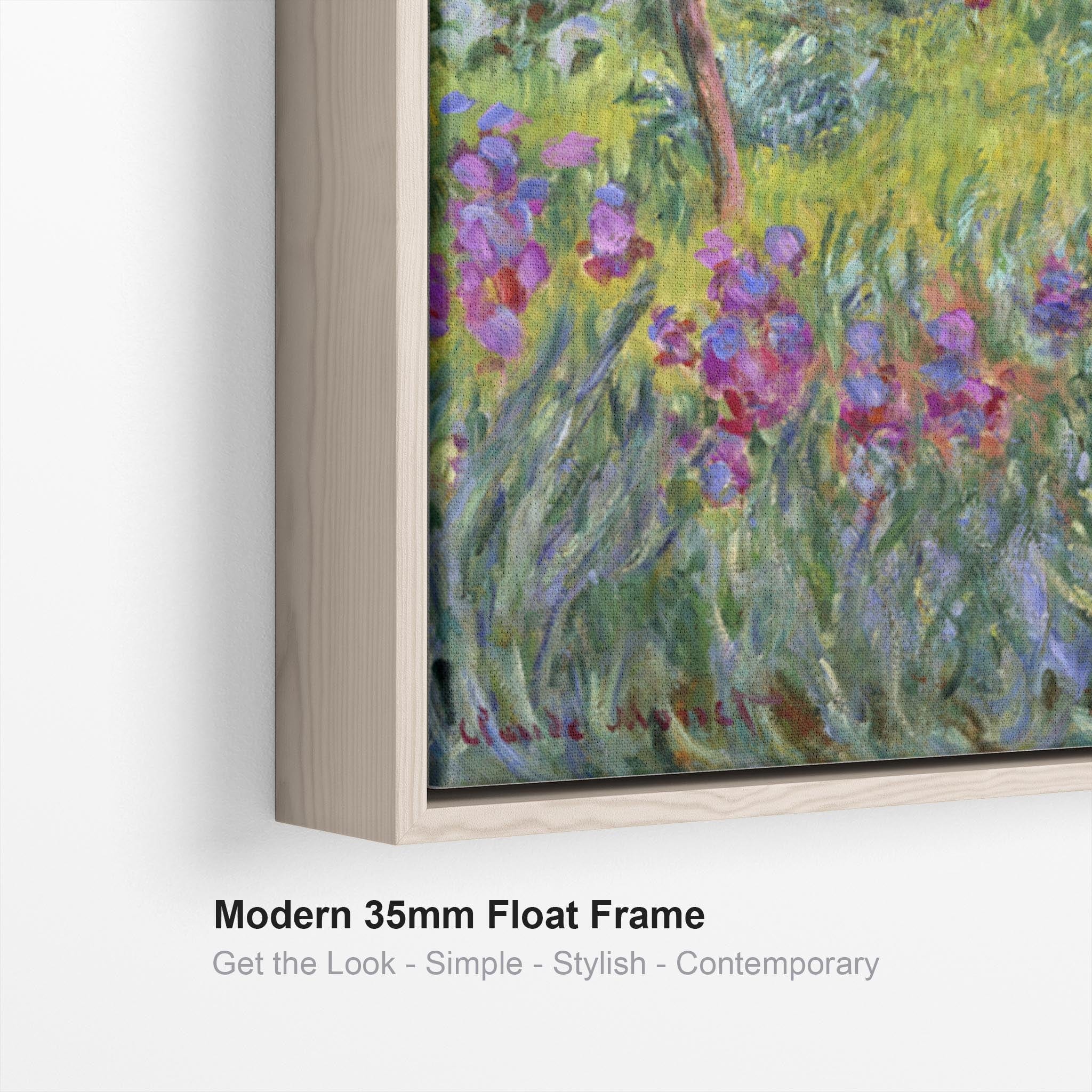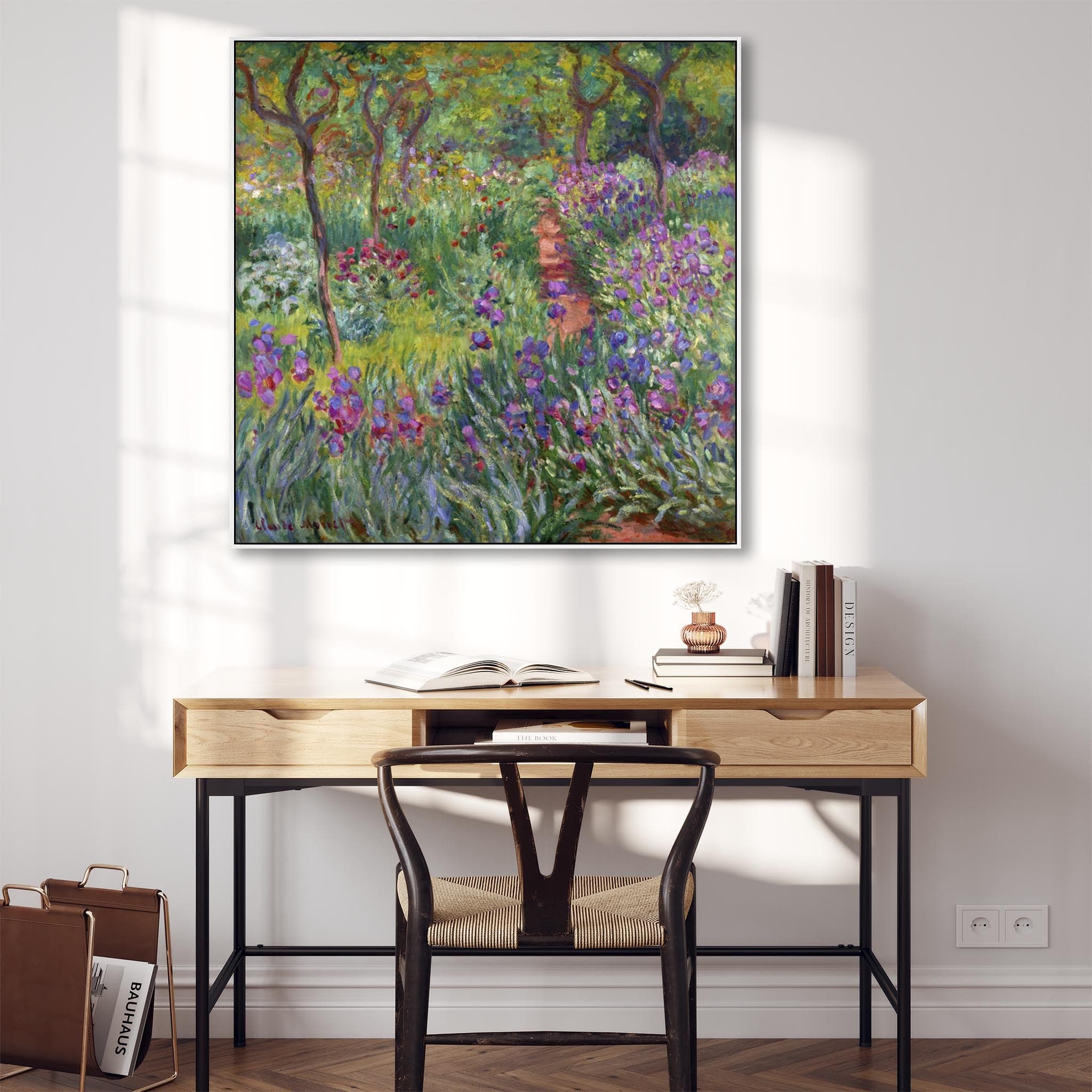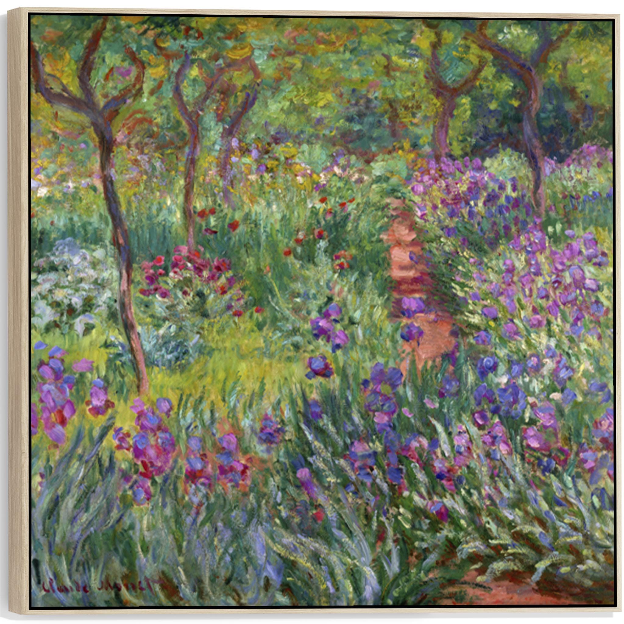 Large Colourful Claude Monet Wall Art Framed Canvas Print of Iris Garden at Giverny Painting - 100cm x 100cm