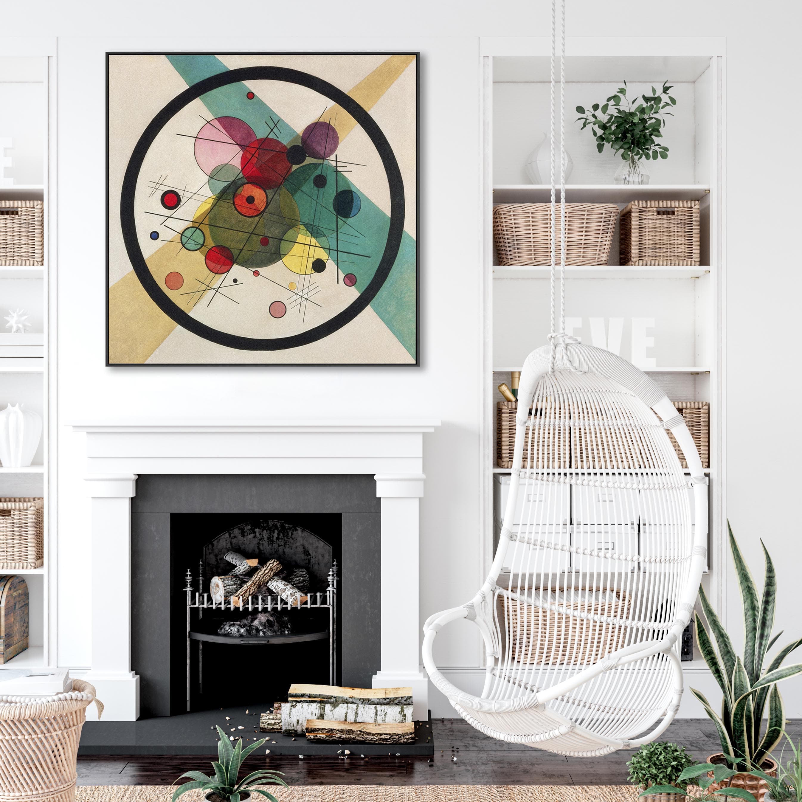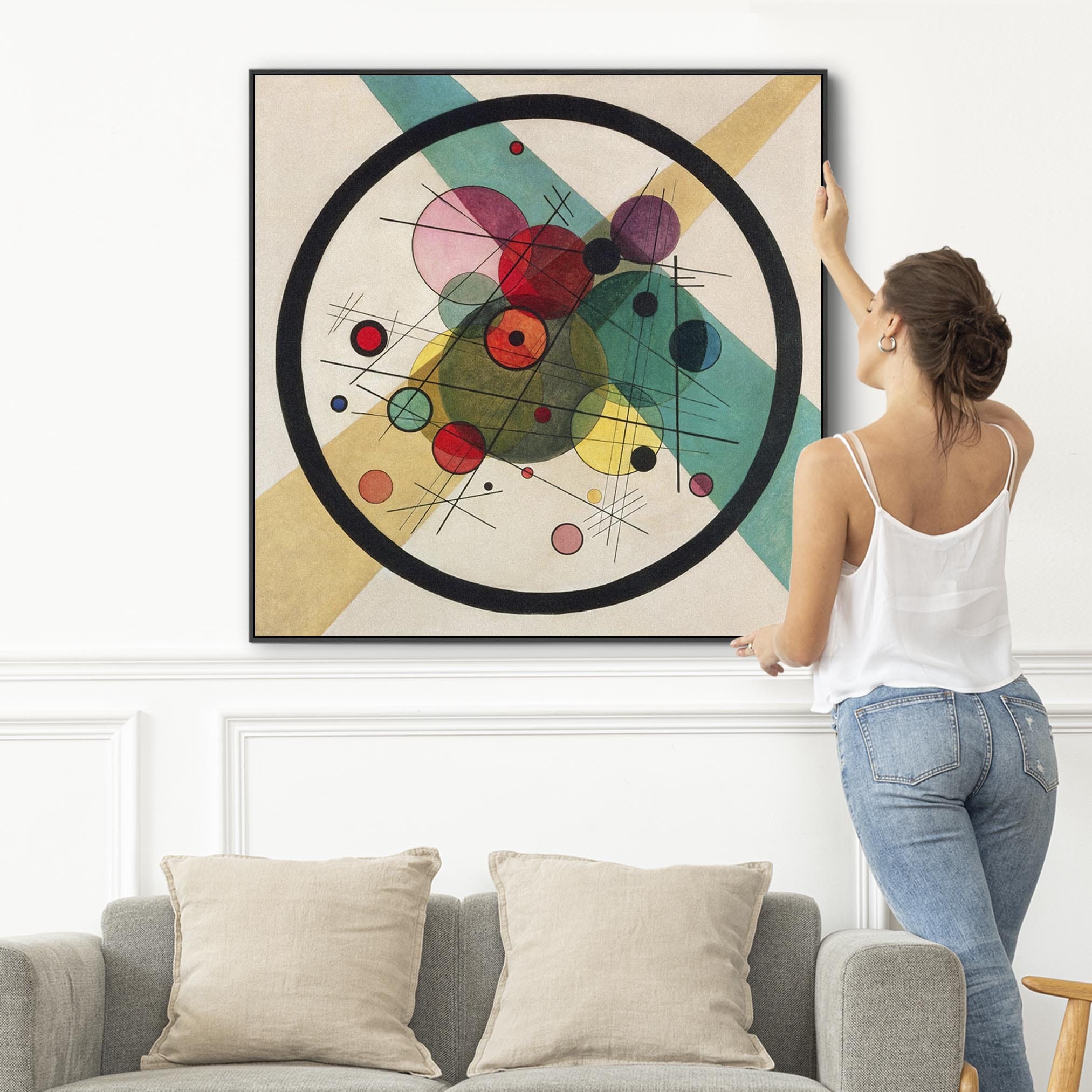 Large Abstract Kandinsky Wall Art Framed Canvas Print of Circles within a Circle Abstract Painting - 100cm x 100cm