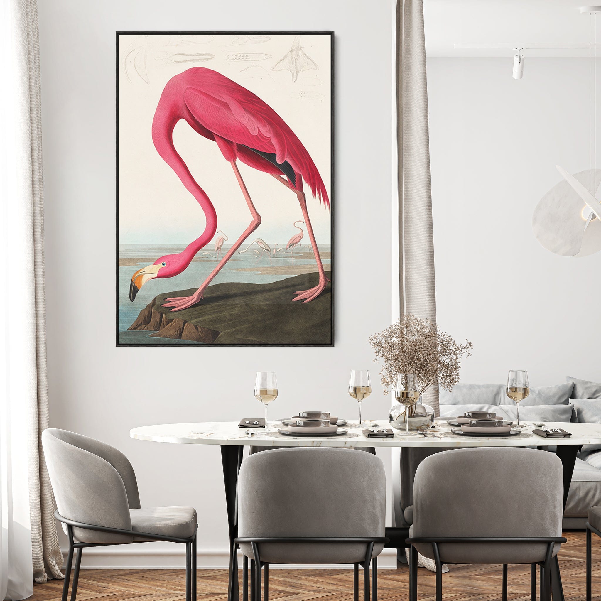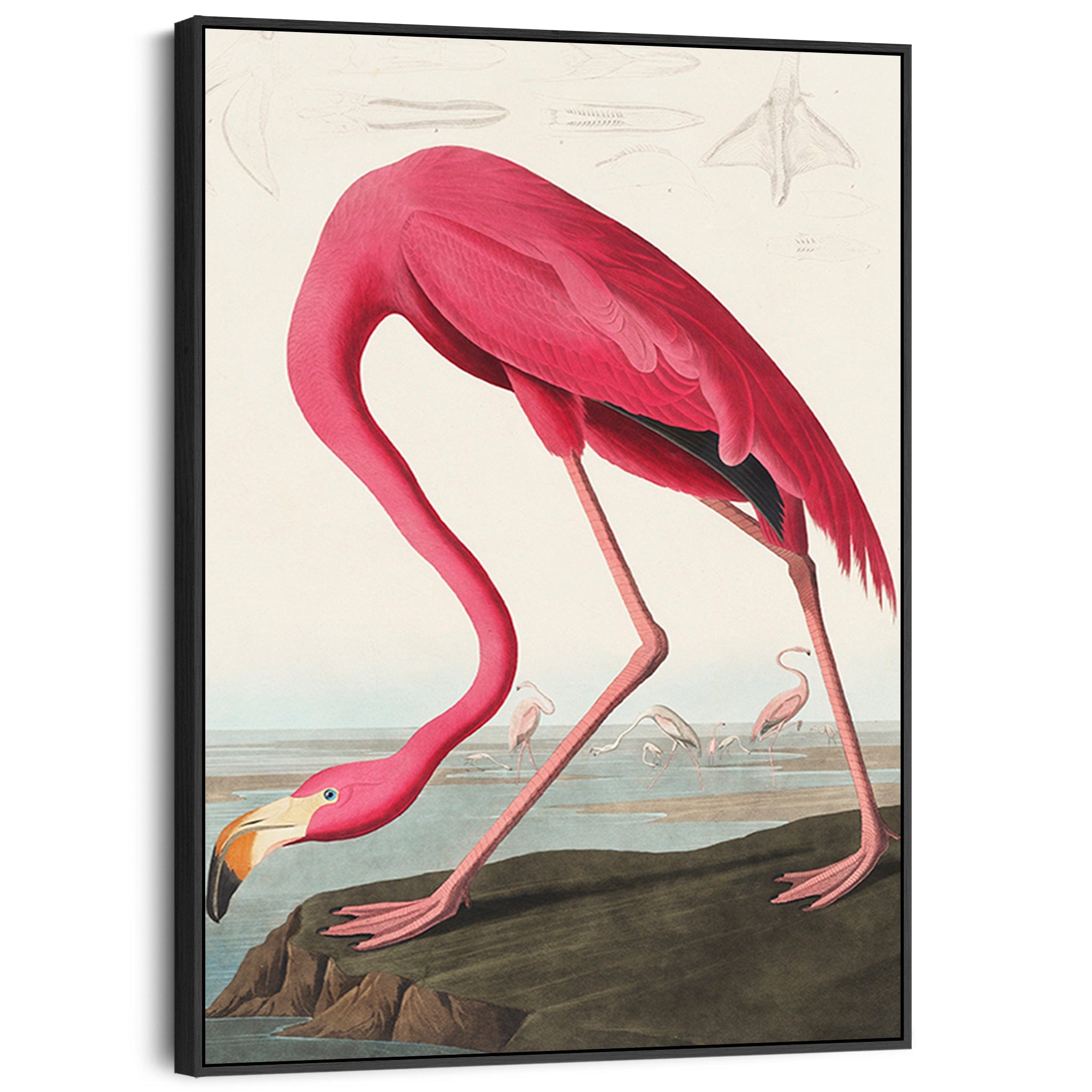 Pink Flamingo Wall Art Framed Canvas Print of Famous John Audubon Painting
