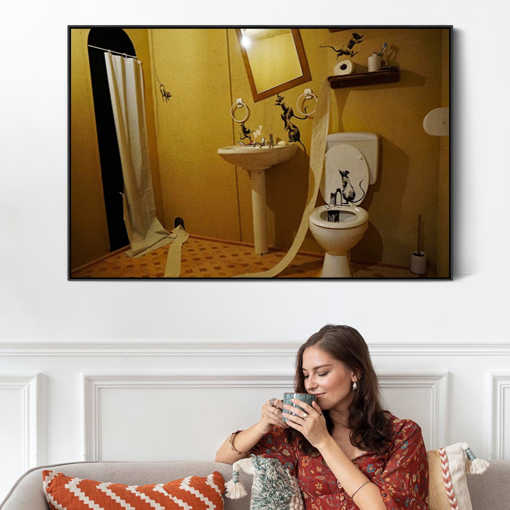 Large Banksy Framed Canvas Art Print - Installation Badezimmer