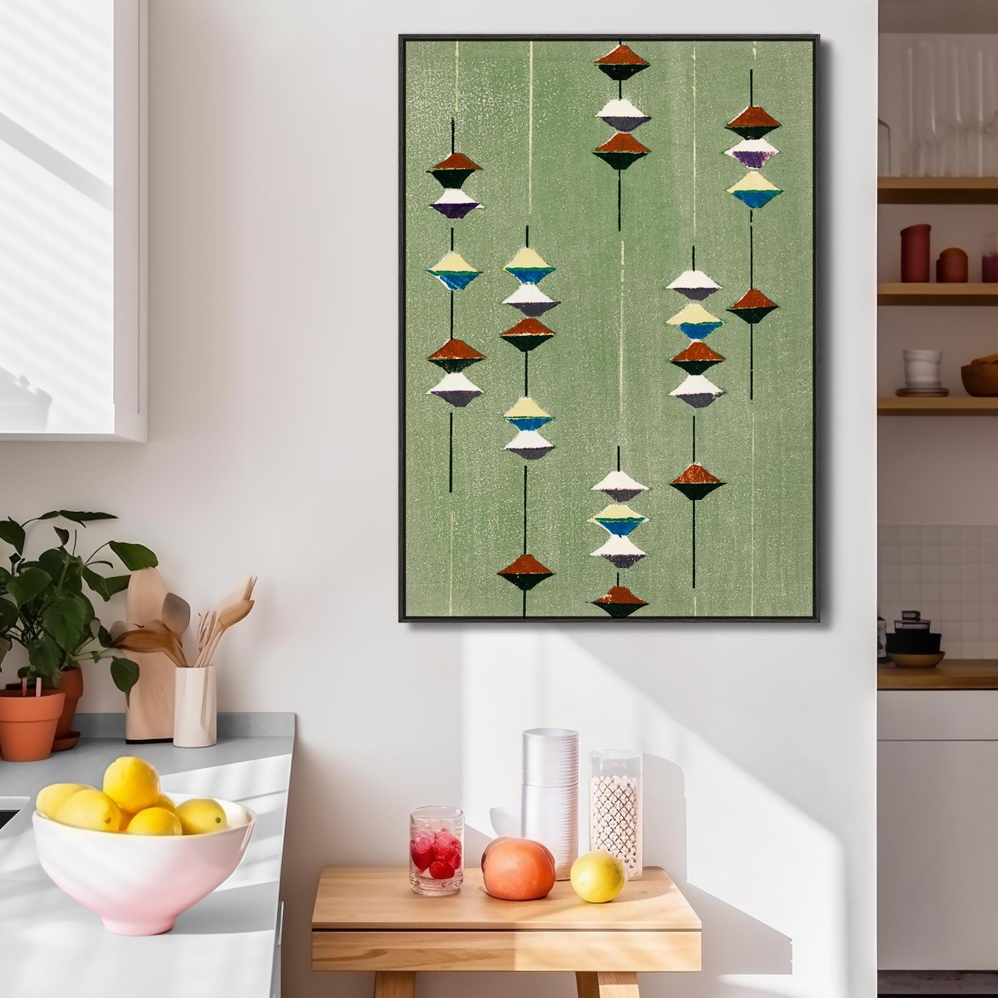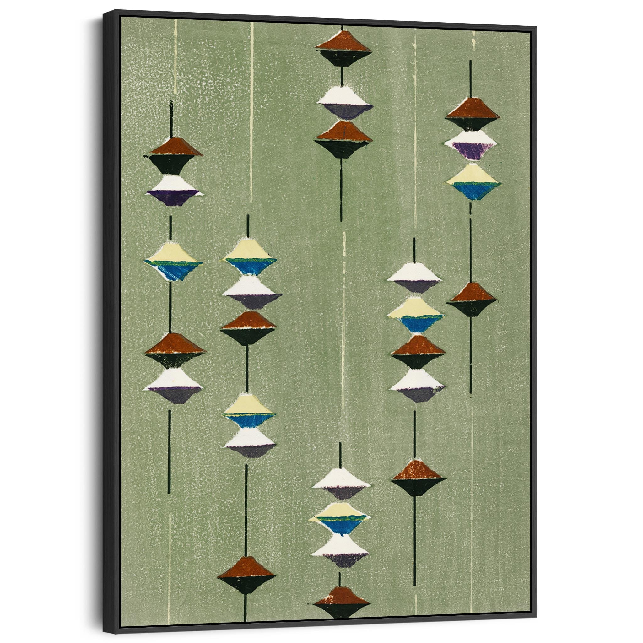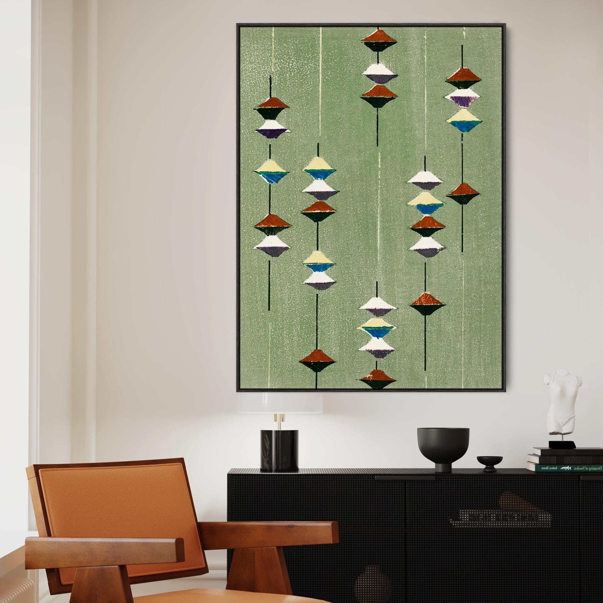Large Green Abstract Japanese Wall Art Framed Canvas Print of Furuya Korin Painting