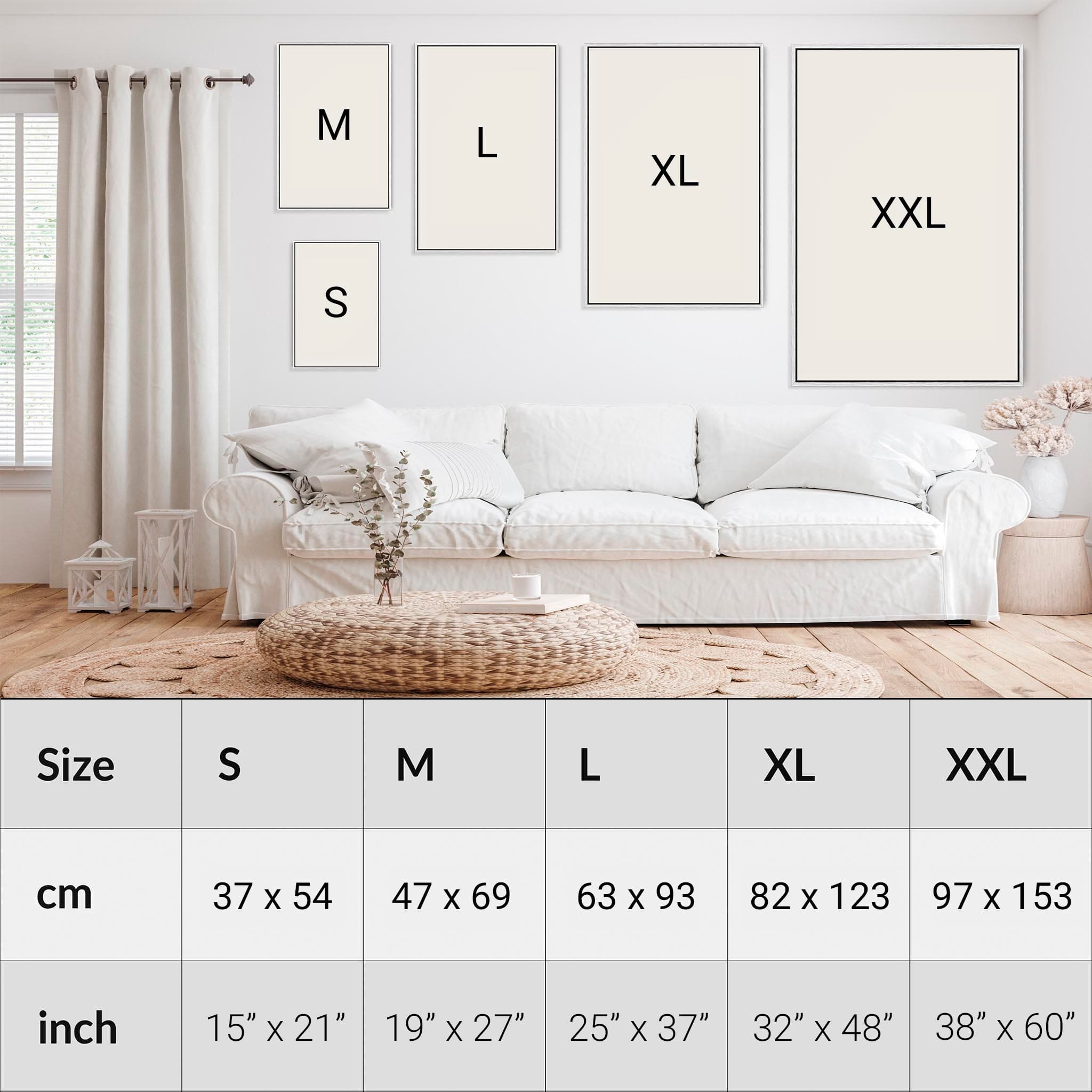 - XXL: 97cm x 153cm