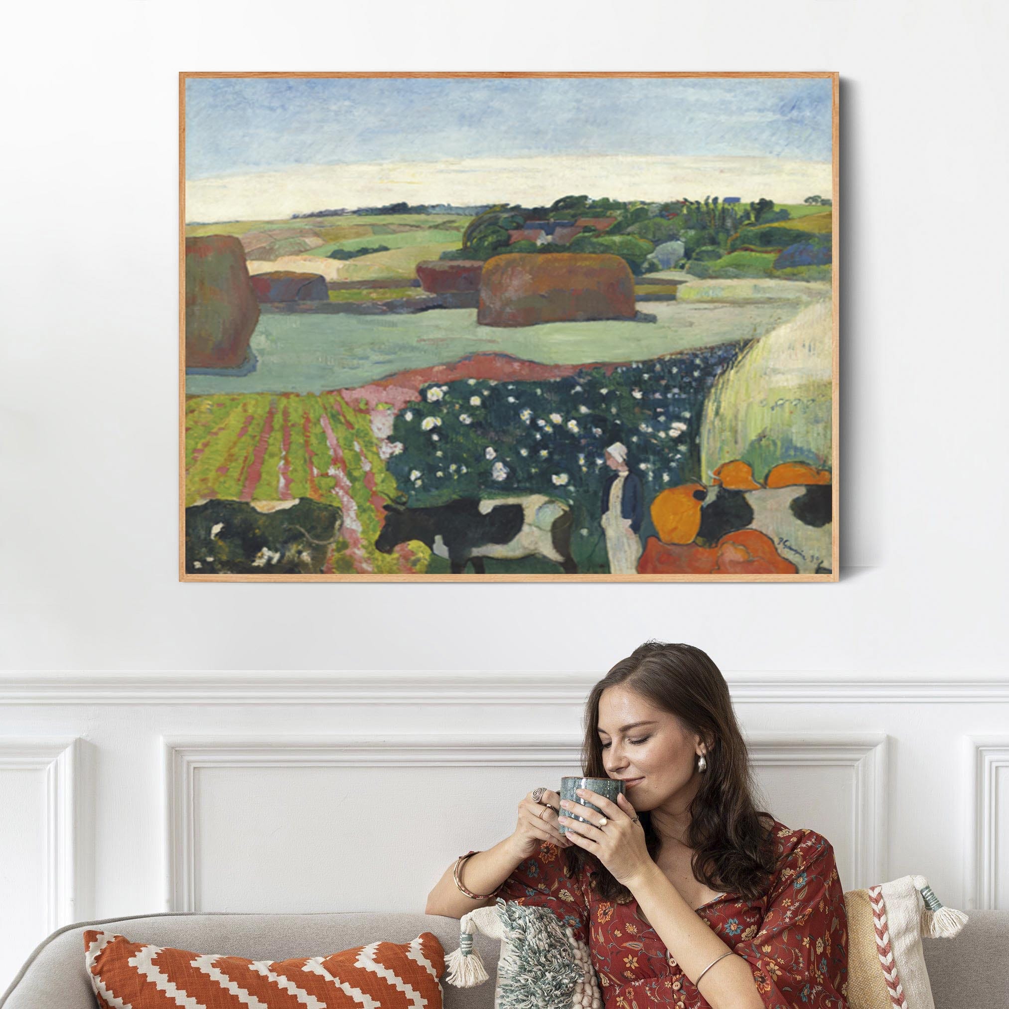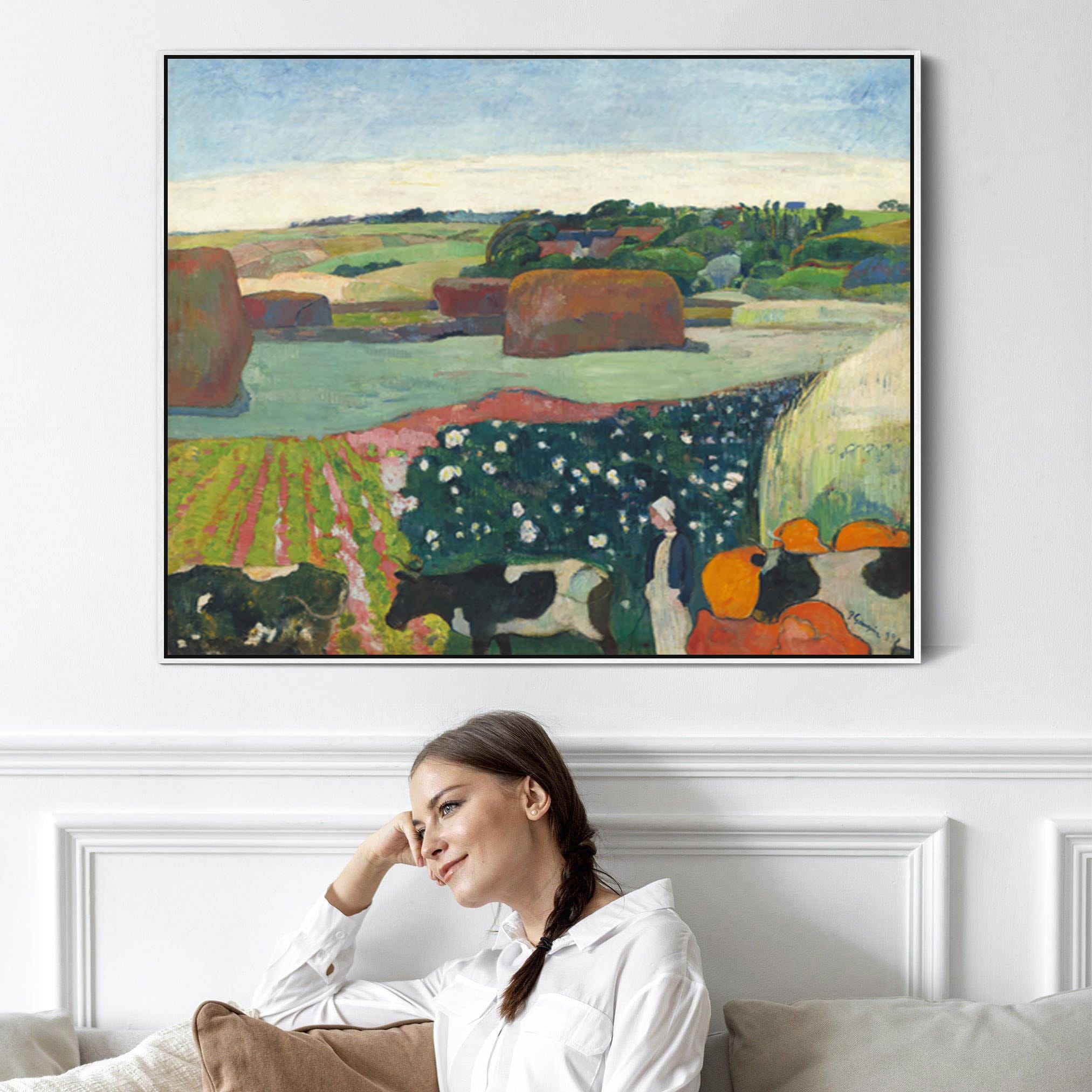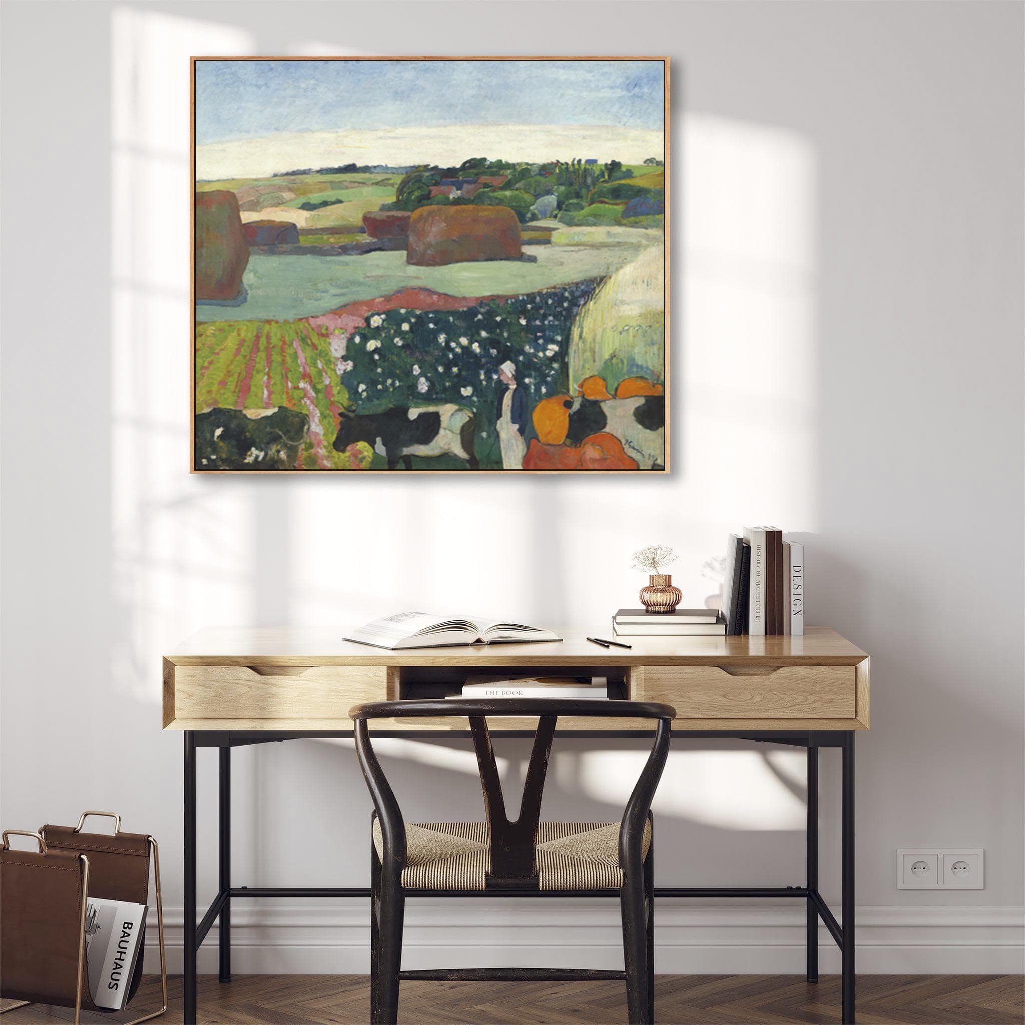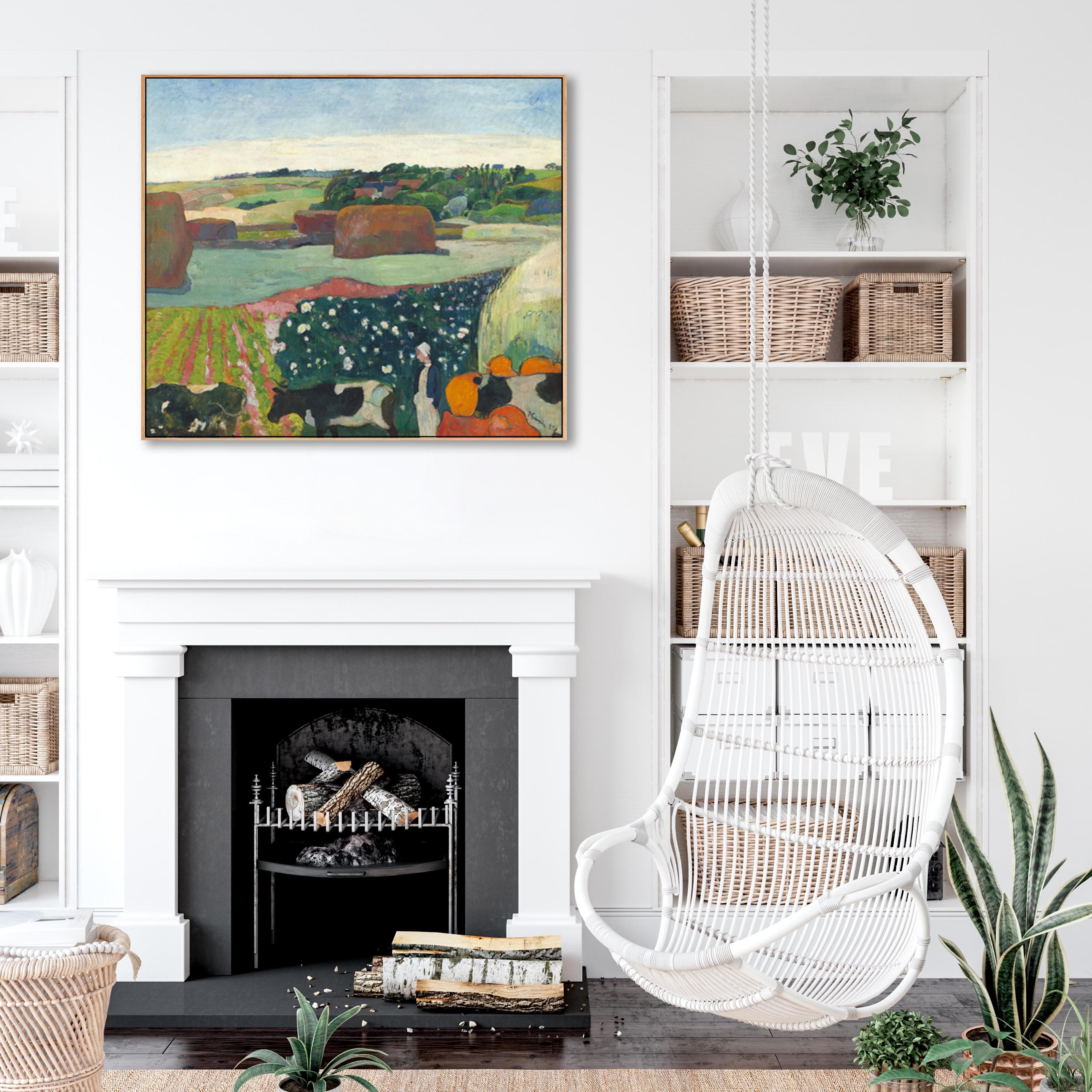 Large Paul Gauguin Framed Canvas Print of Landscape of Haystacks in Brittany Painting