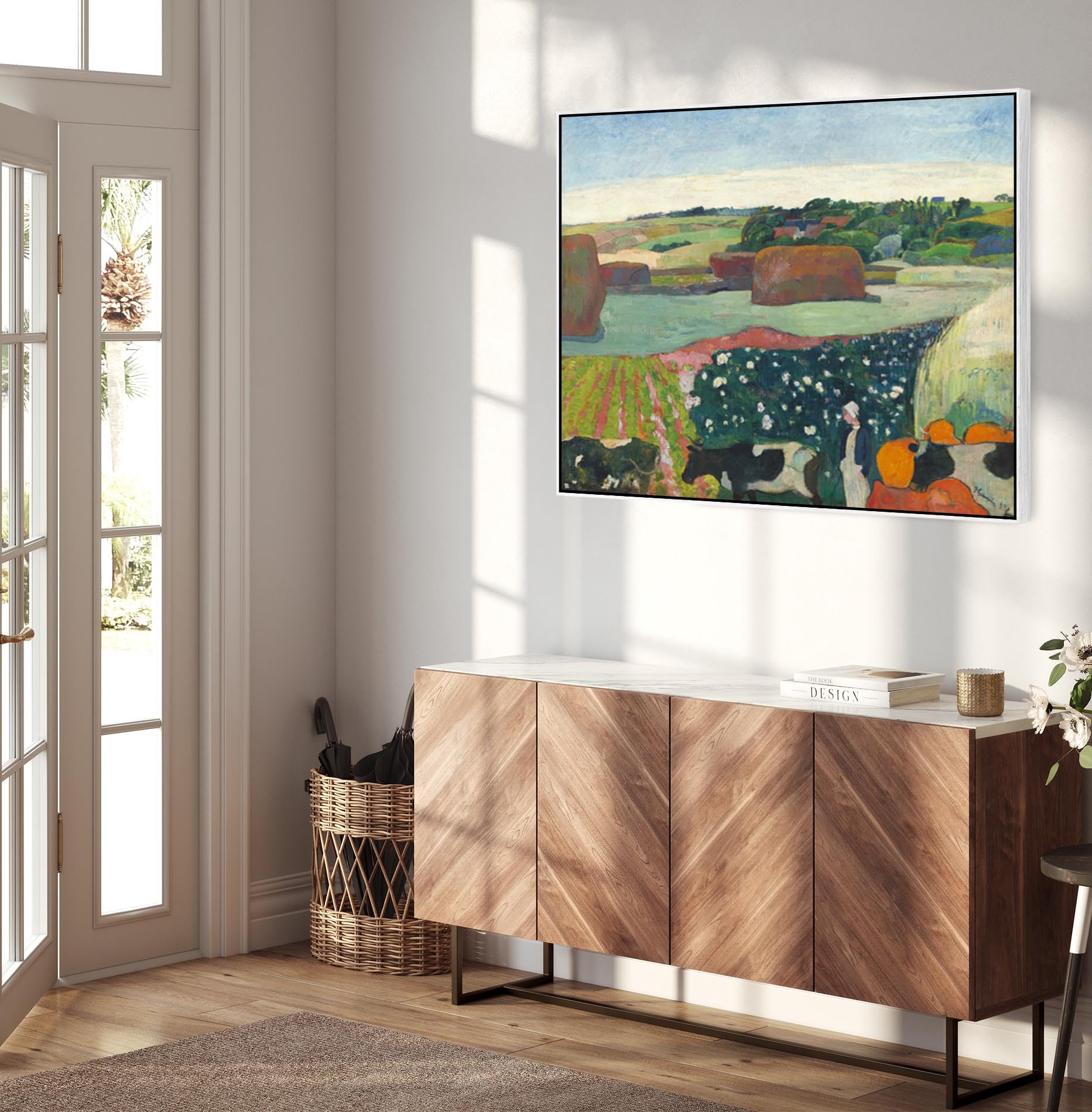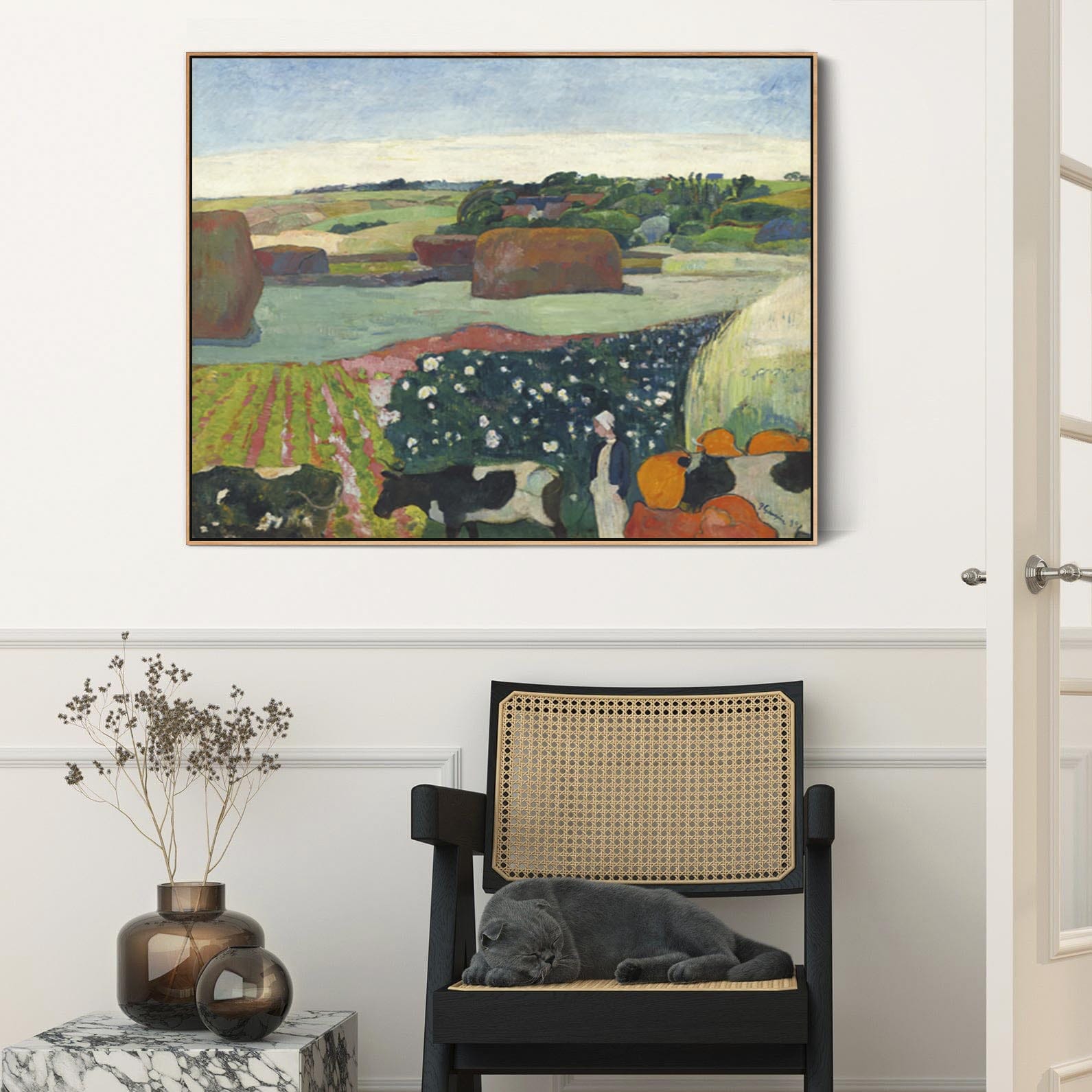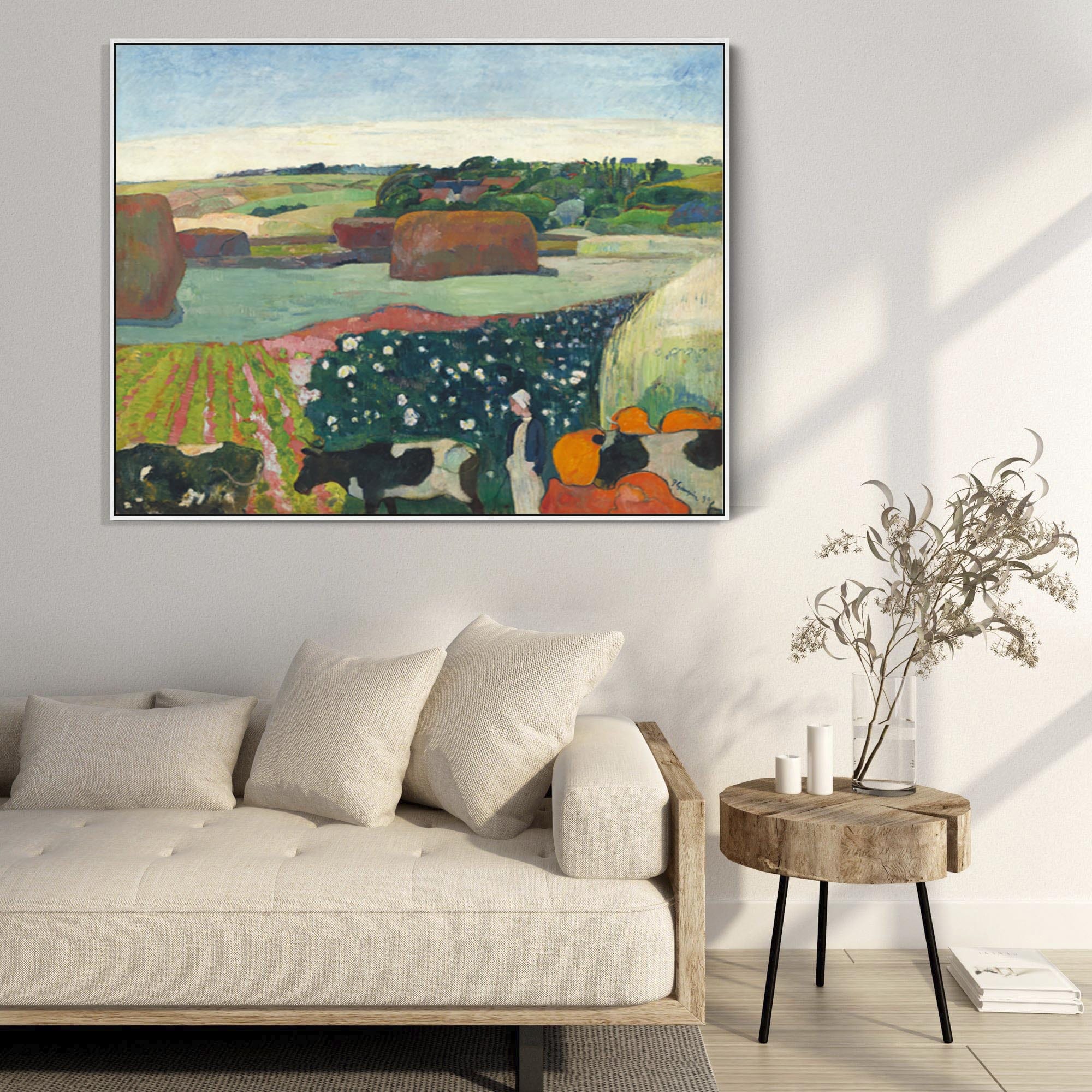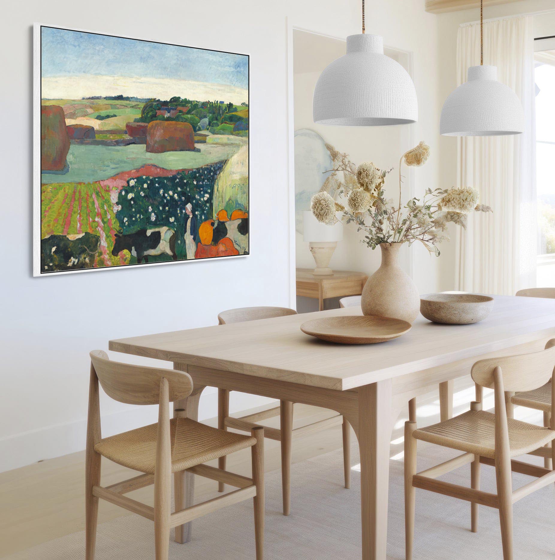 Large Paul Gauguin Framed Canvas Print of Landscape of Haystacks in Brittany Painting