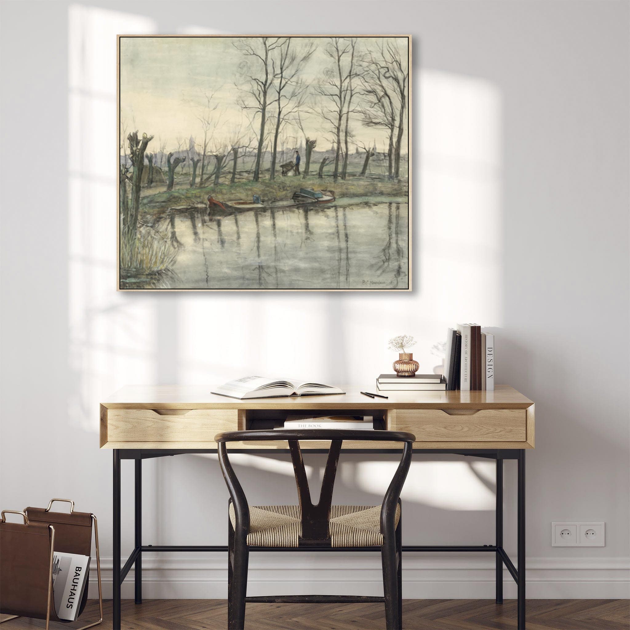 Large Piet Mondrian Framed Canvas Wall Art Print of Amsterdam Skyline