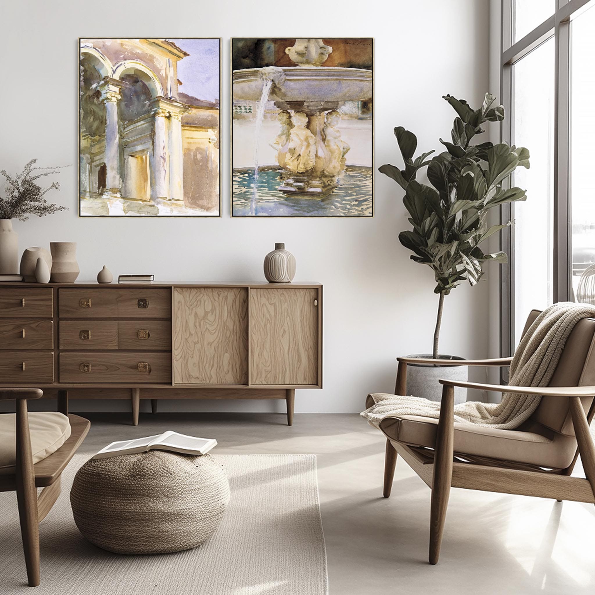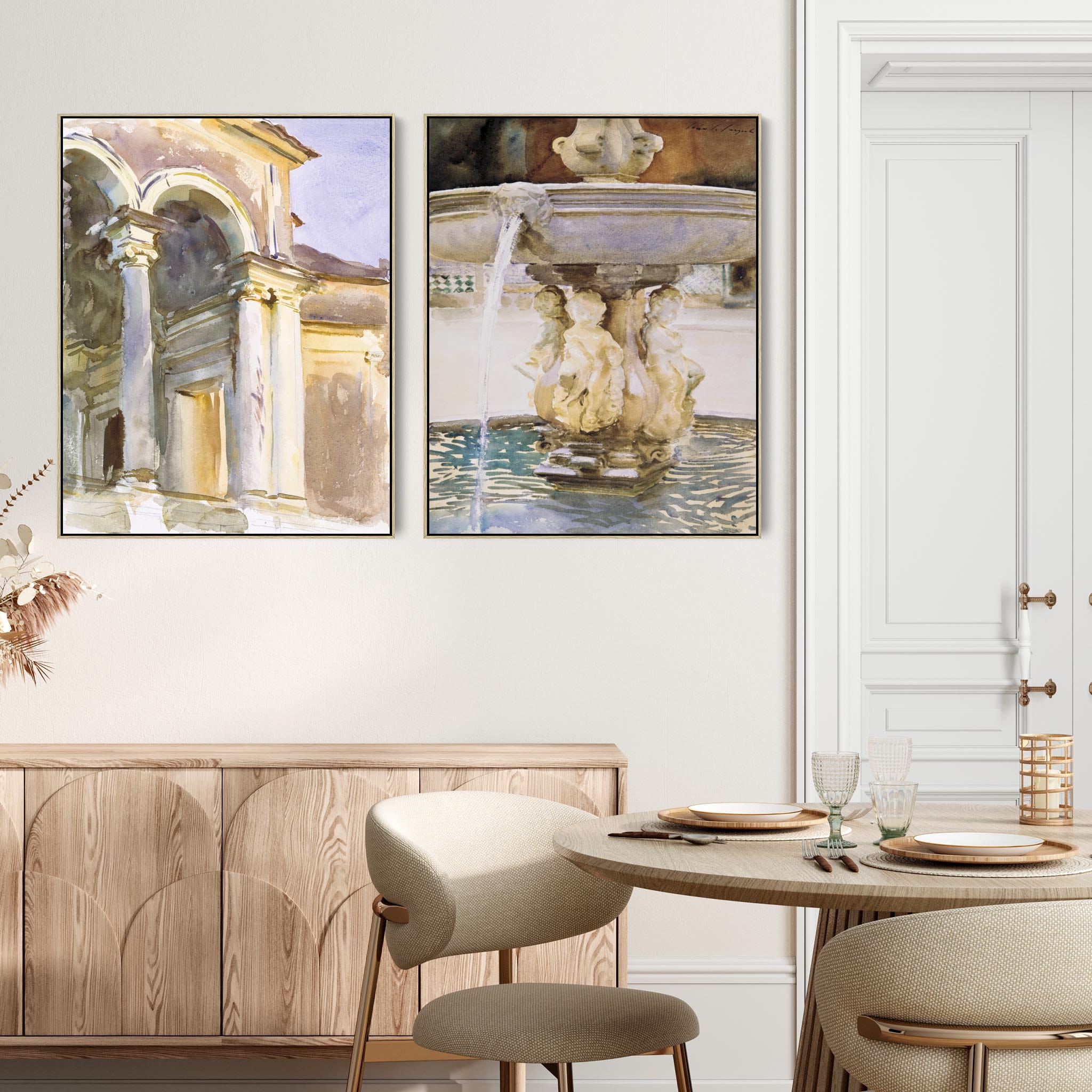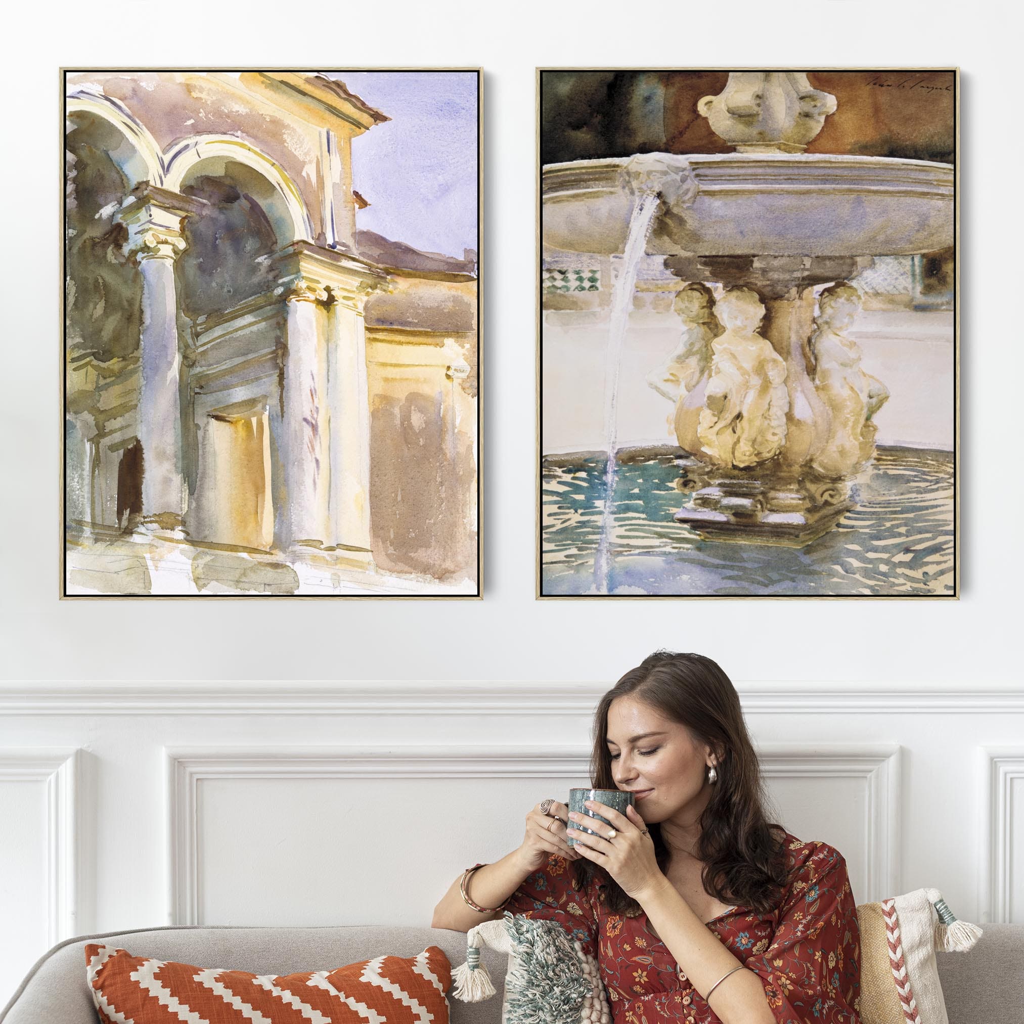 Large John Singer Sargent Framed Pair of Wall Art Prints of Rome Venice Italy Paintings