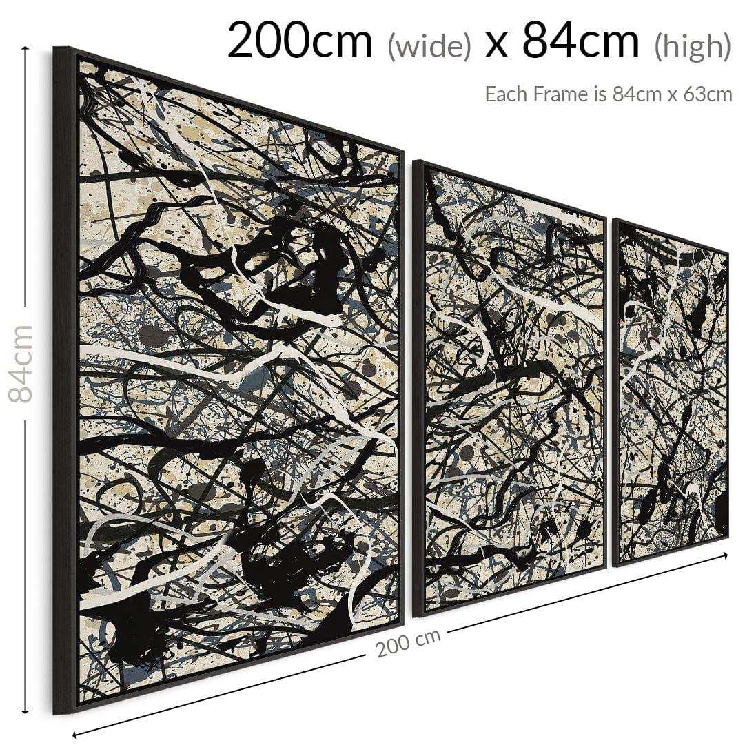Neutral Wall Art for Living Room - Set of 3 Abstract Pictures Jackson Pollock Style - 2m Wide