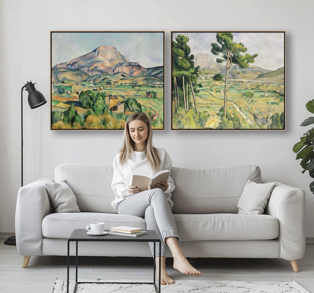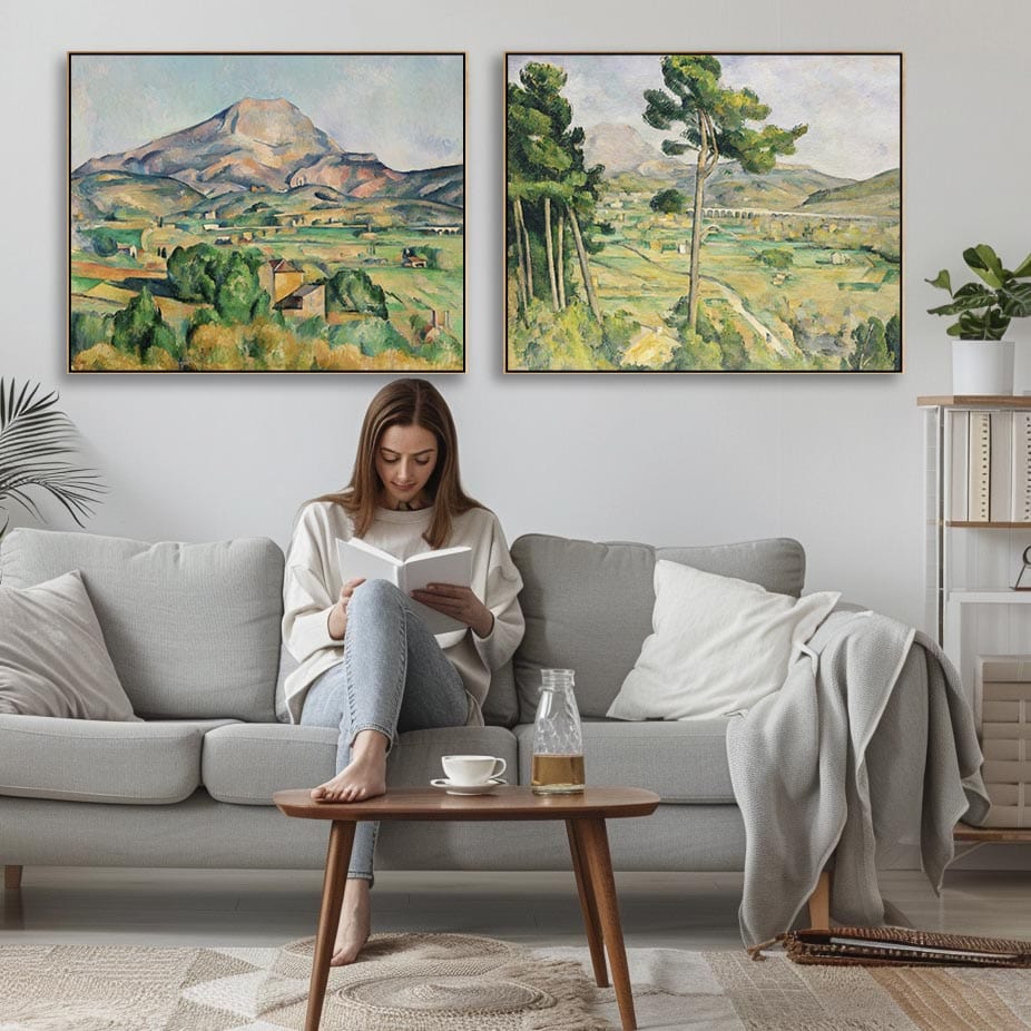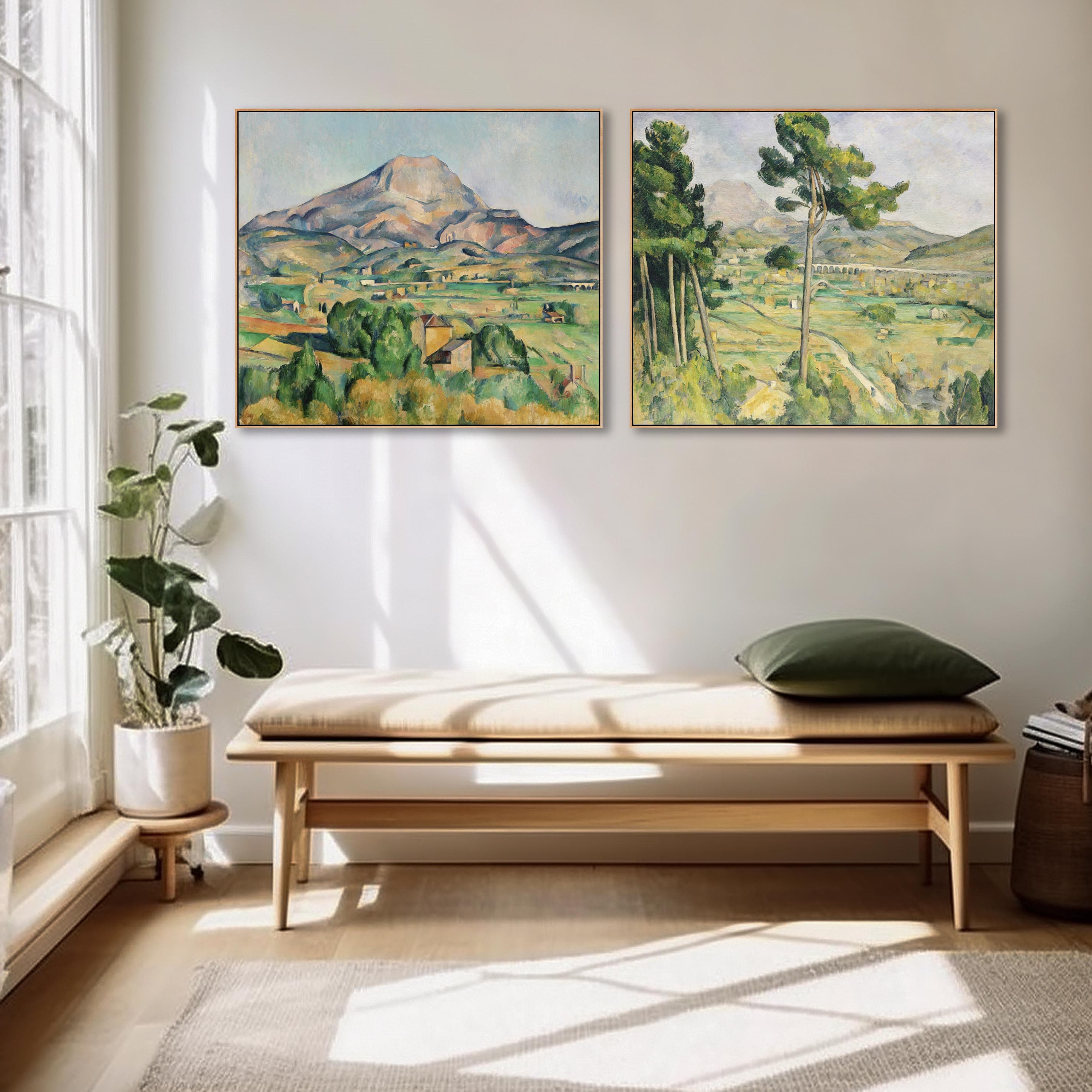 Extra Large Paul Cezanne Pair of Green Landscape Wall Art Framed Canvas Huge XL - Set of 2