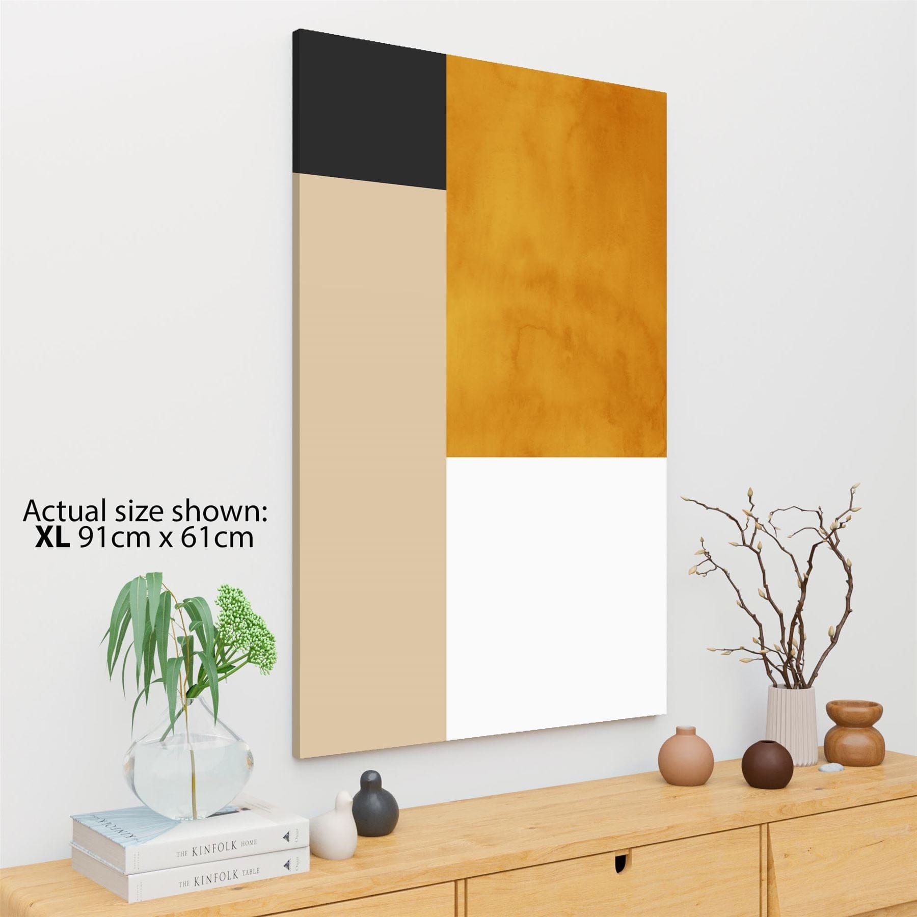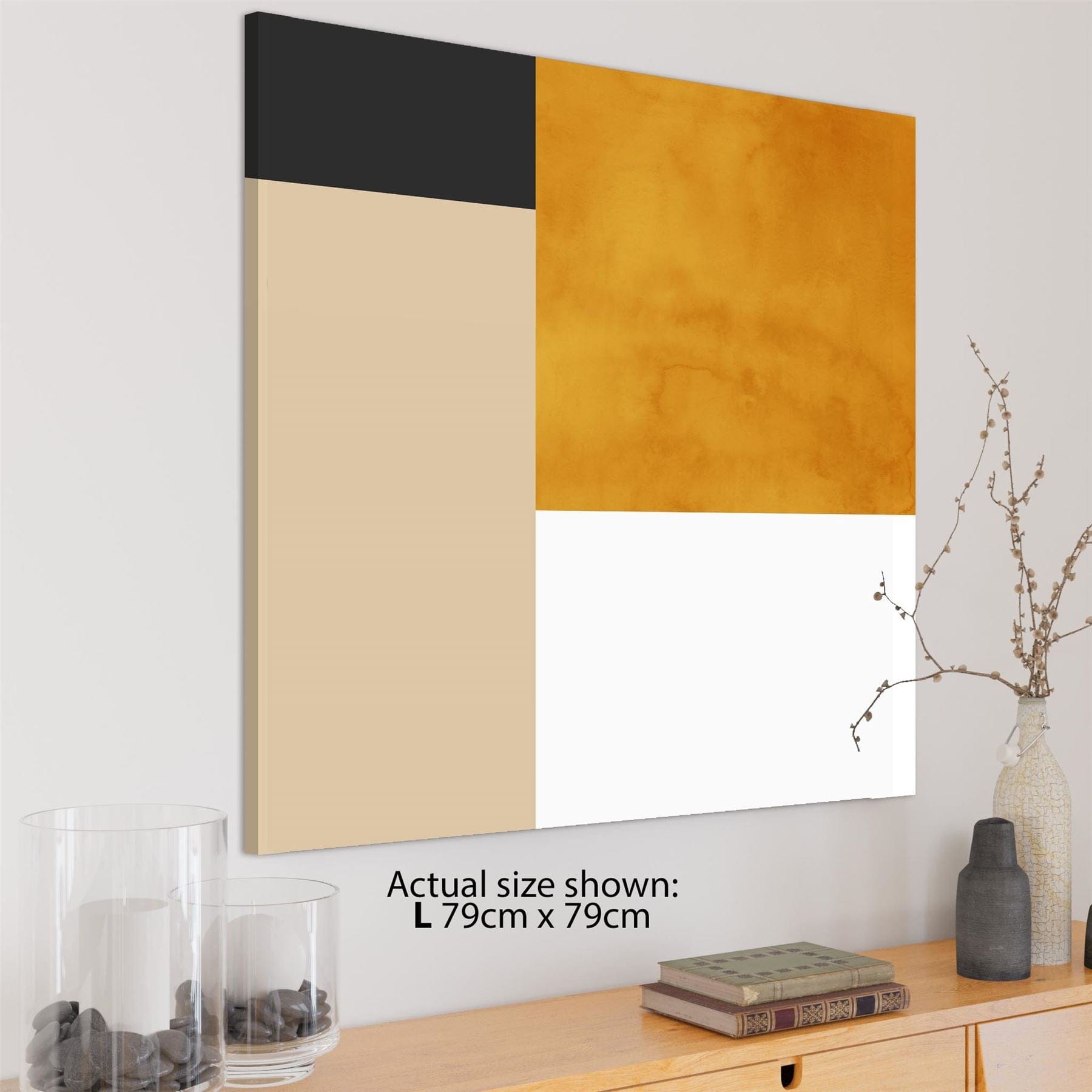Abstract Mustard Yellow White Graphic Canvas Art Prints
