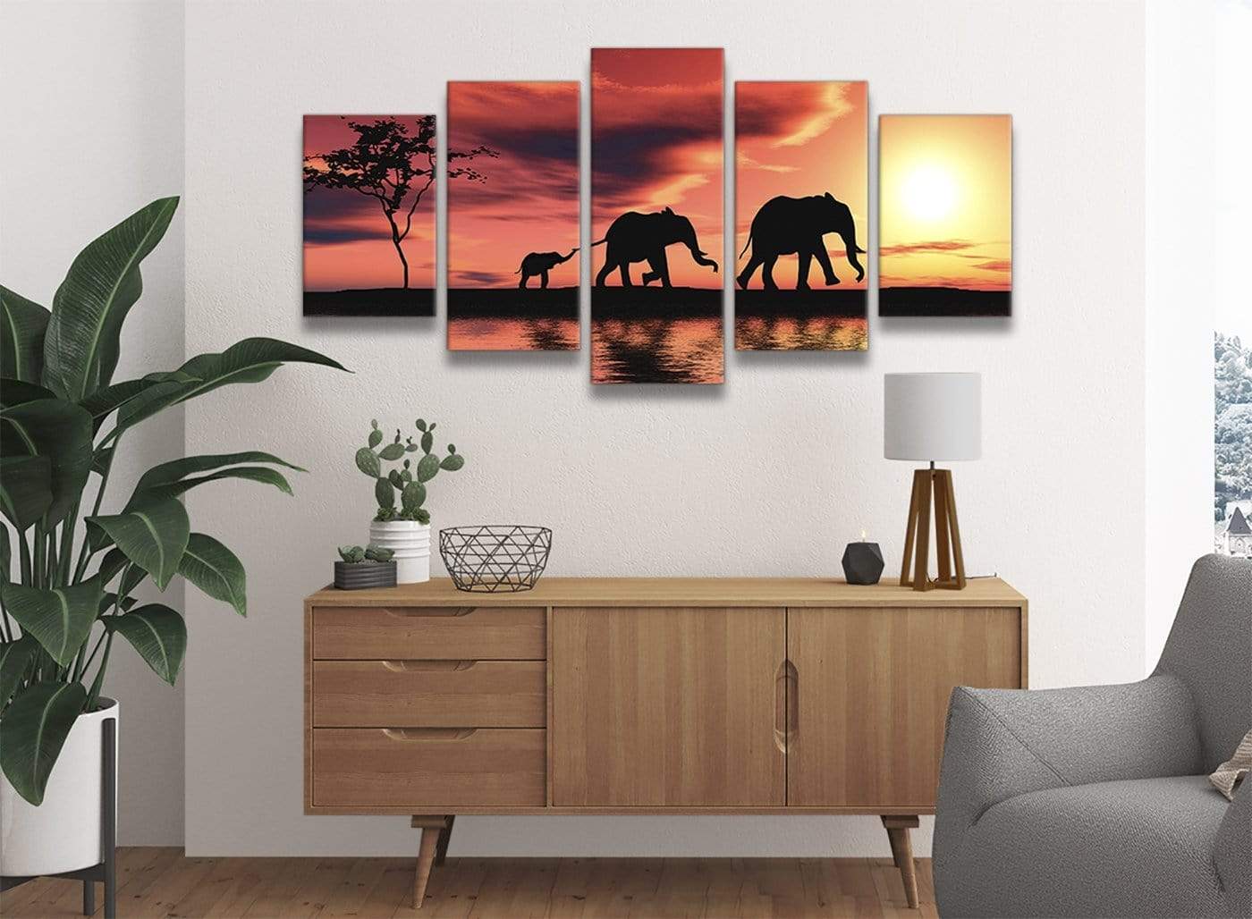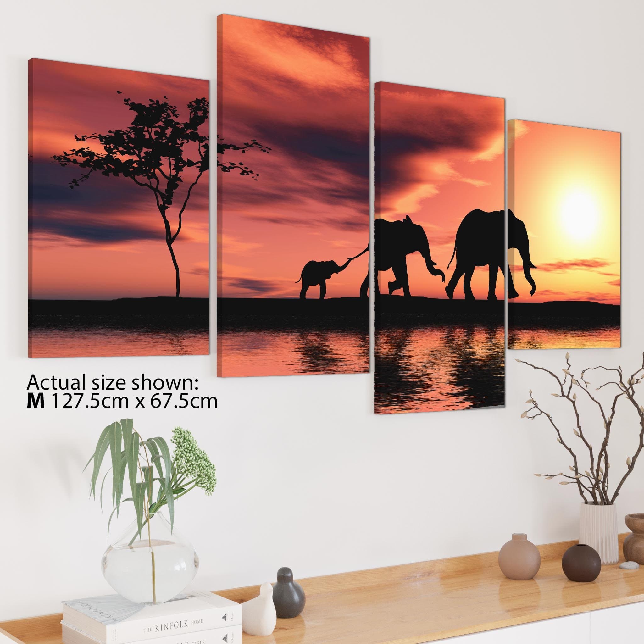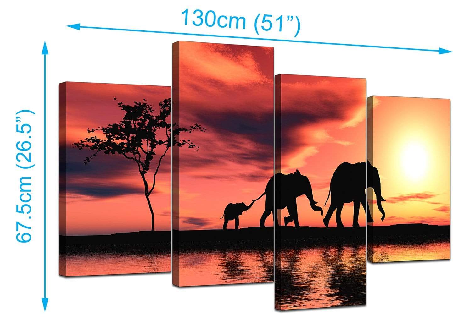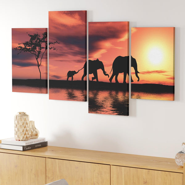 African Sunset Elephants Landscape Canvas