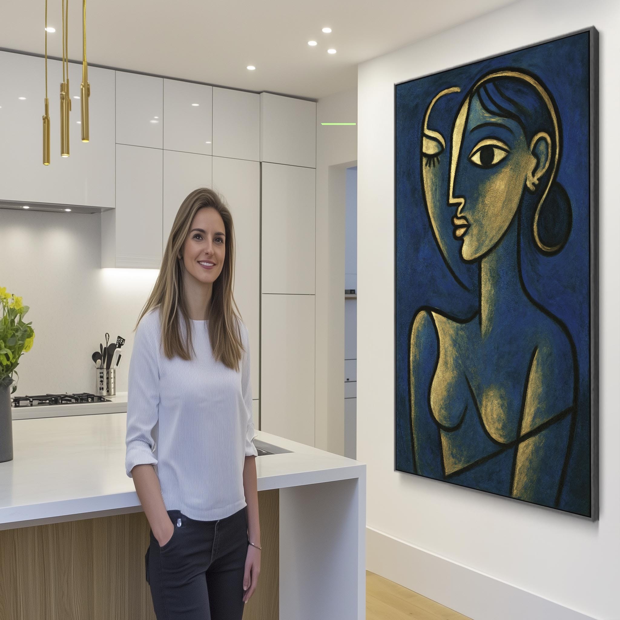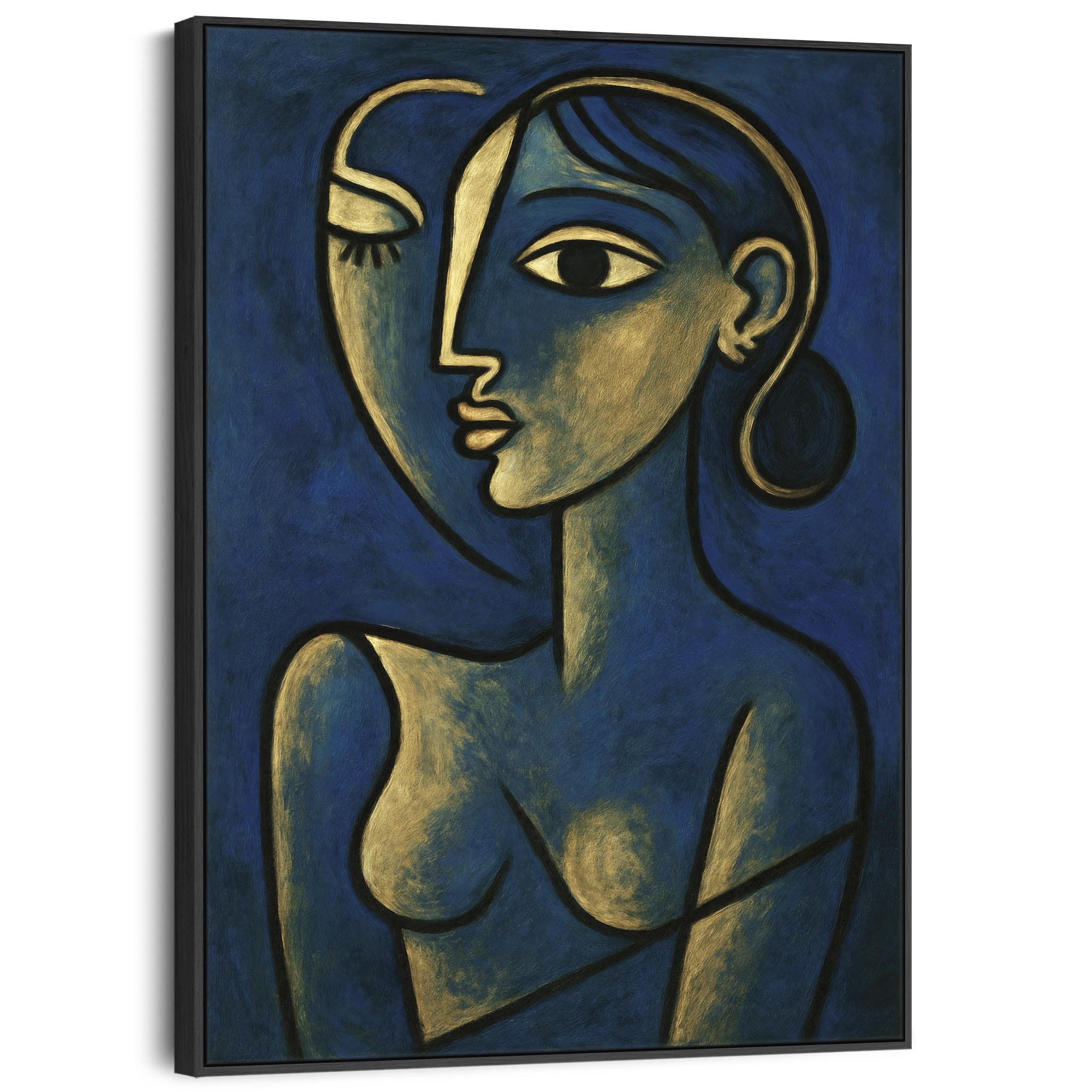Blue Abstract Framed Canvas Print Picasso Style - Thoughtful Silence