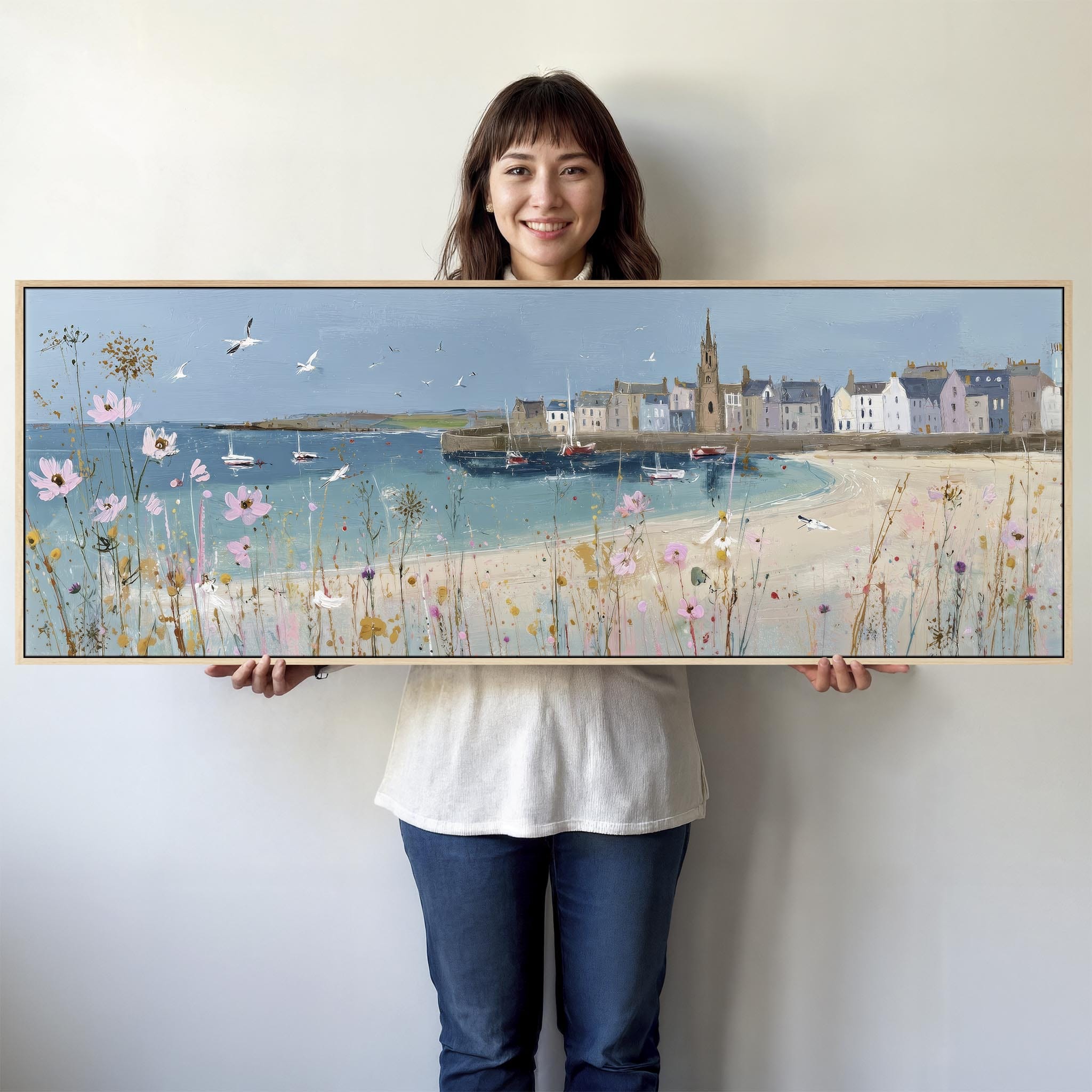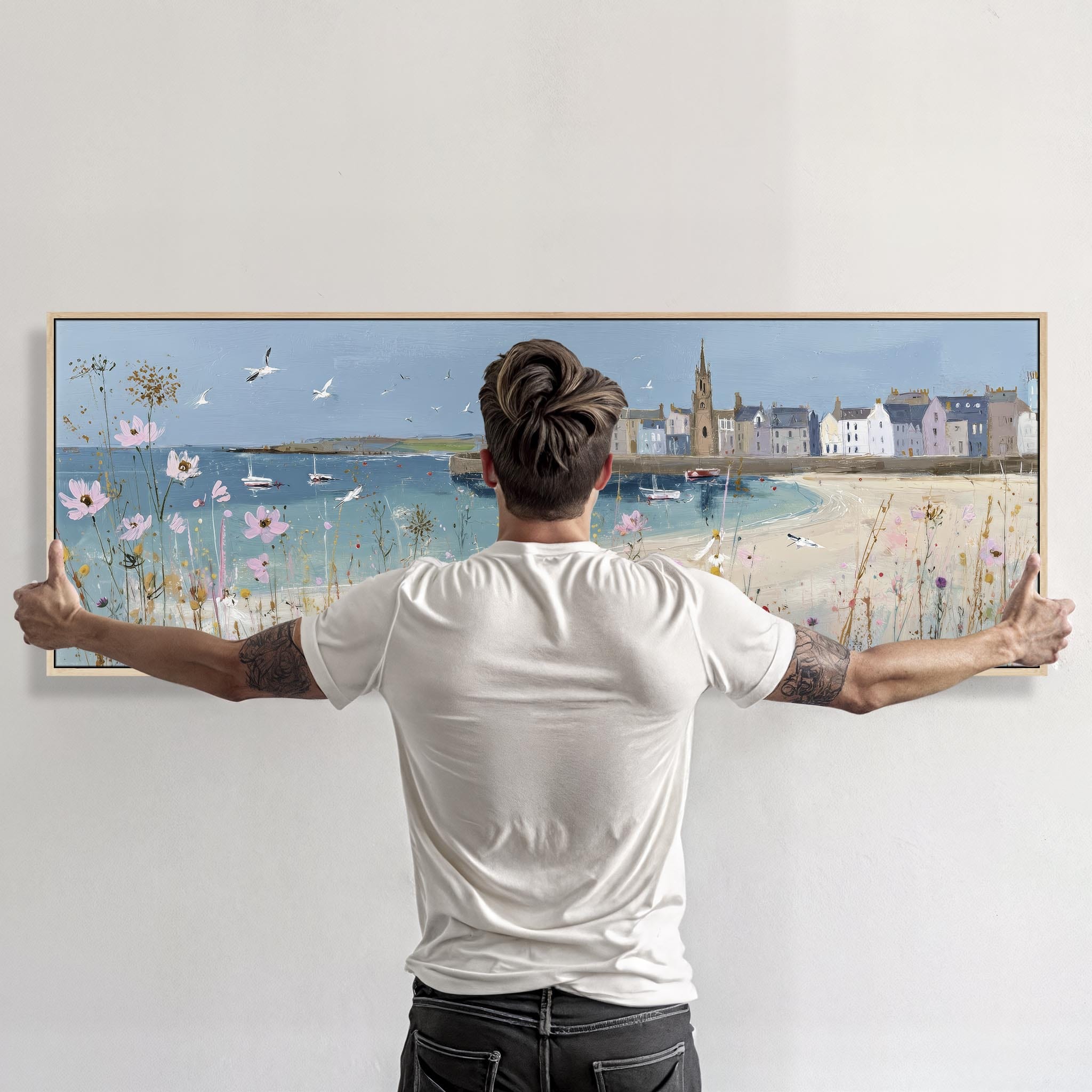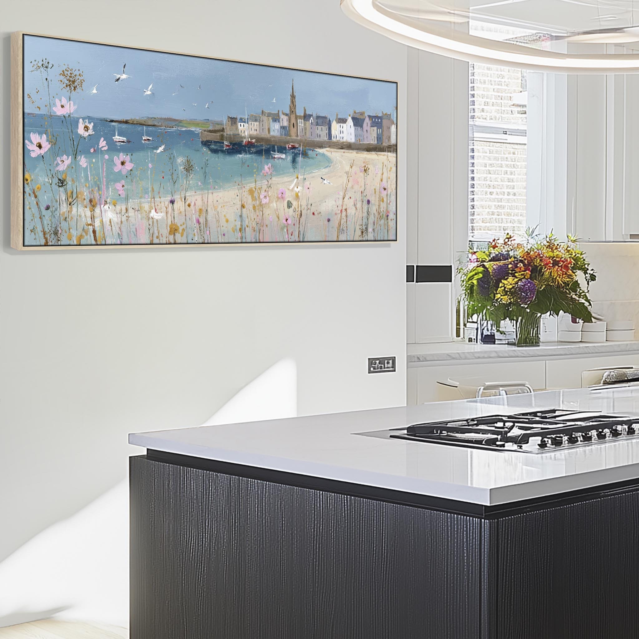 Blue Coastal Wall Art Panoramic - Cornish Harbour