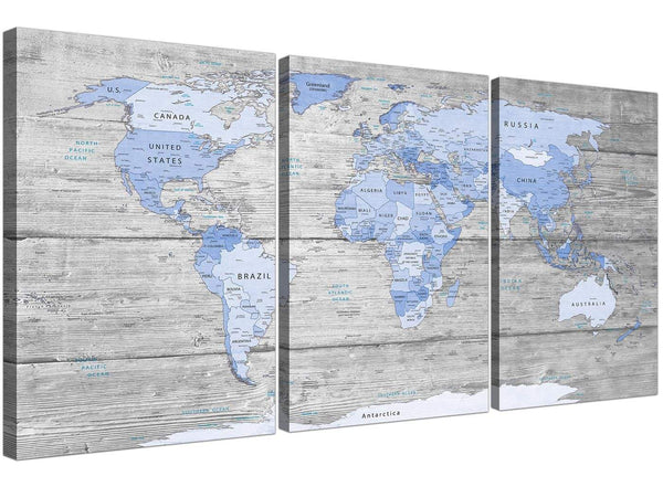 Blue Grey Map of World Atlas Canvas Wall Art Print