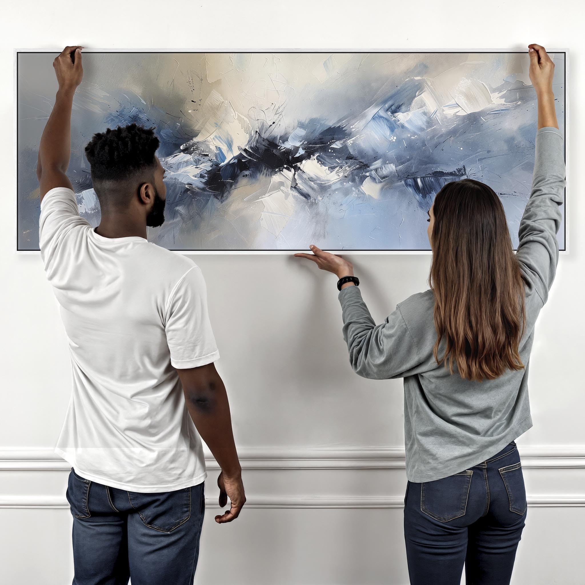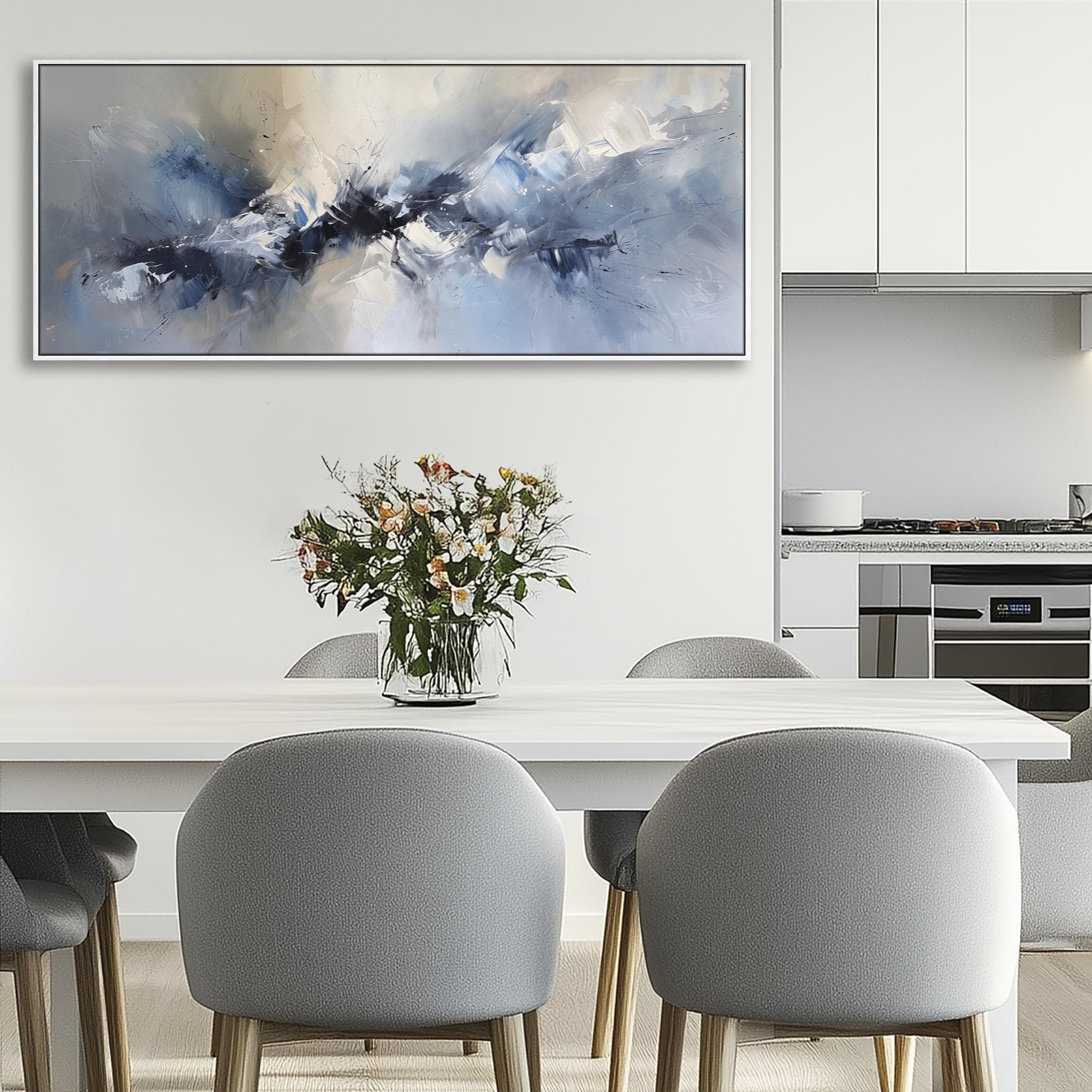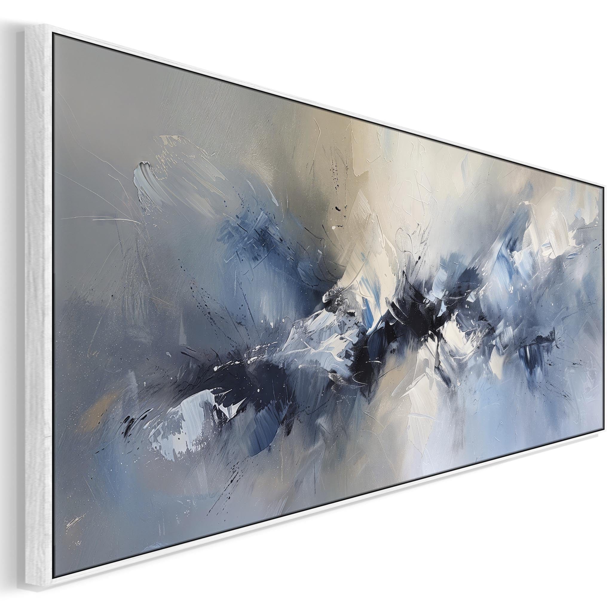 Blue White Abstract Canvas Pictures Framed Wide Panoramic - Harmony