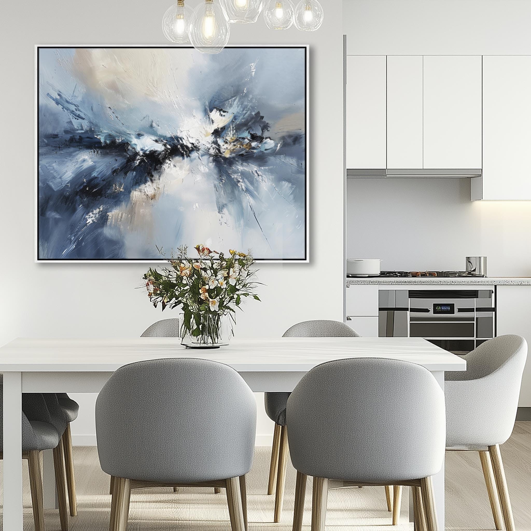 Blue White Abstract Framed Artwork XL - Skybound Echo