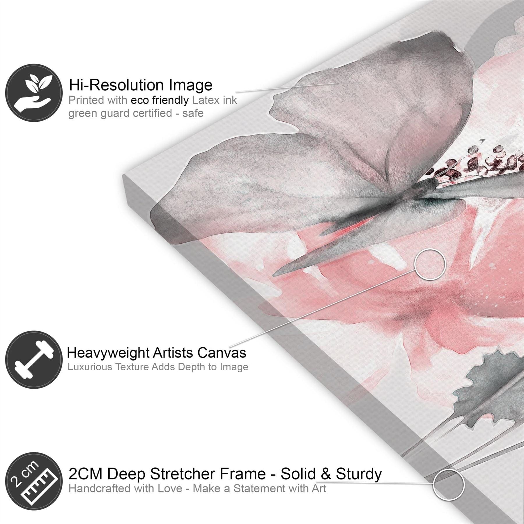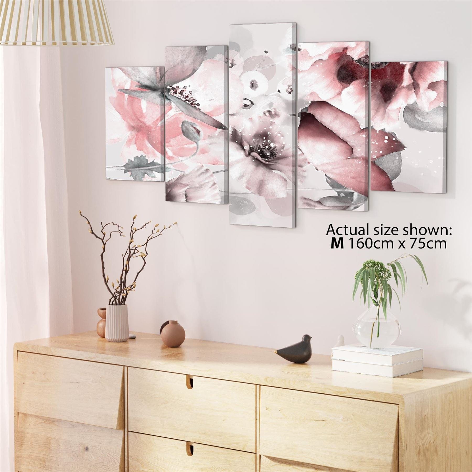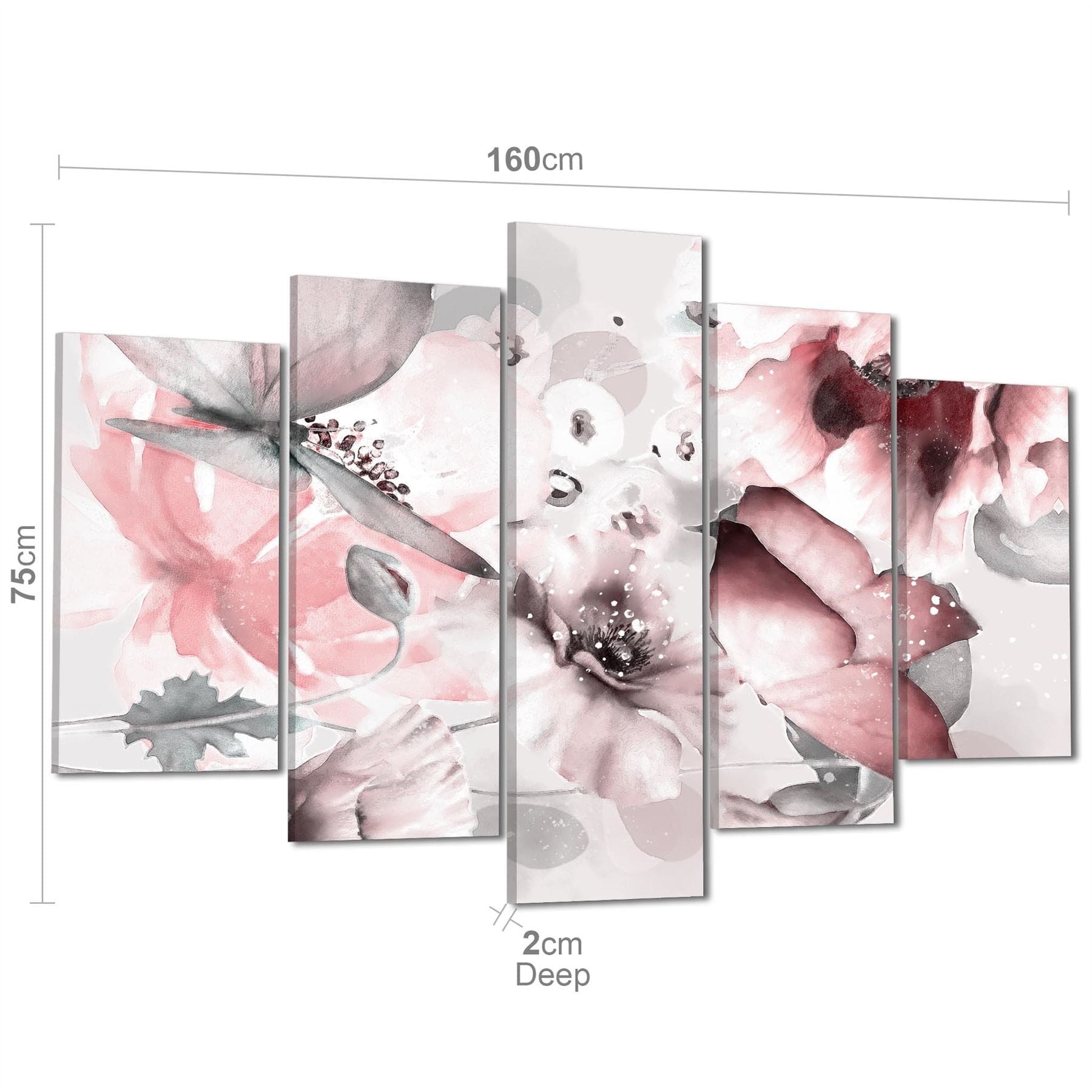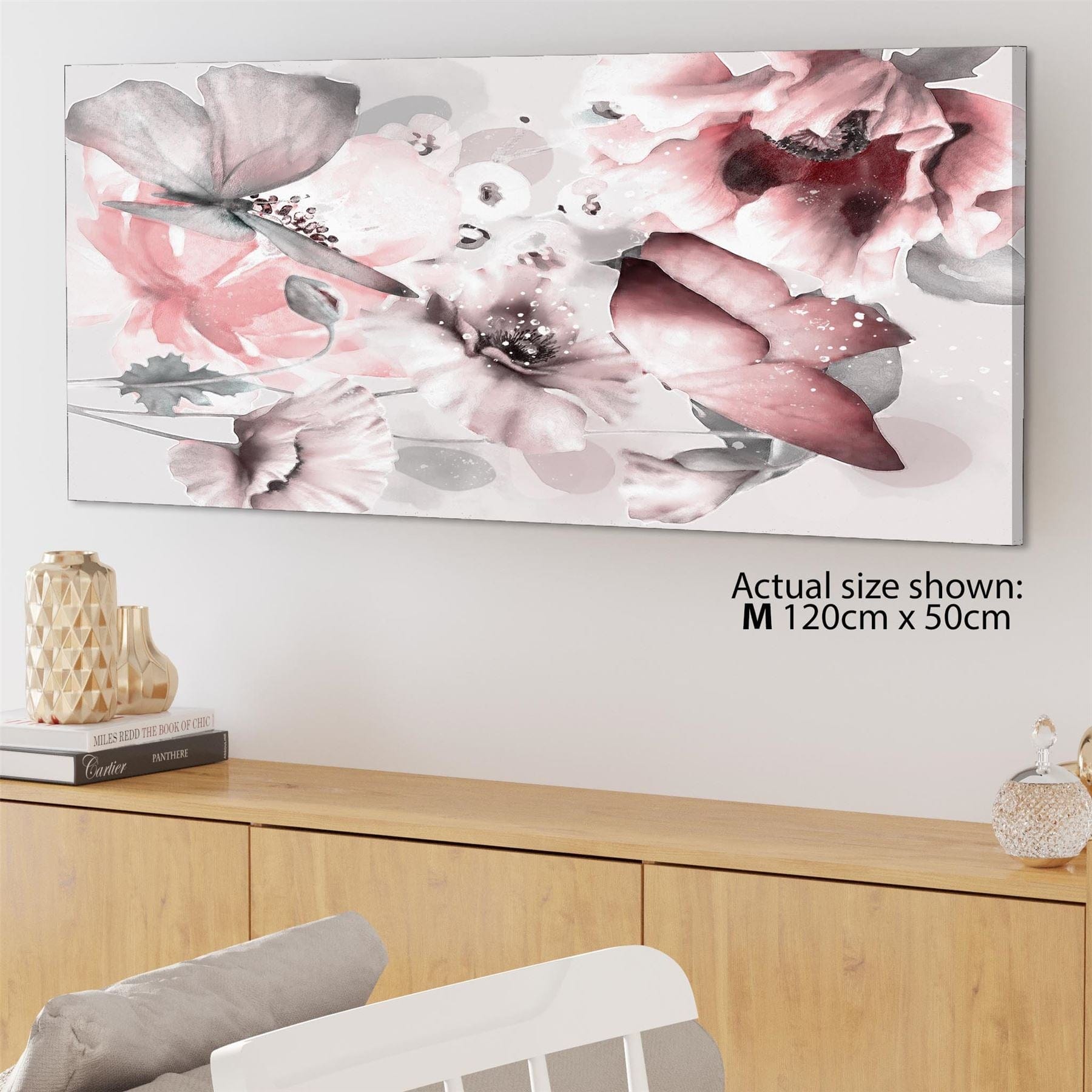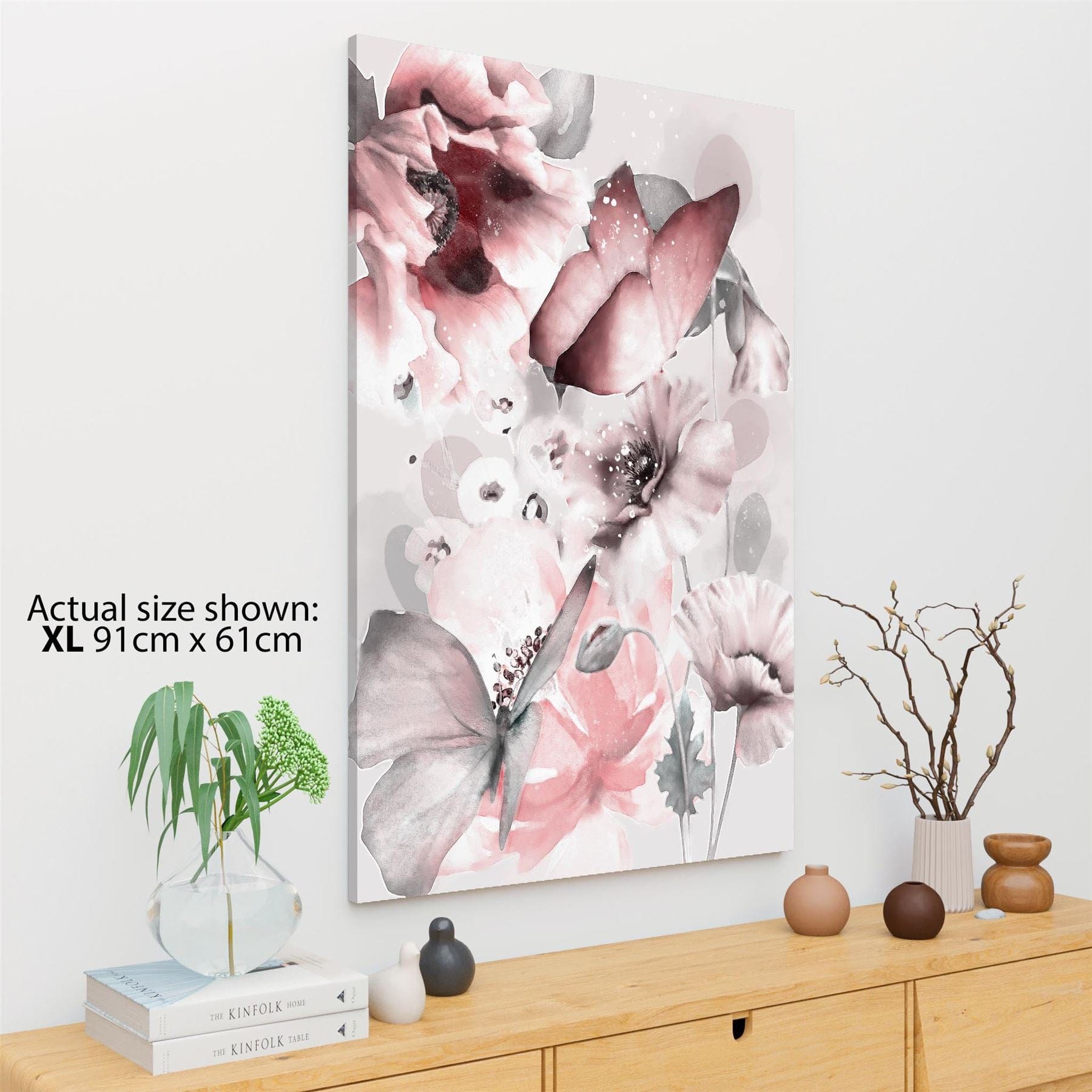 Blush Pink Grey Flowers Floral Canvas Art Prints