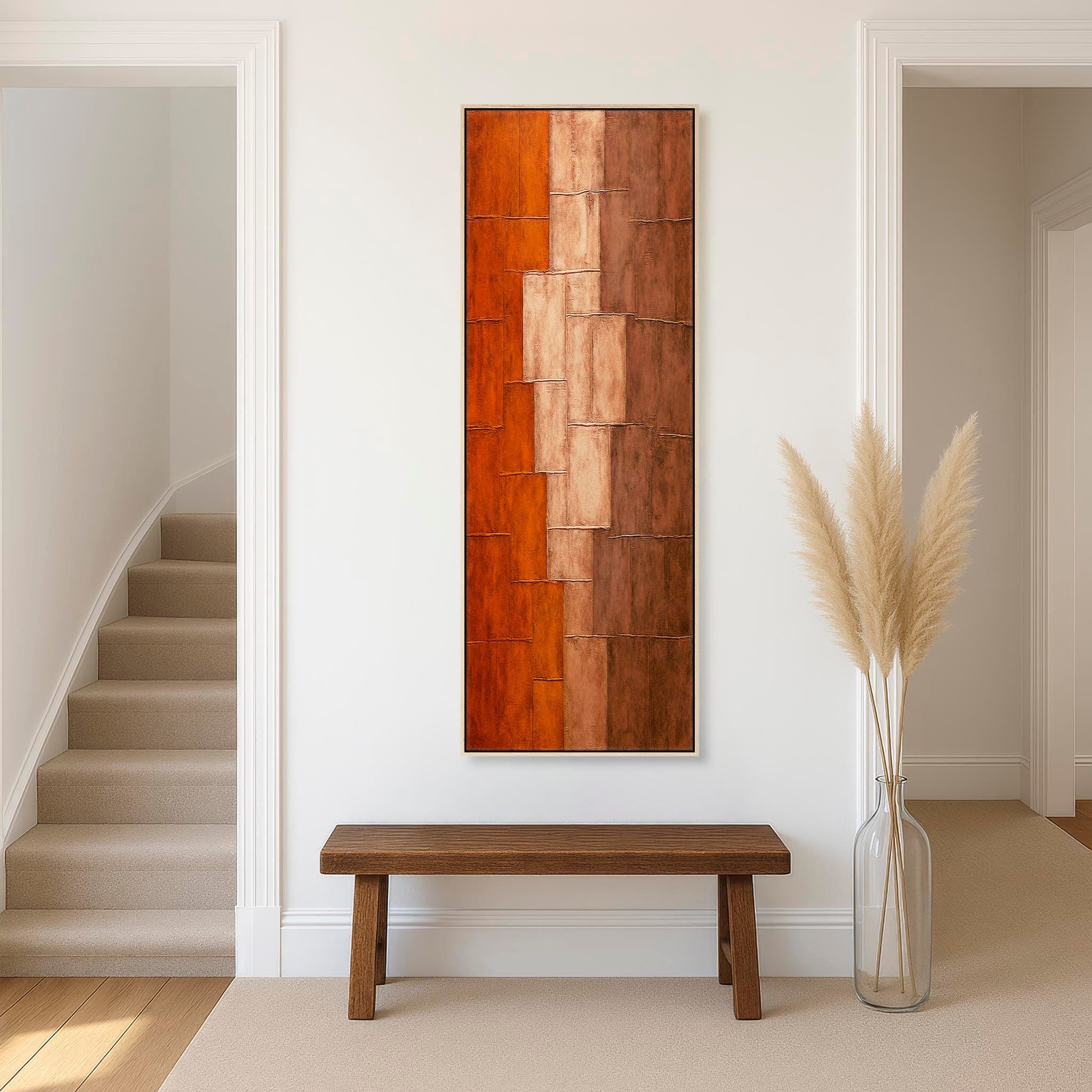 Earthy Orange Tall Vertical Wall Art - Upright Rusty Autumn