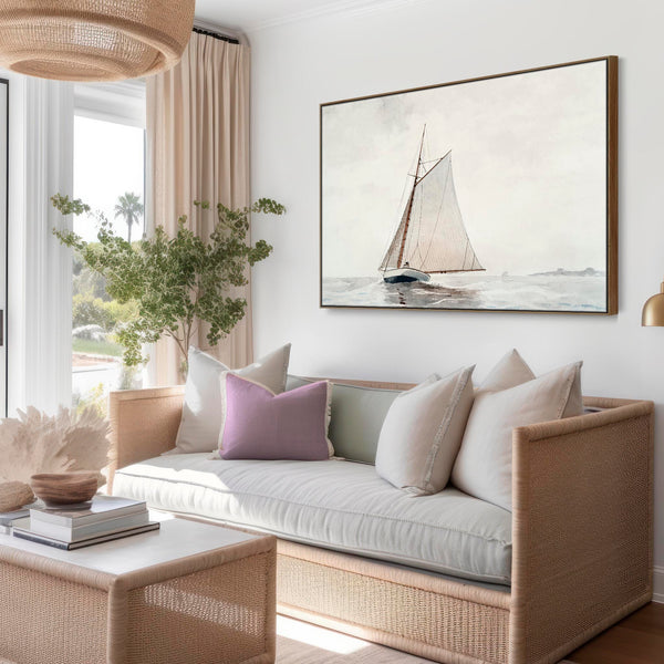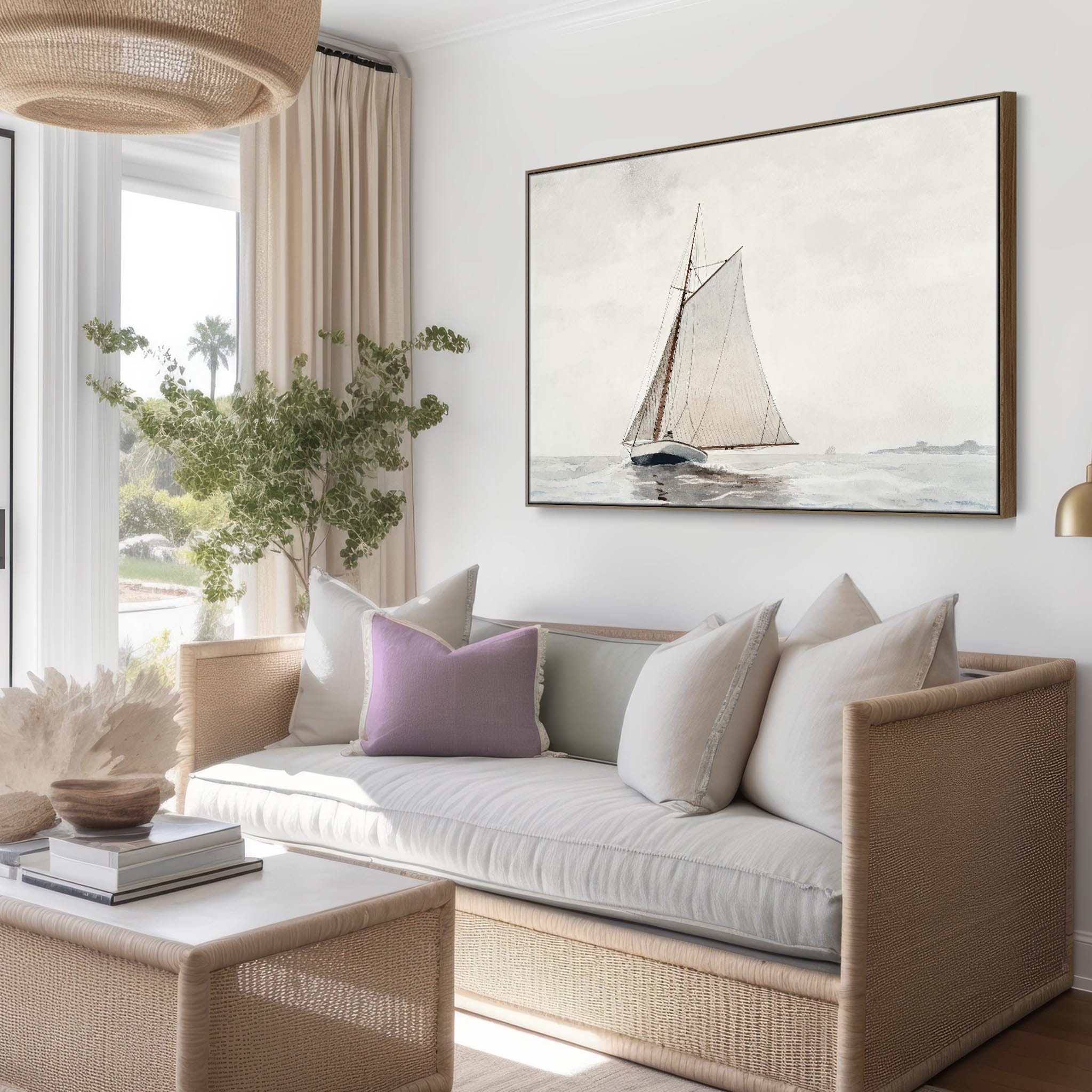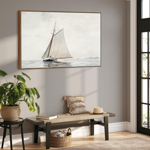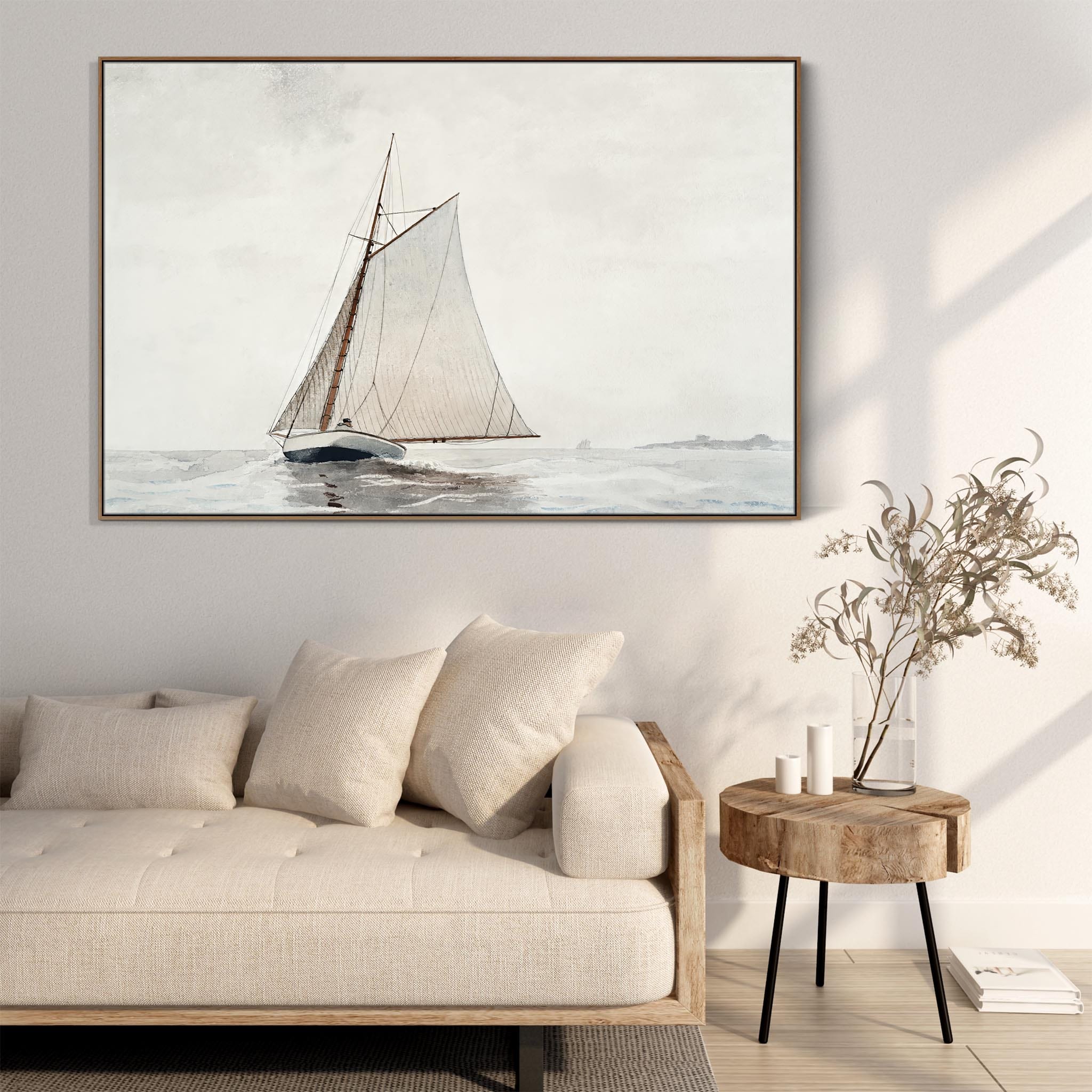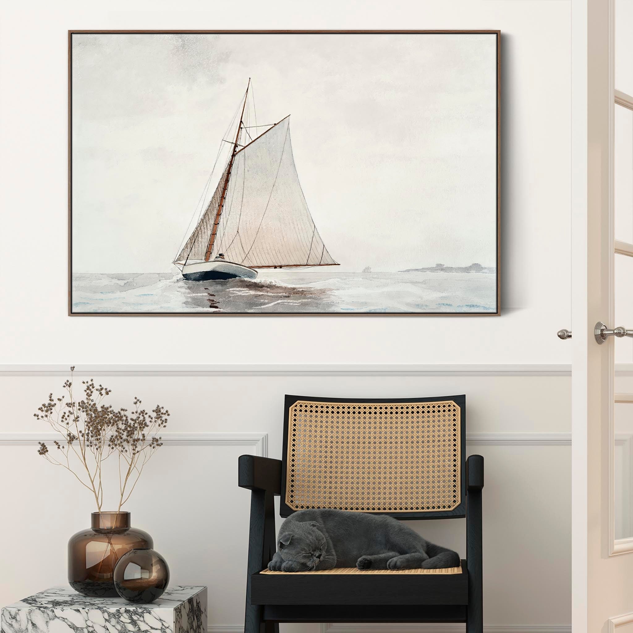 Entrance Hall Framed Wall Art Canvas Print - Neutral - Winslow Homer - Sailing off Gloucester for Hallway