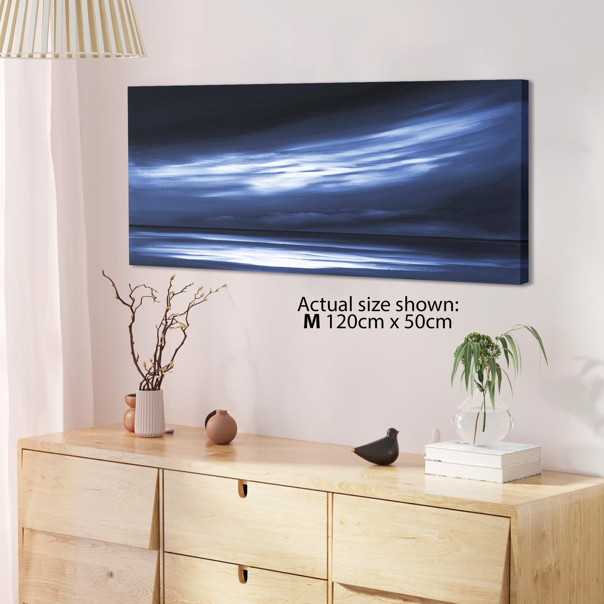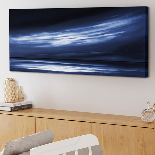 Extra Large Indigo Blue White Abstract Sunset Modern Canvas Wall Art