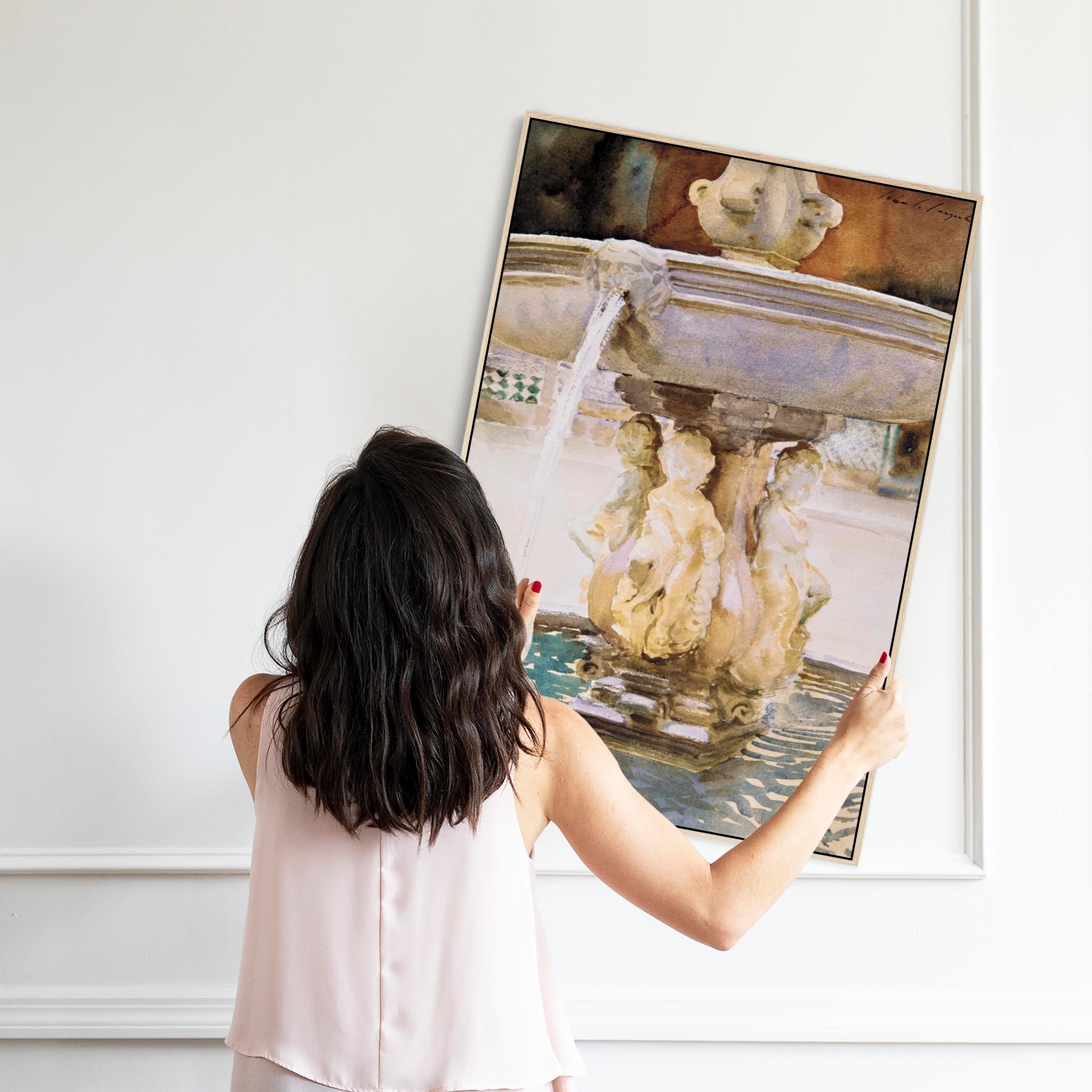 Extra Large John Singer Sargent Art Framed Canvas Painting of Spanish Fountain