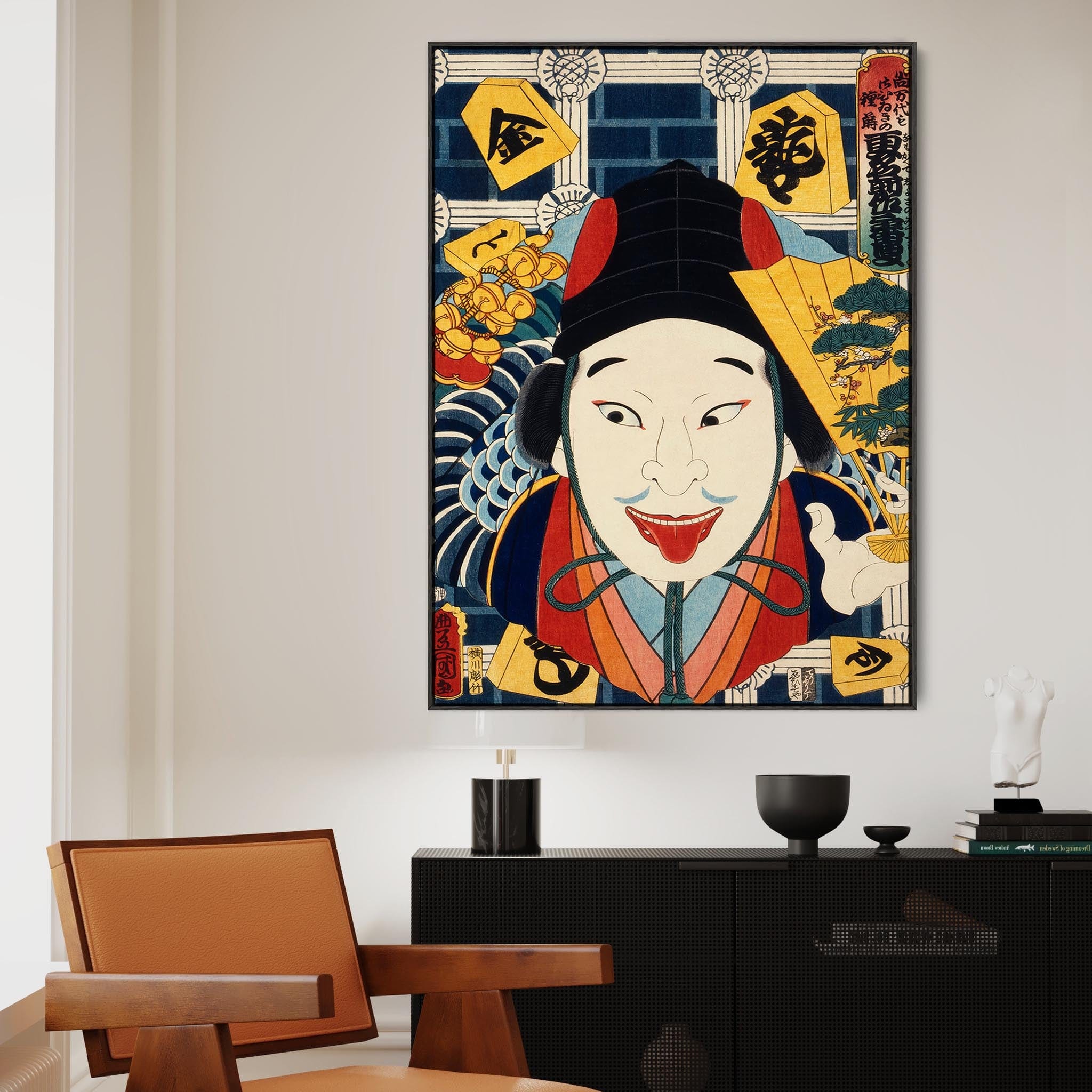 Japanese Colourful Wall Art Framed Canvas Print of Toyohara Kunichika Painting