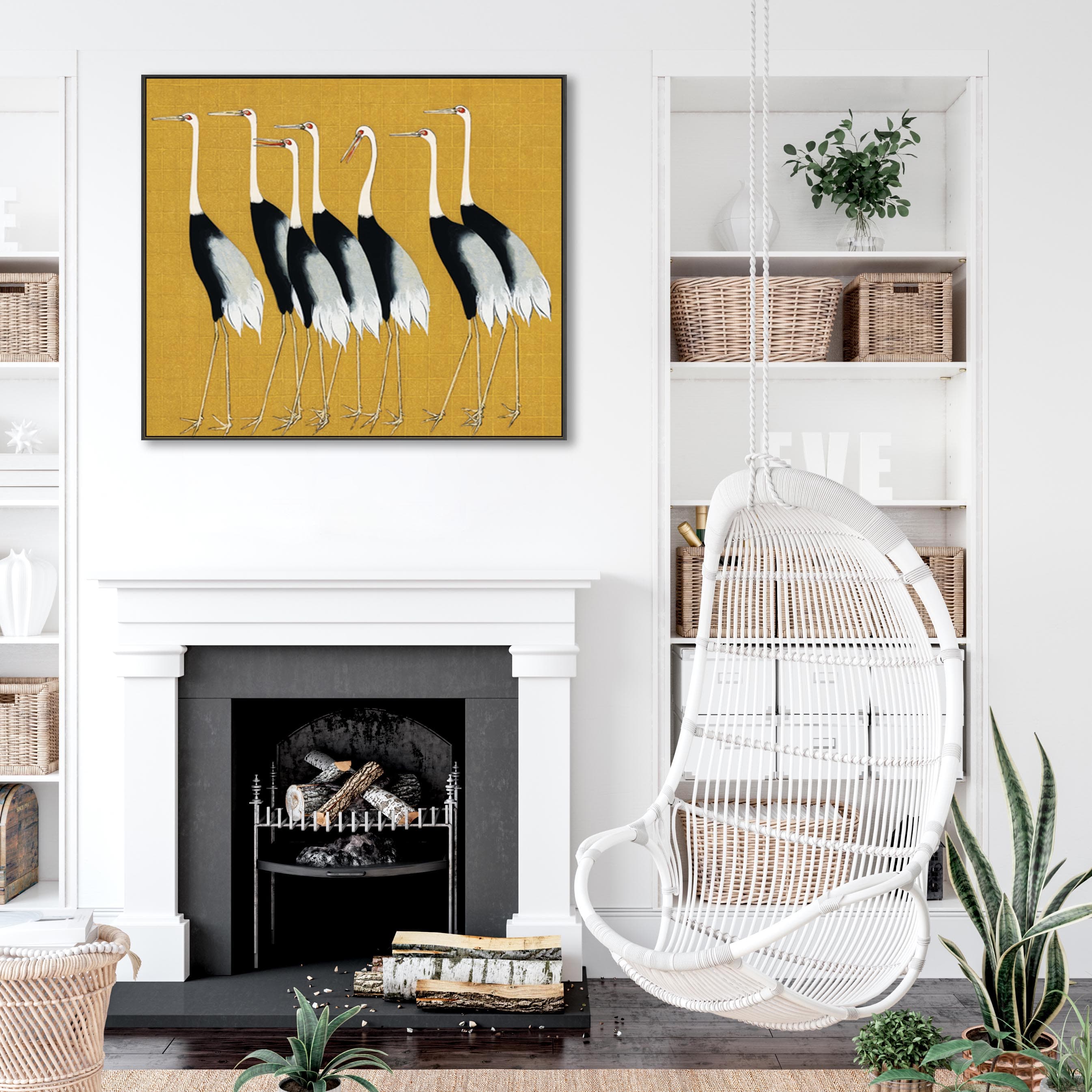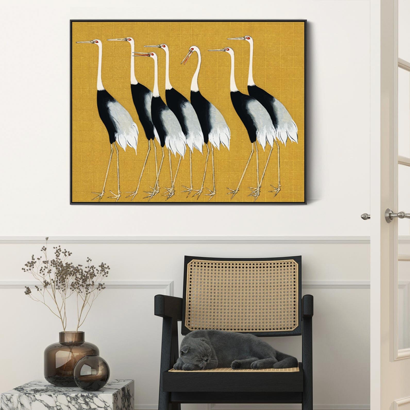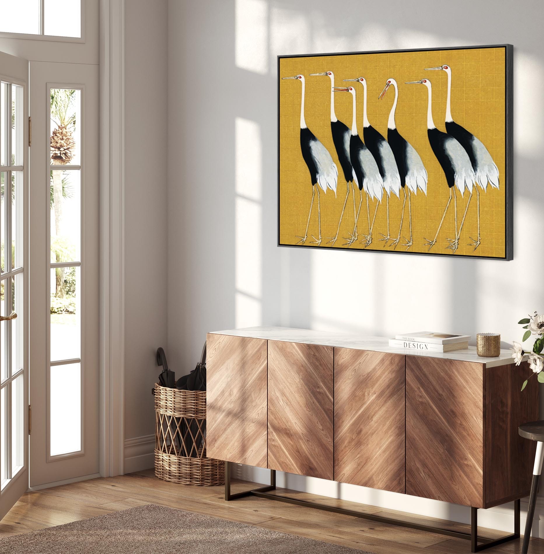 Japanese Red Crown Crane Birds Wall Art Framed Canvas Print of Ogata Korin Painting