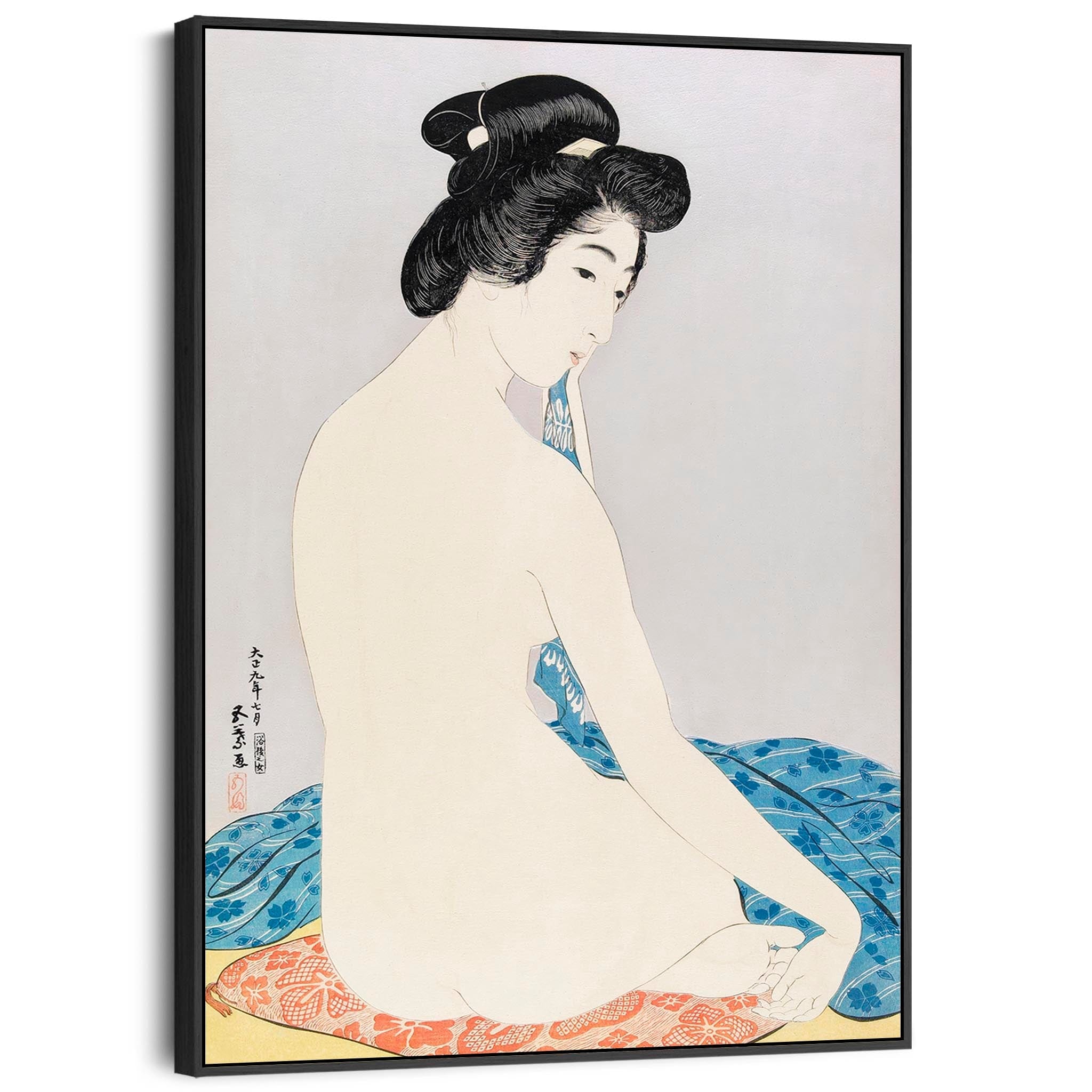 Japanese Woman Wall Art Framed Canvas Print - Bathing by Goyo Hashiguchi Painting