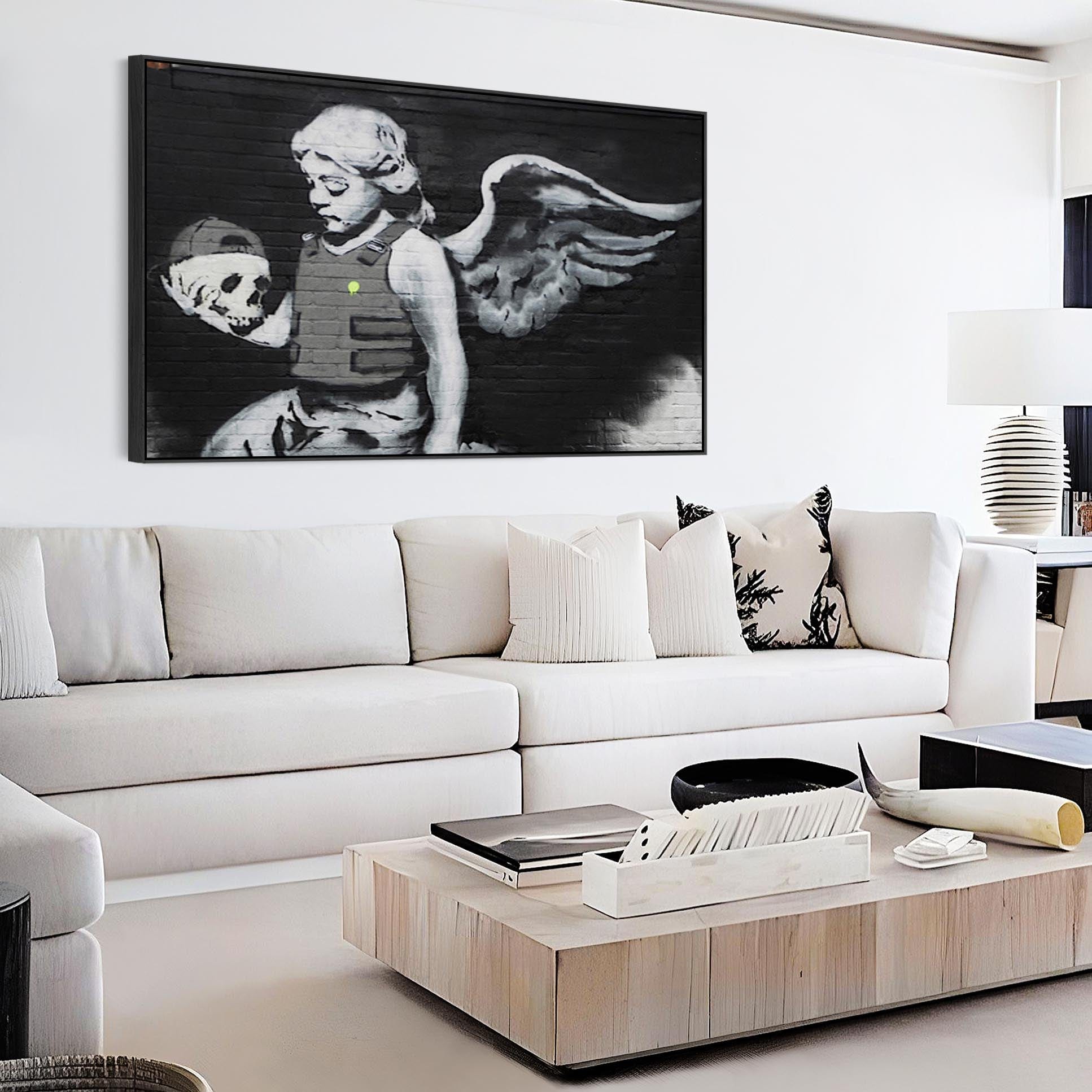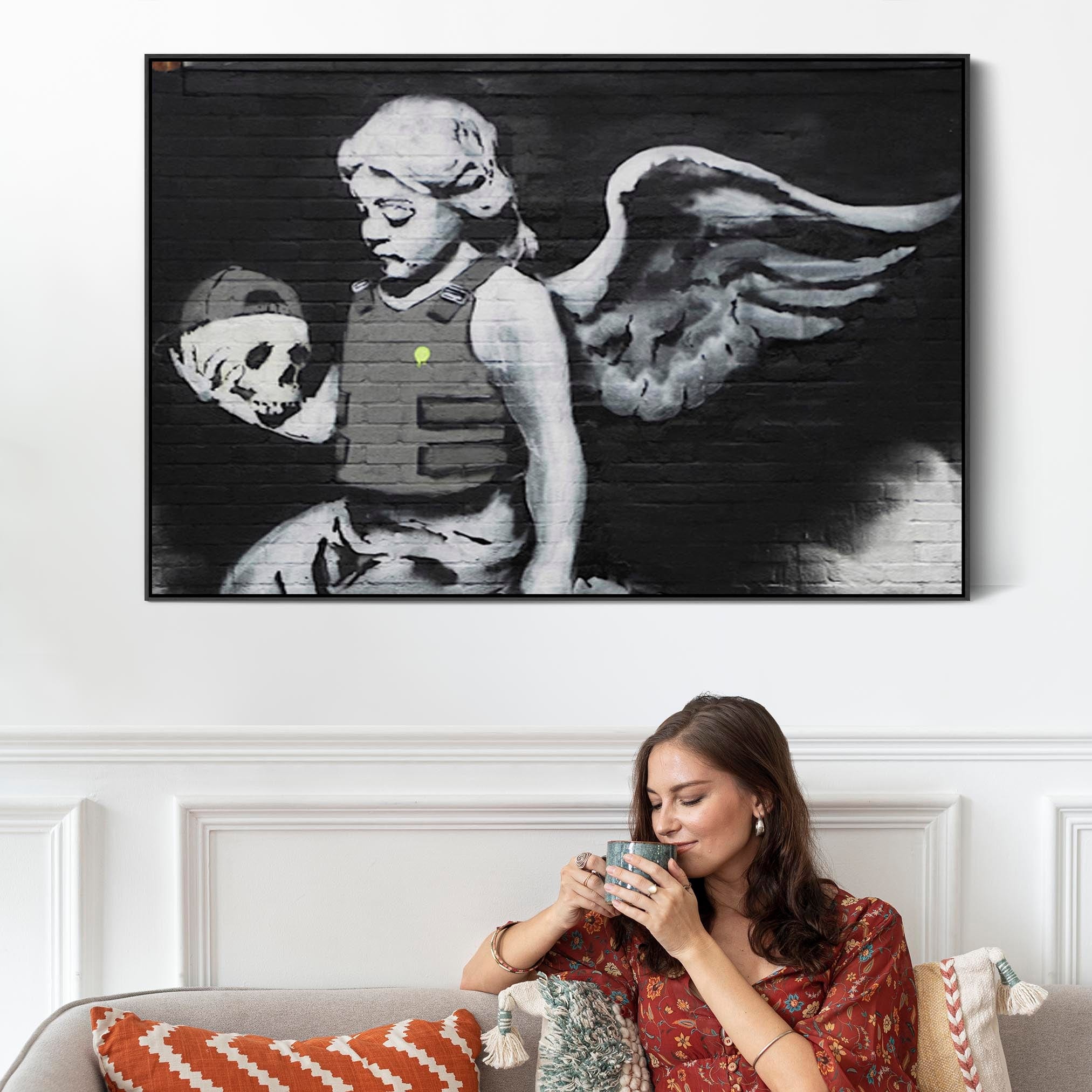 Large Banksy Framed Canvas Art Print - Angel Flack Jacket