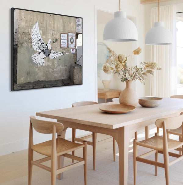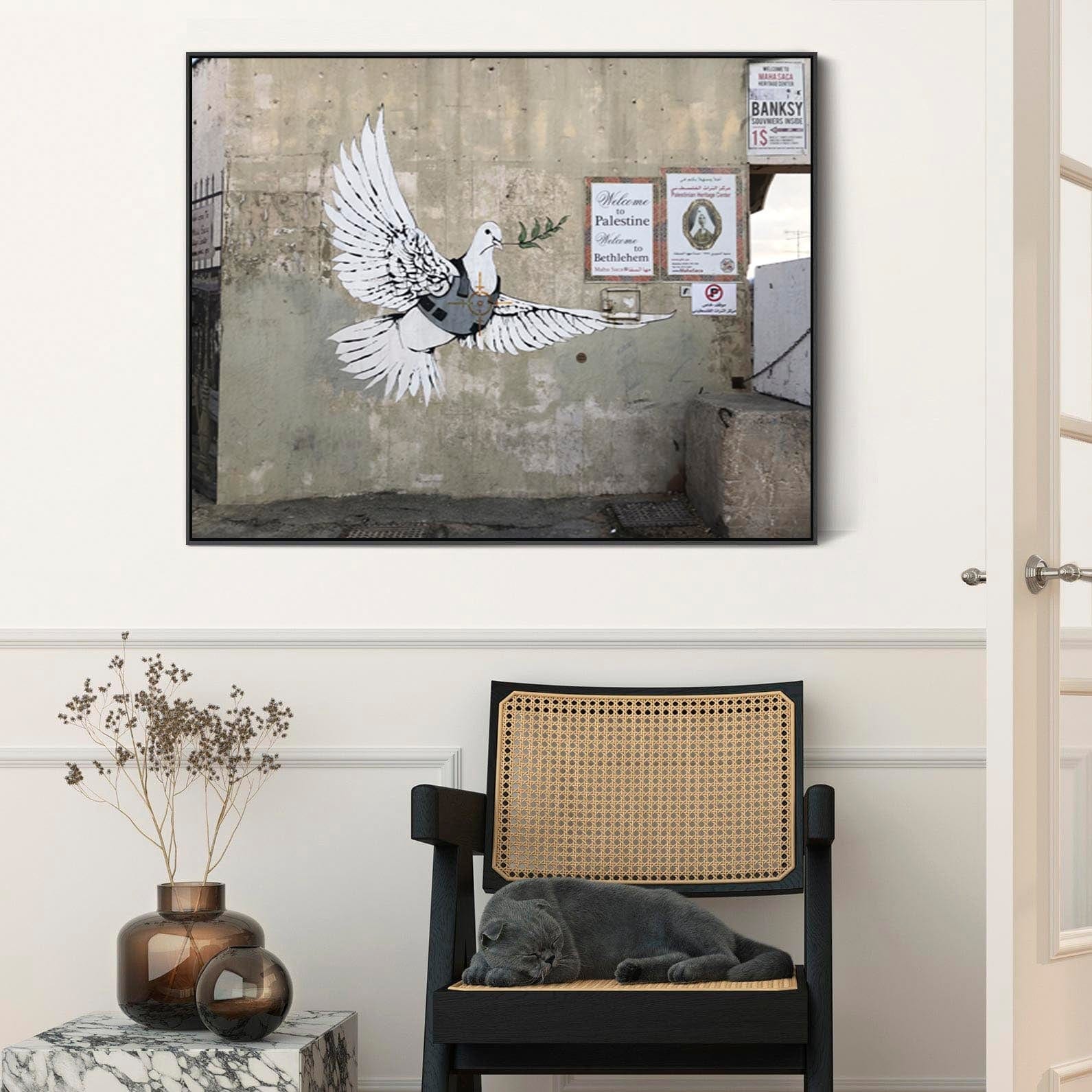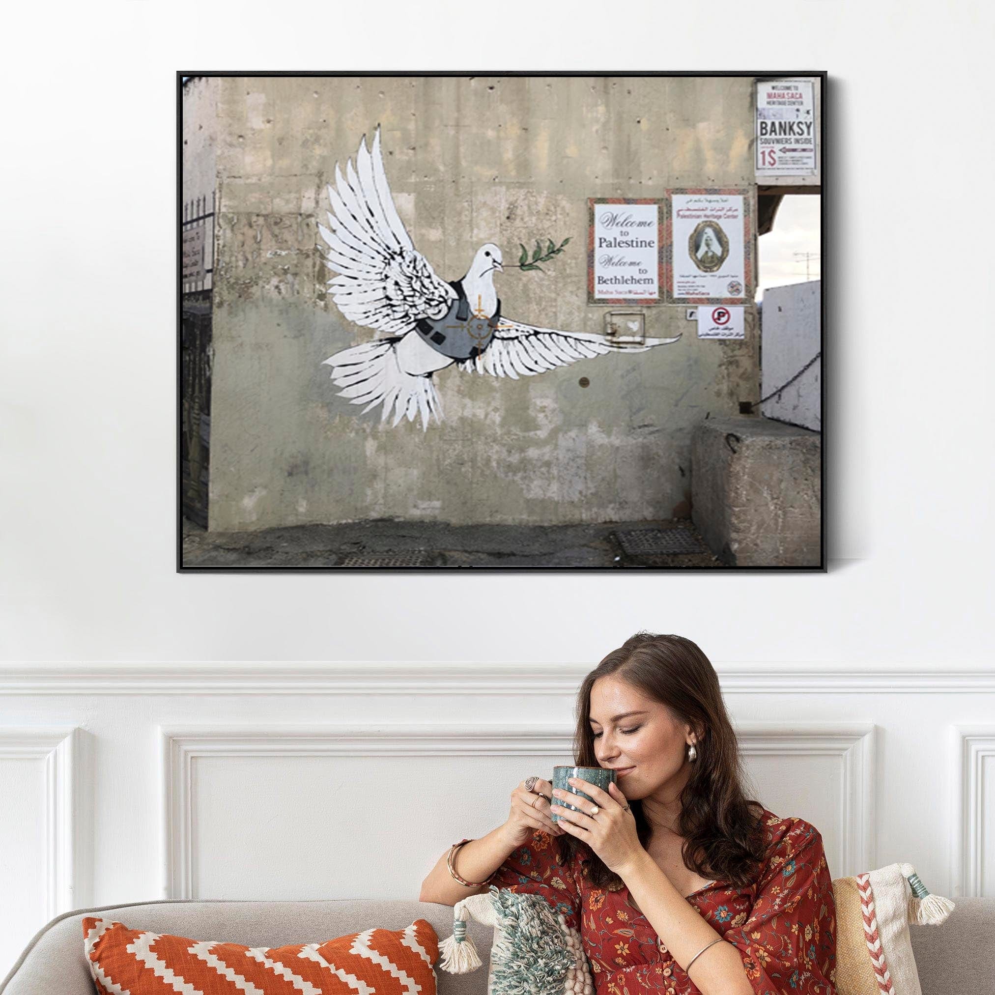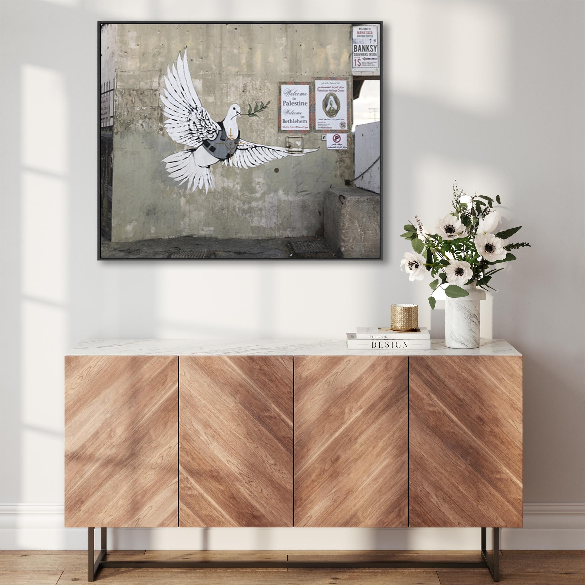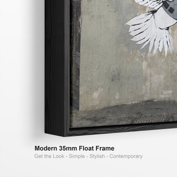 Large Banksy Framed Canvas Art Print - Armoured Peace Dove