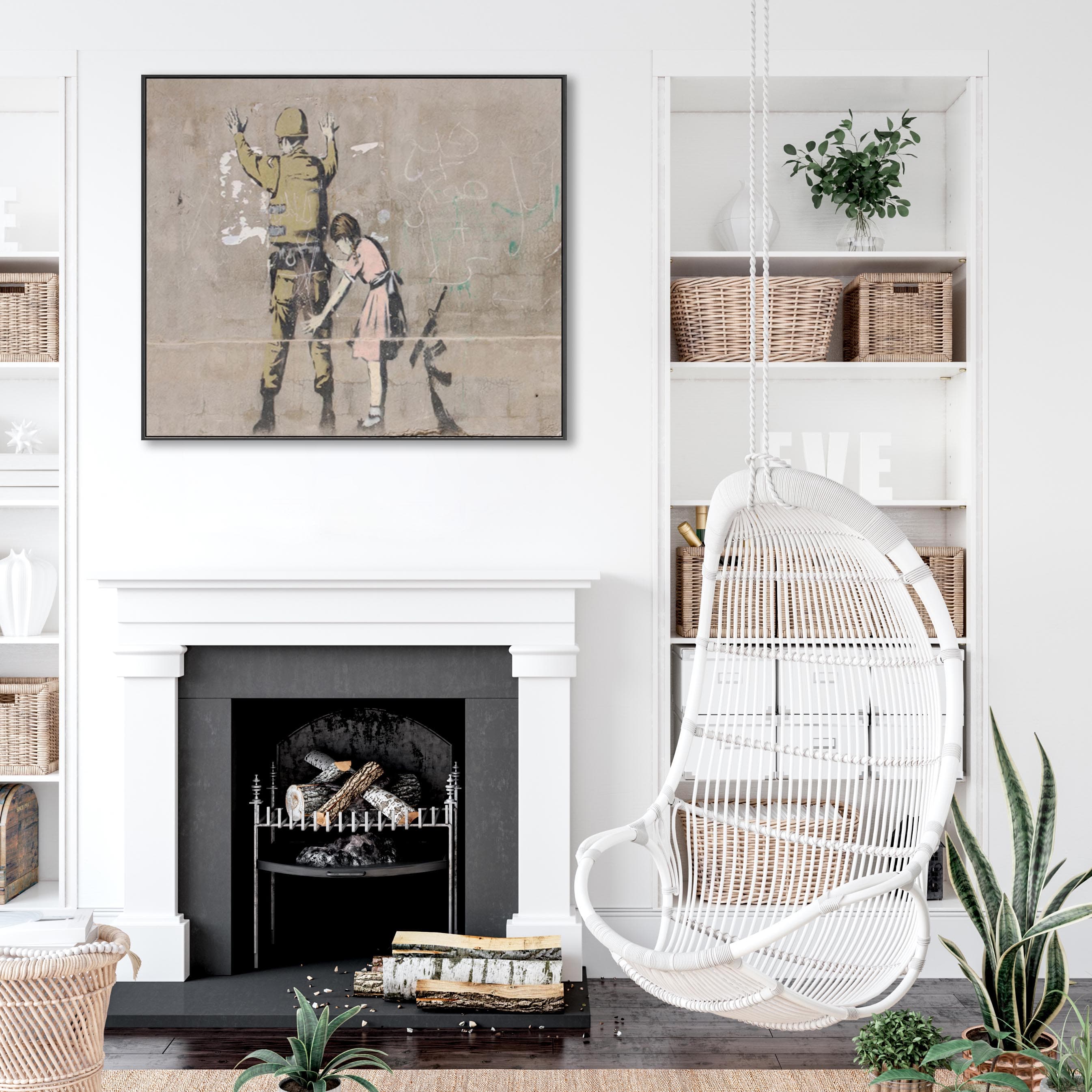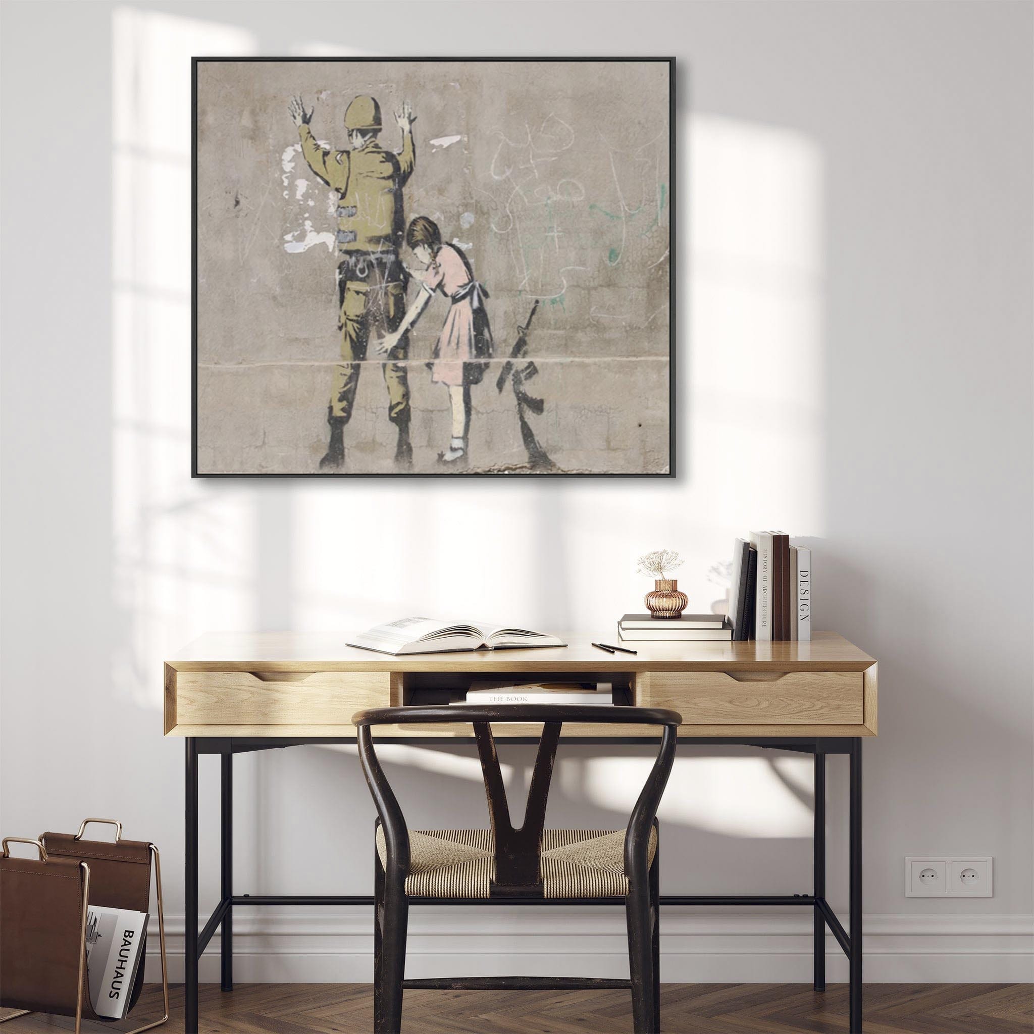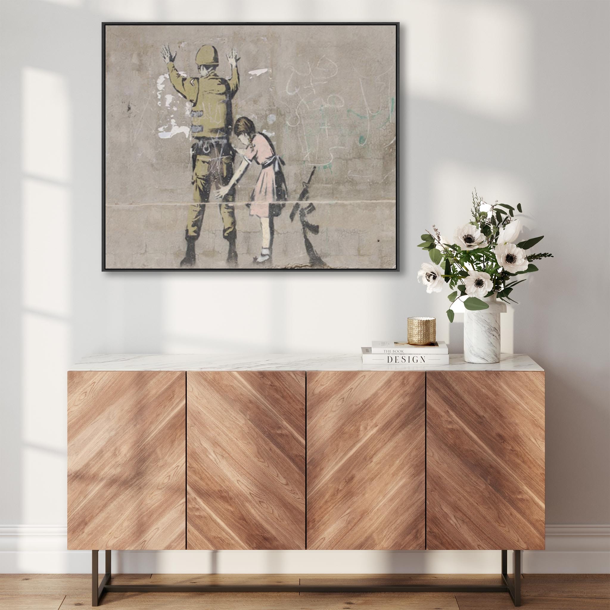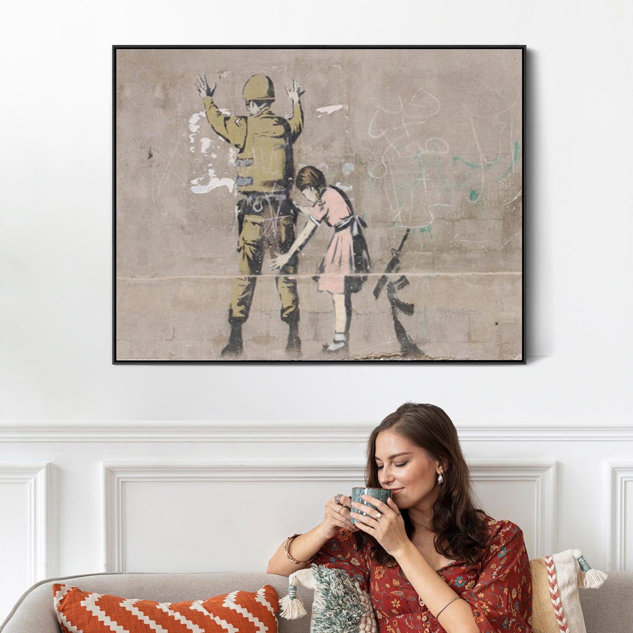 Large Banksy Framed Canvas Art Print - Girl Frisking Soldier