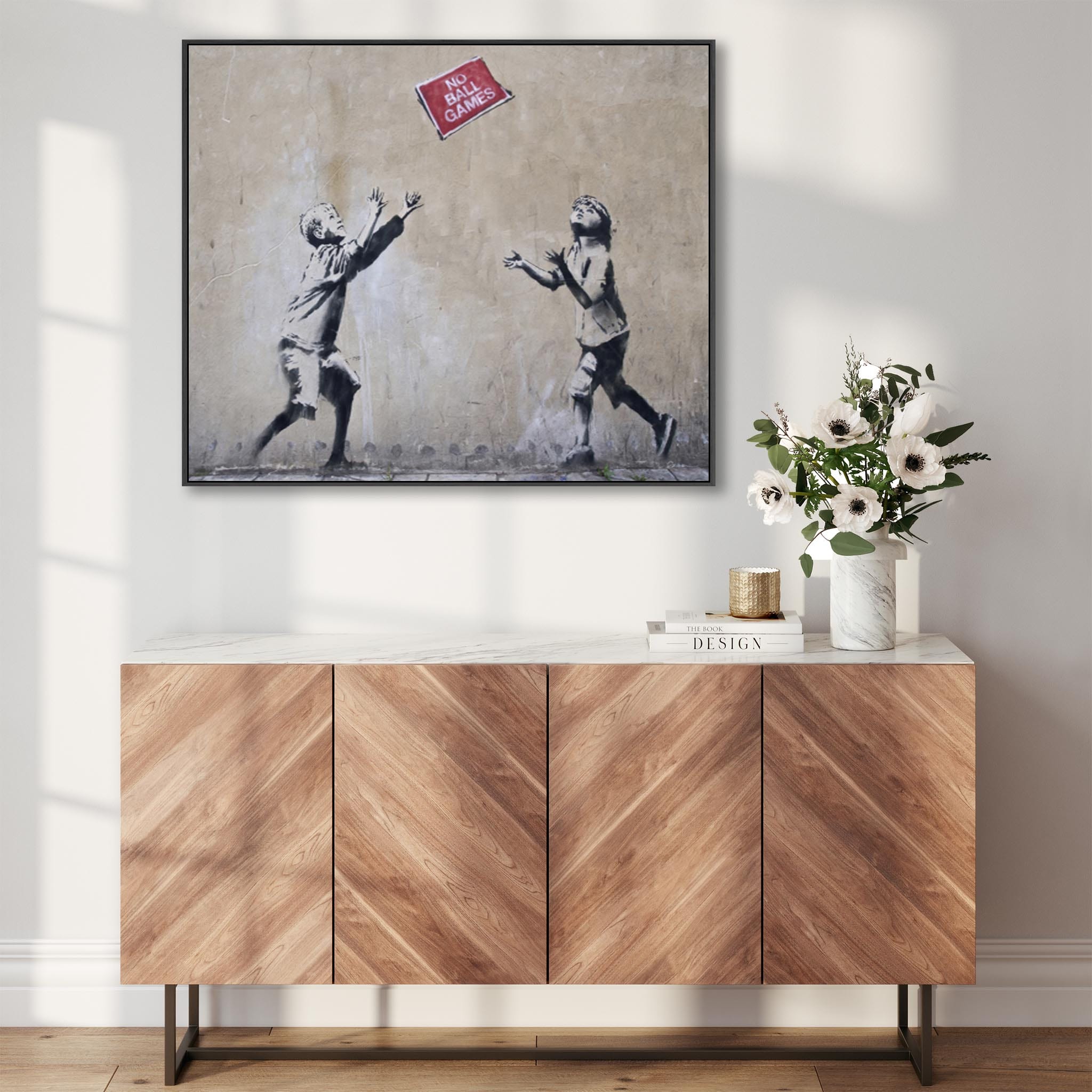 Large Banksy Framed Canvas Art Print - No Ball Games