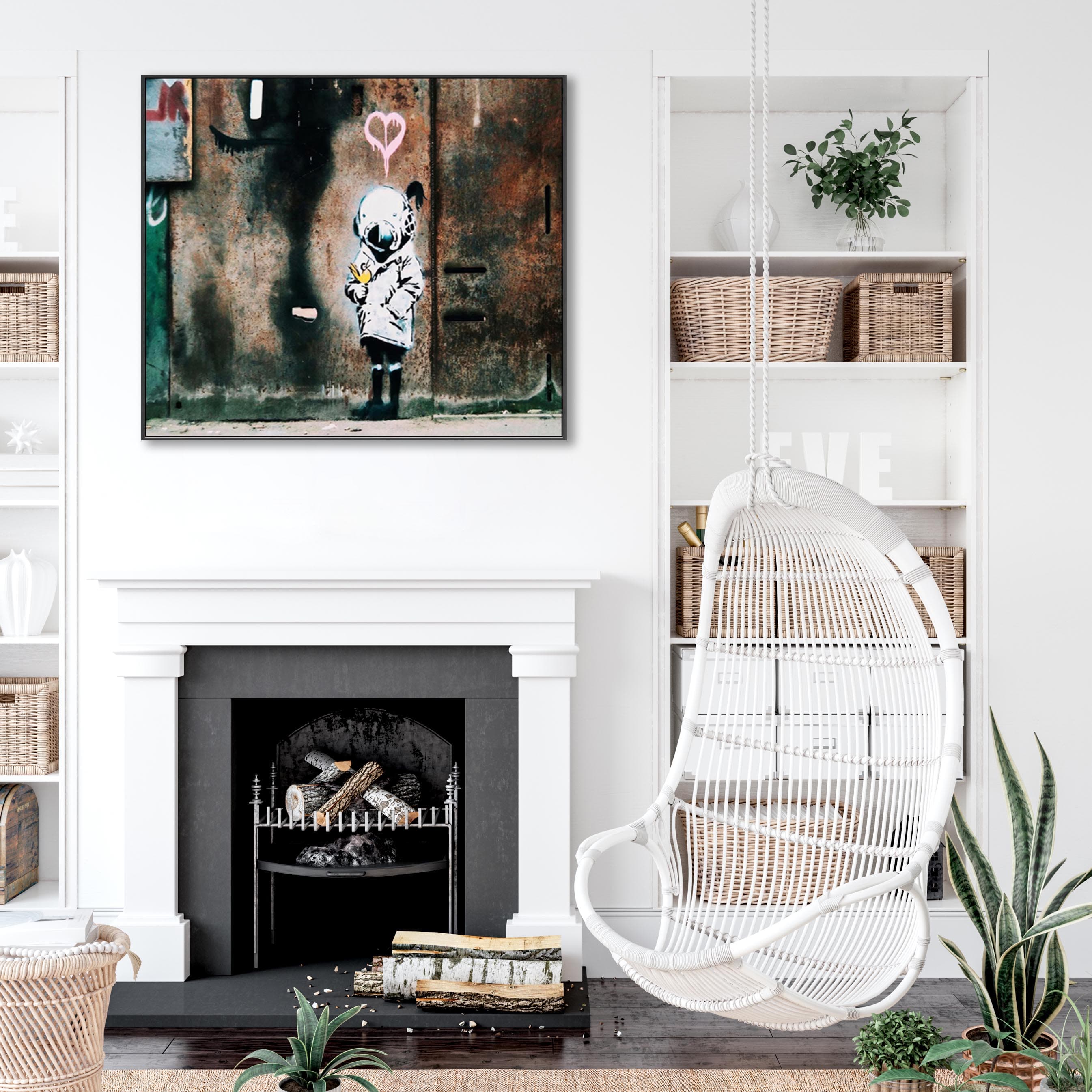 Large Banksy Framed Canvas Art Print - Space Girl and Bird