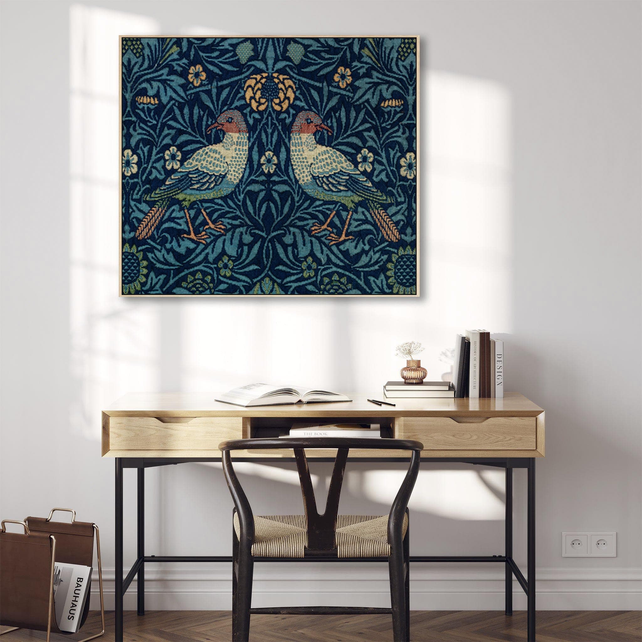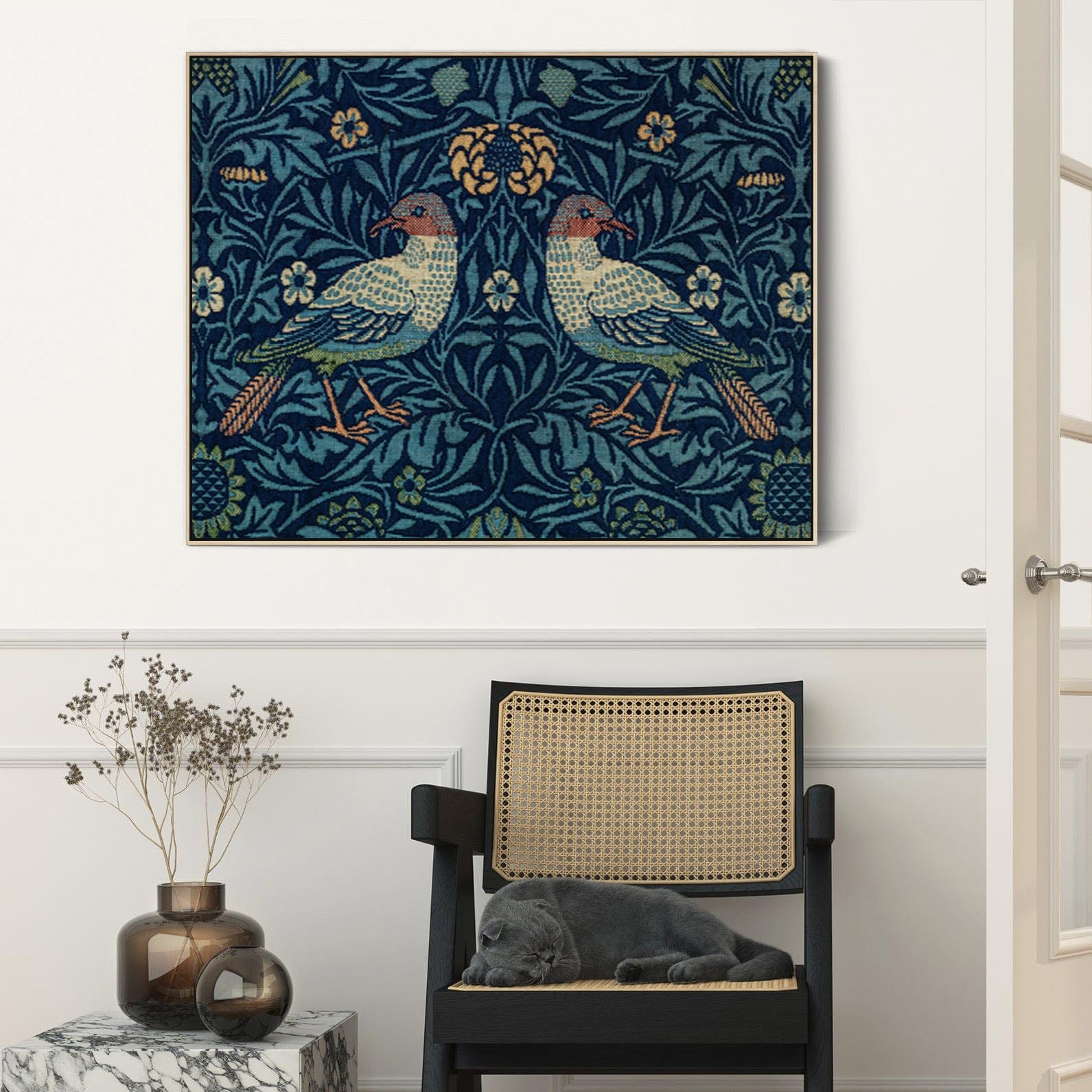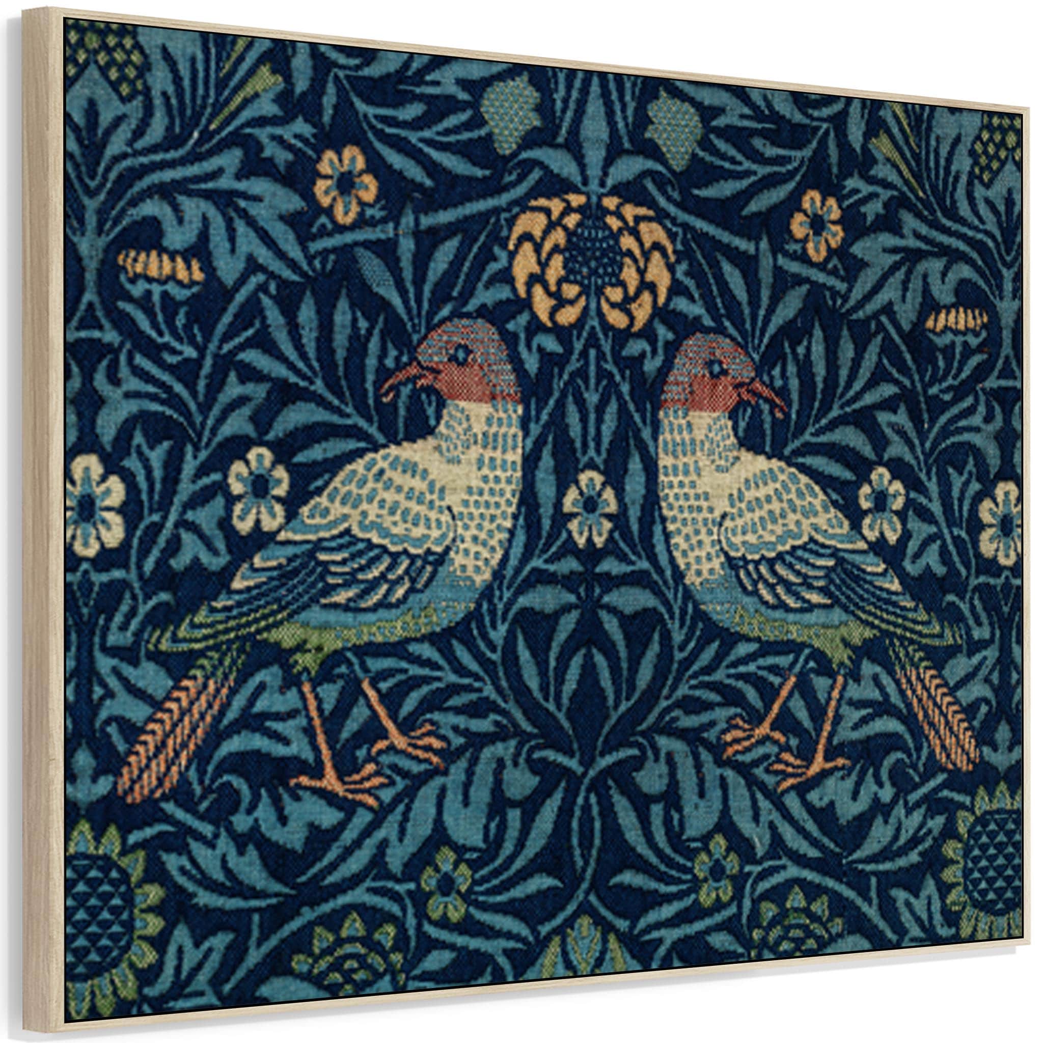 Large Blue William Morris Wall Art Framed Canvas Print of Famous Birds Design