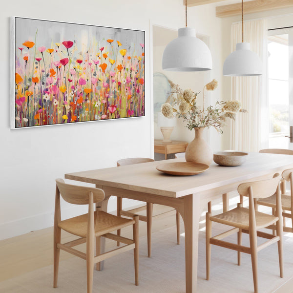 Large Bright Colourful Framed Wall Art for Living Room - Floral Canvas Artwork