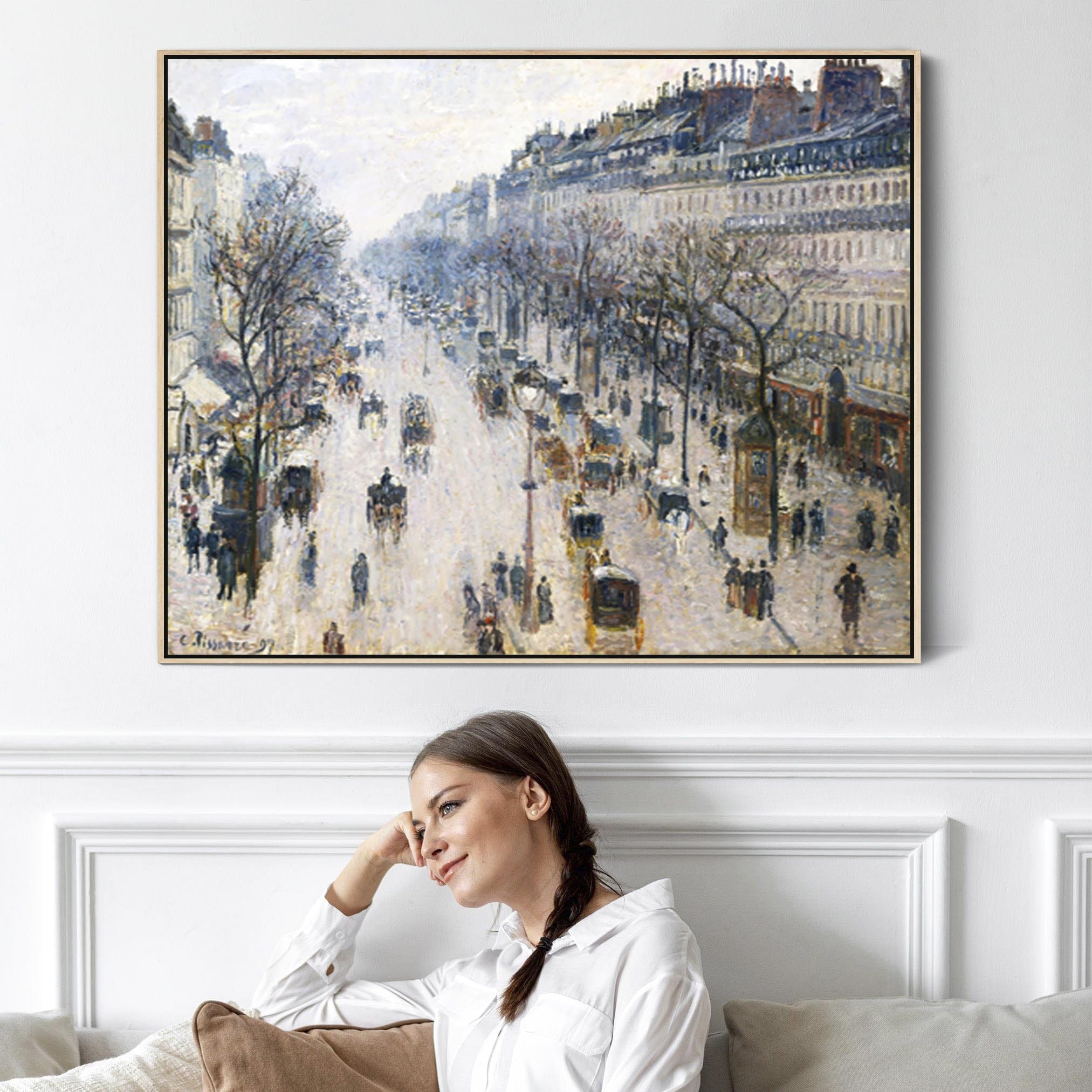 Large Camille Pissarro Wall Art Framed Canvas Print of Boulevard Montmartre Paris Painting