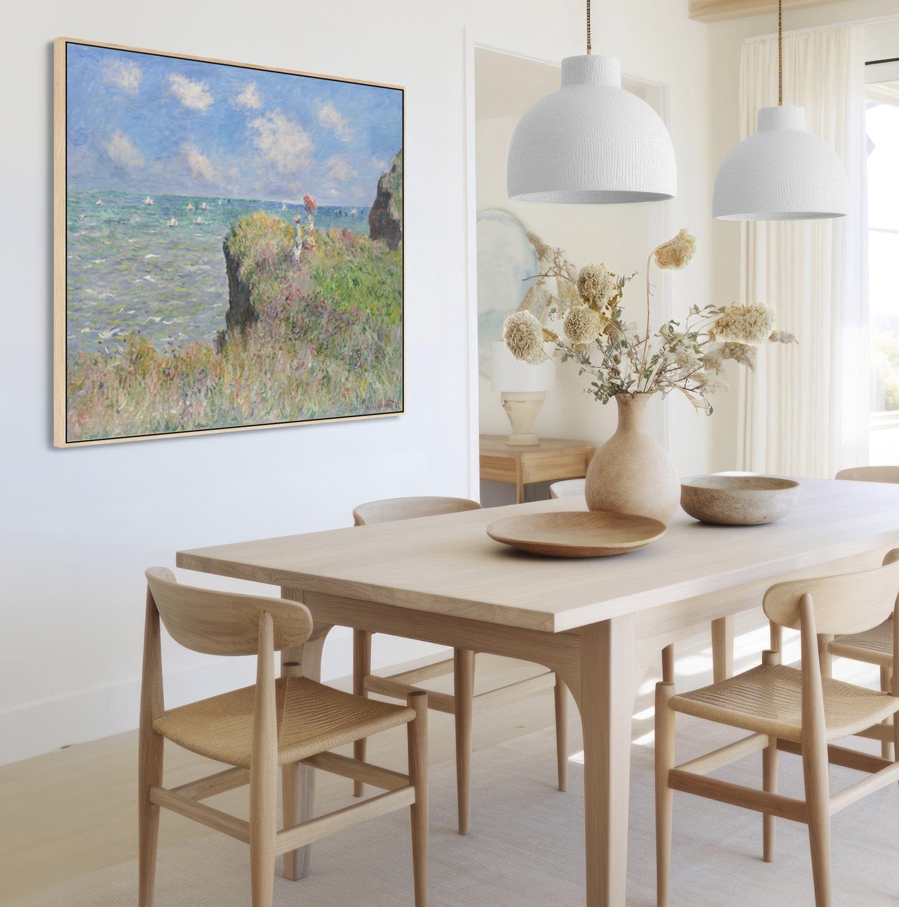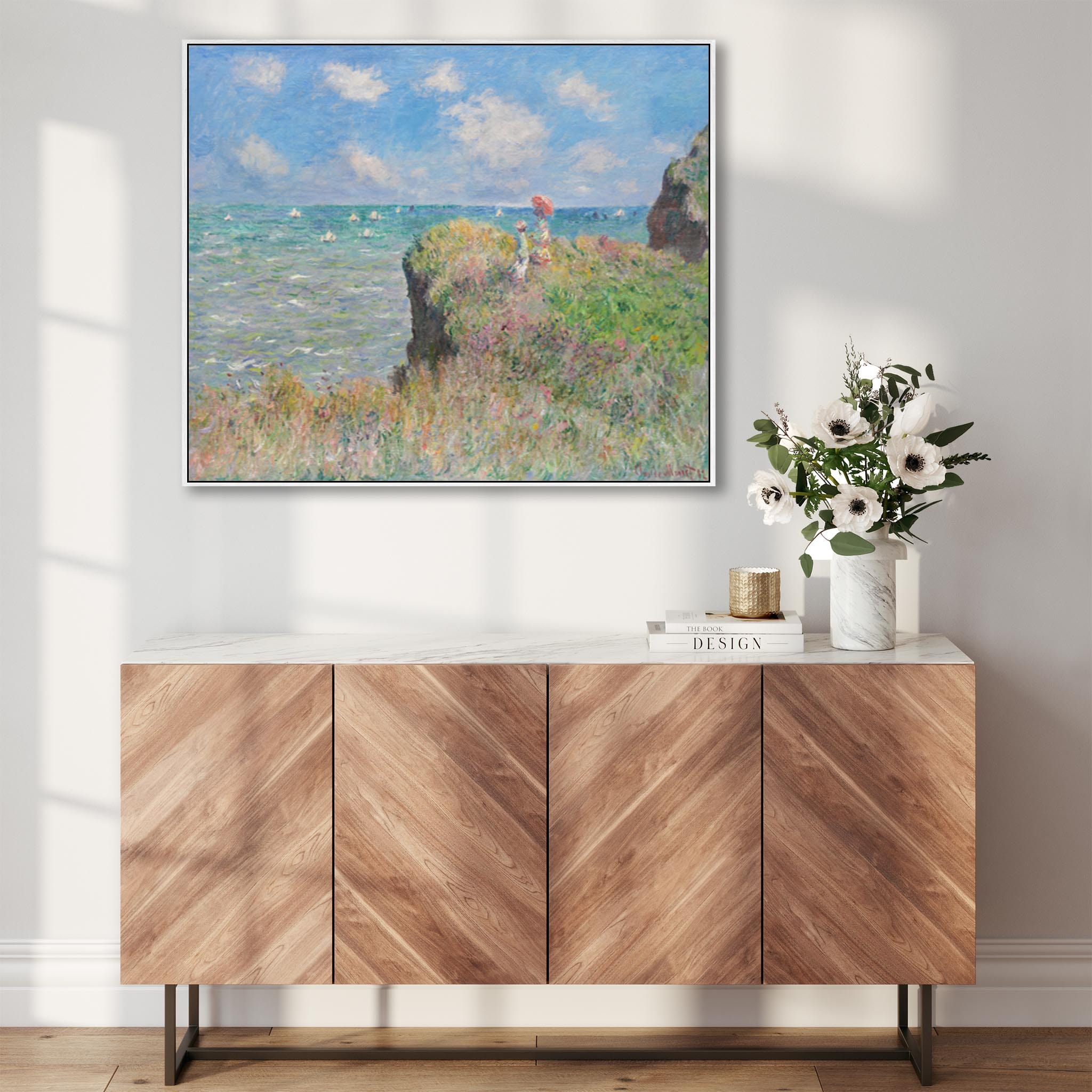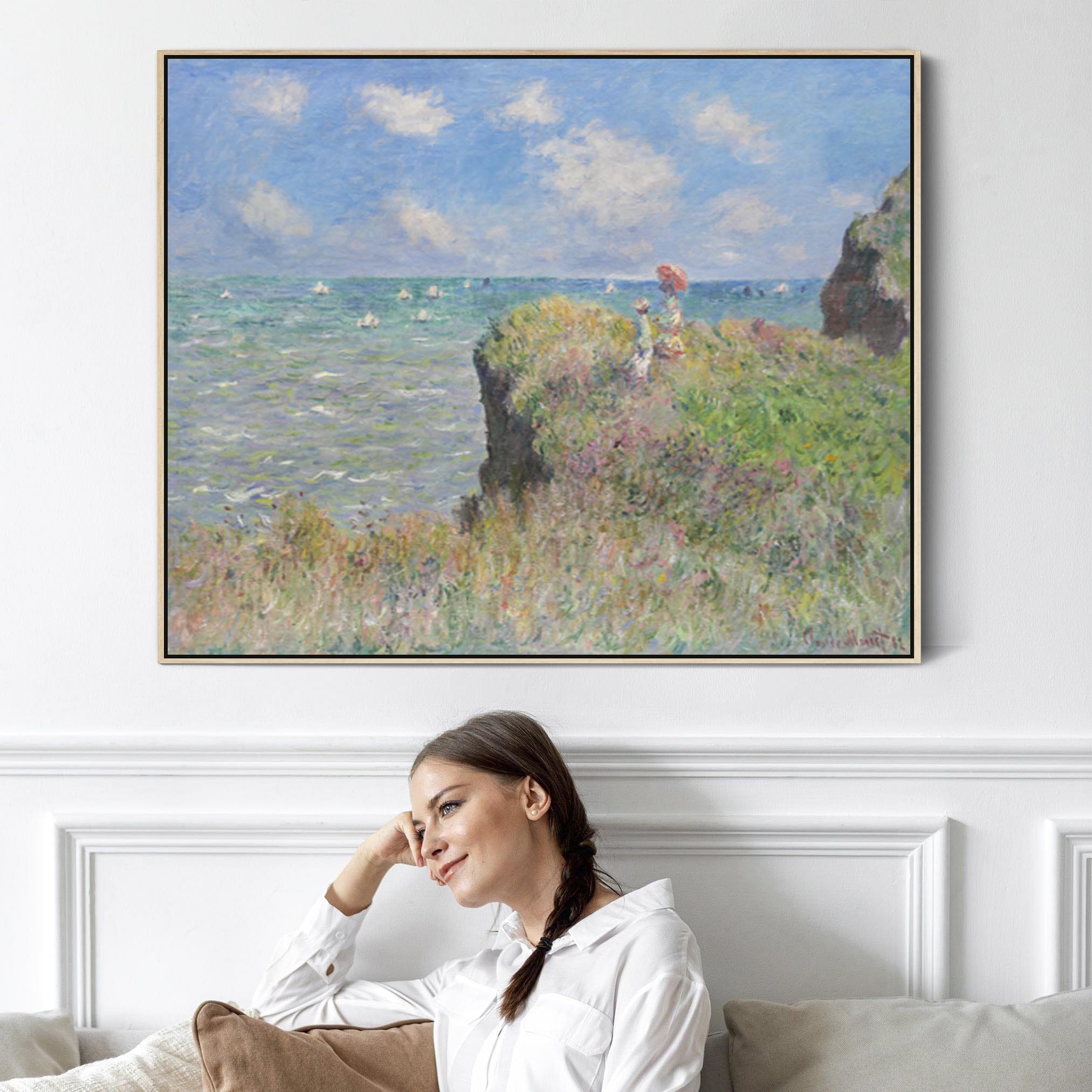 Large Claude Monet Framed Canvas Print of Cliff Walk at Pourville Landscape Painting