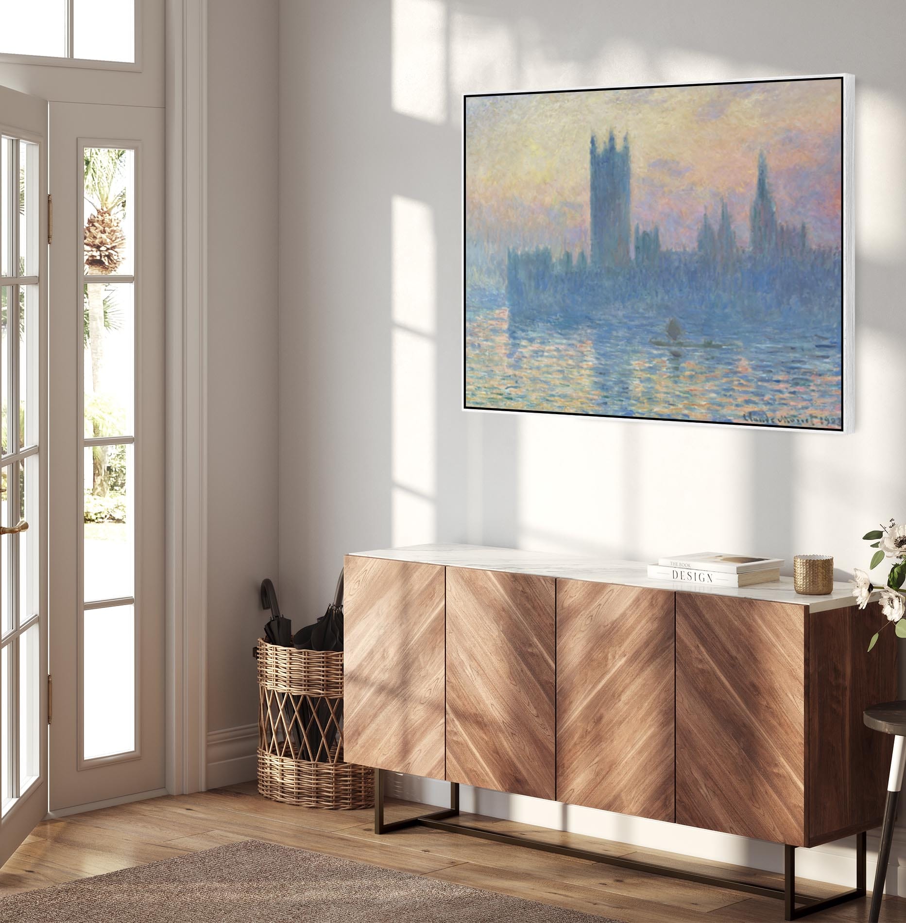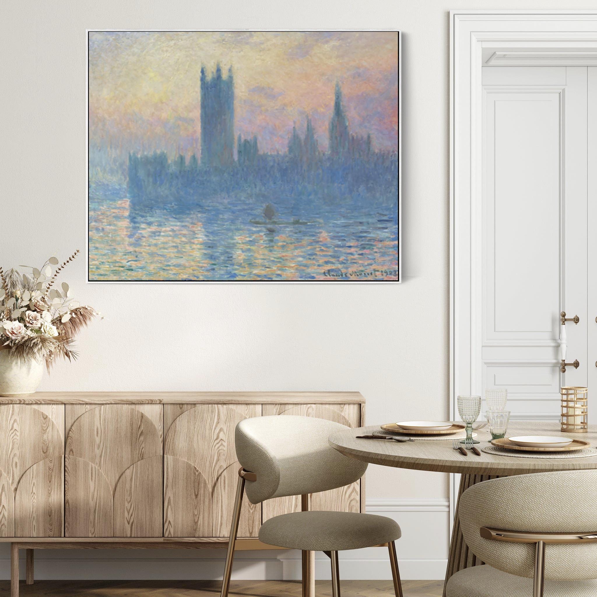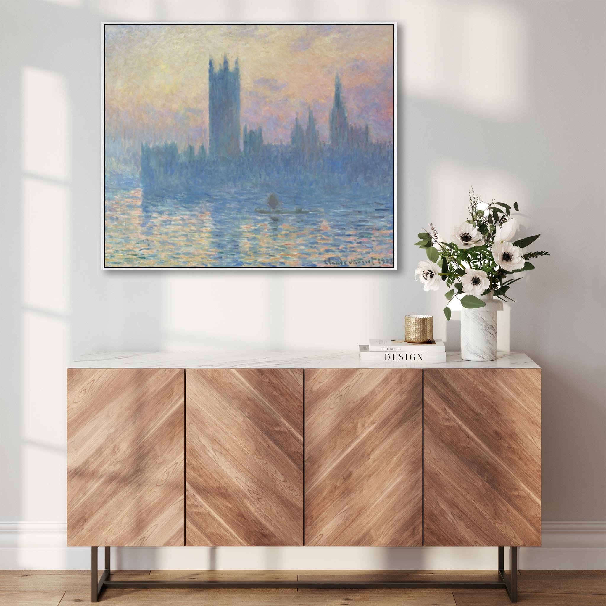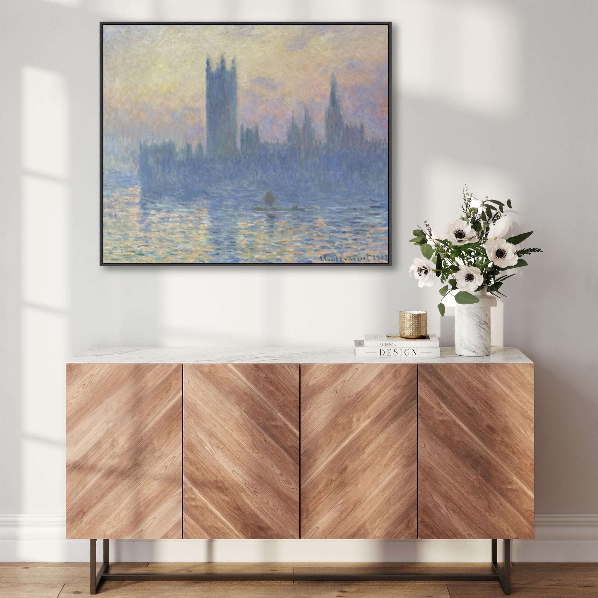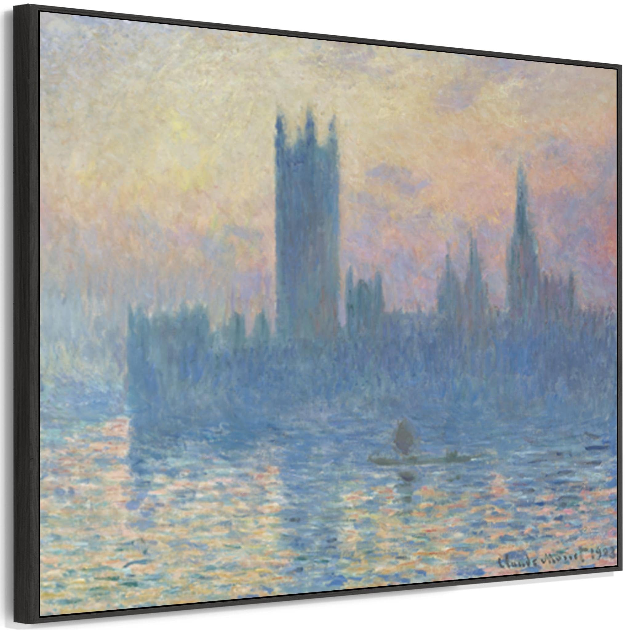 Large Claude Monet Framed Canvas Print of Houses of Parliament London Landscape Painting