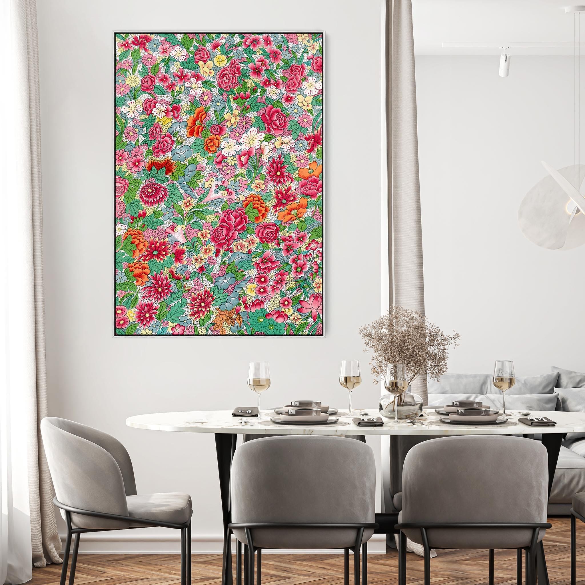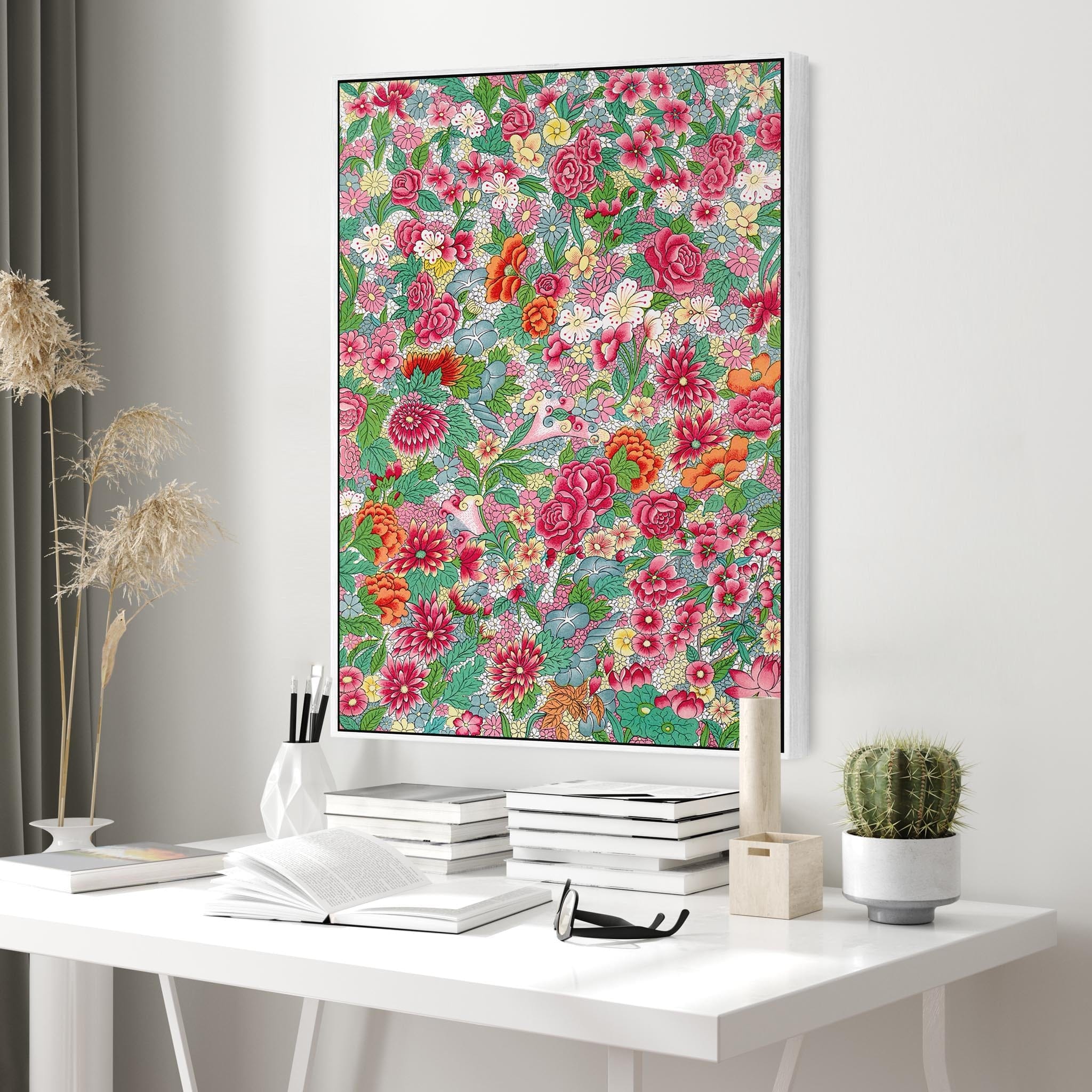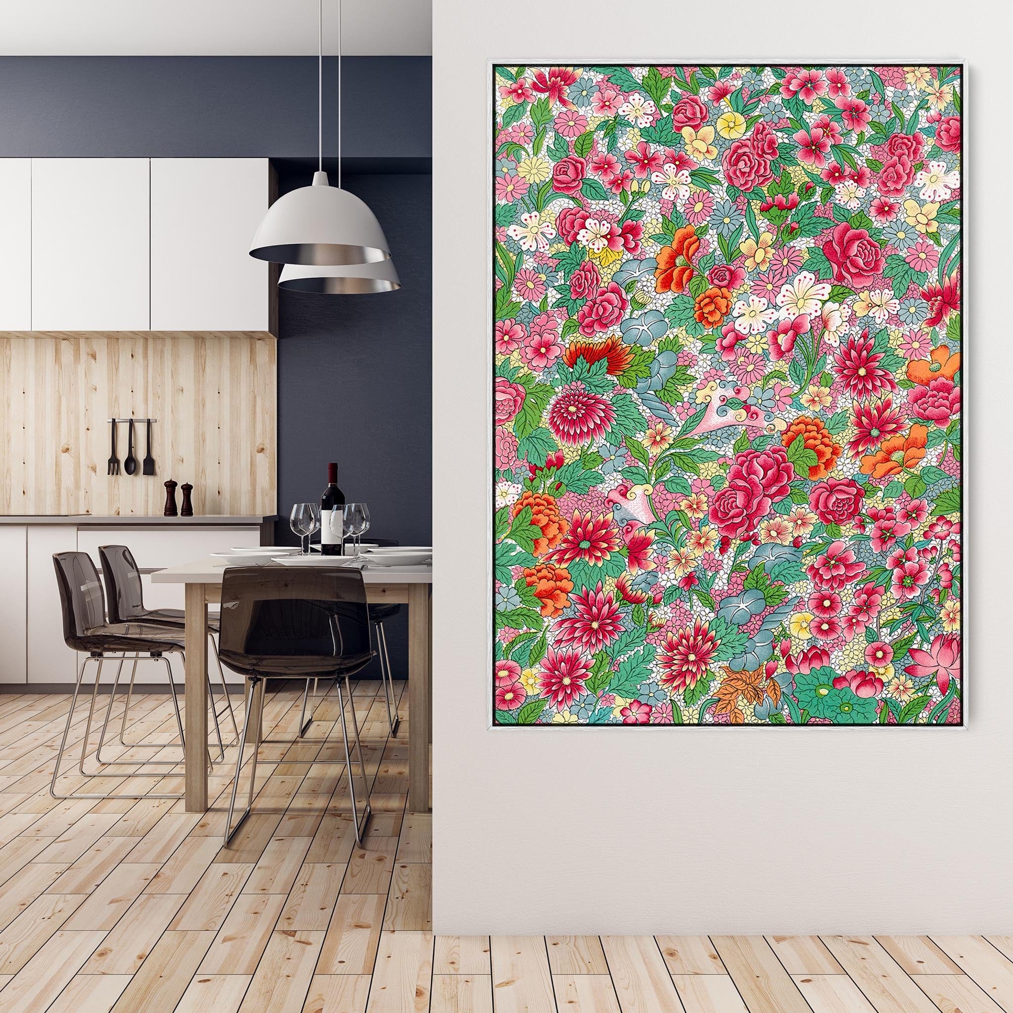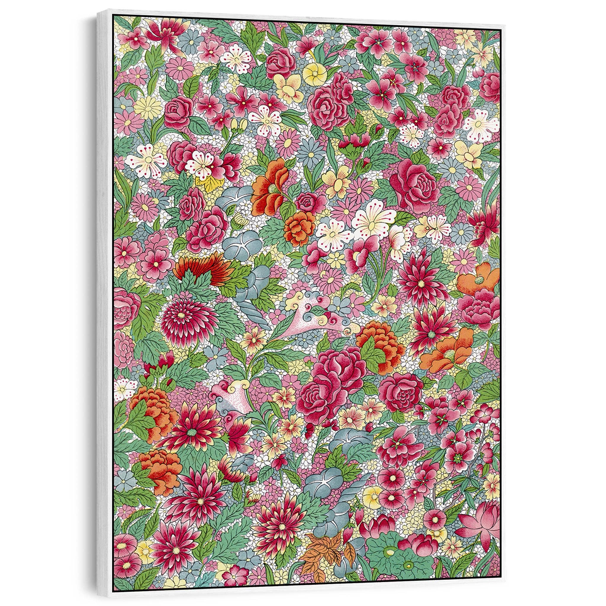 Large Colourful Floral Wall Art Framed Canvas Print of Japanese Flowers Painting
