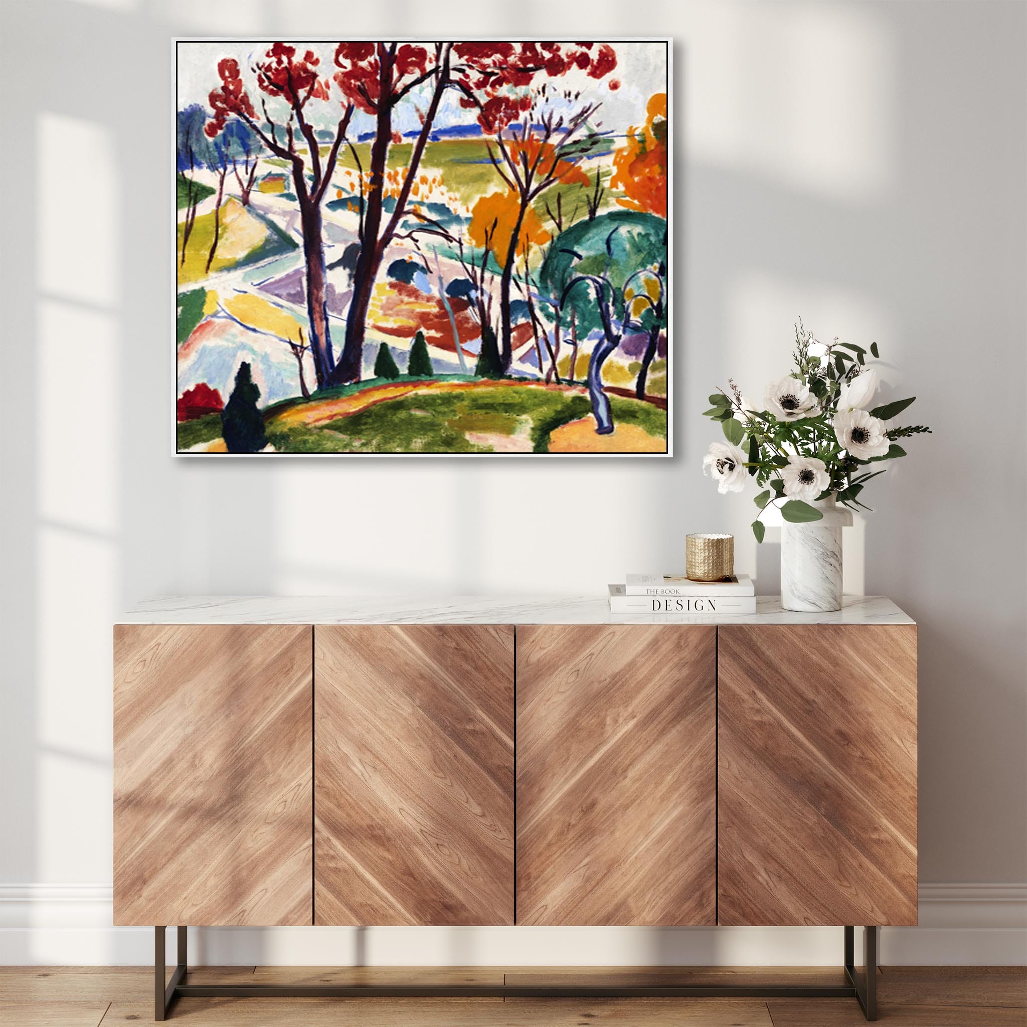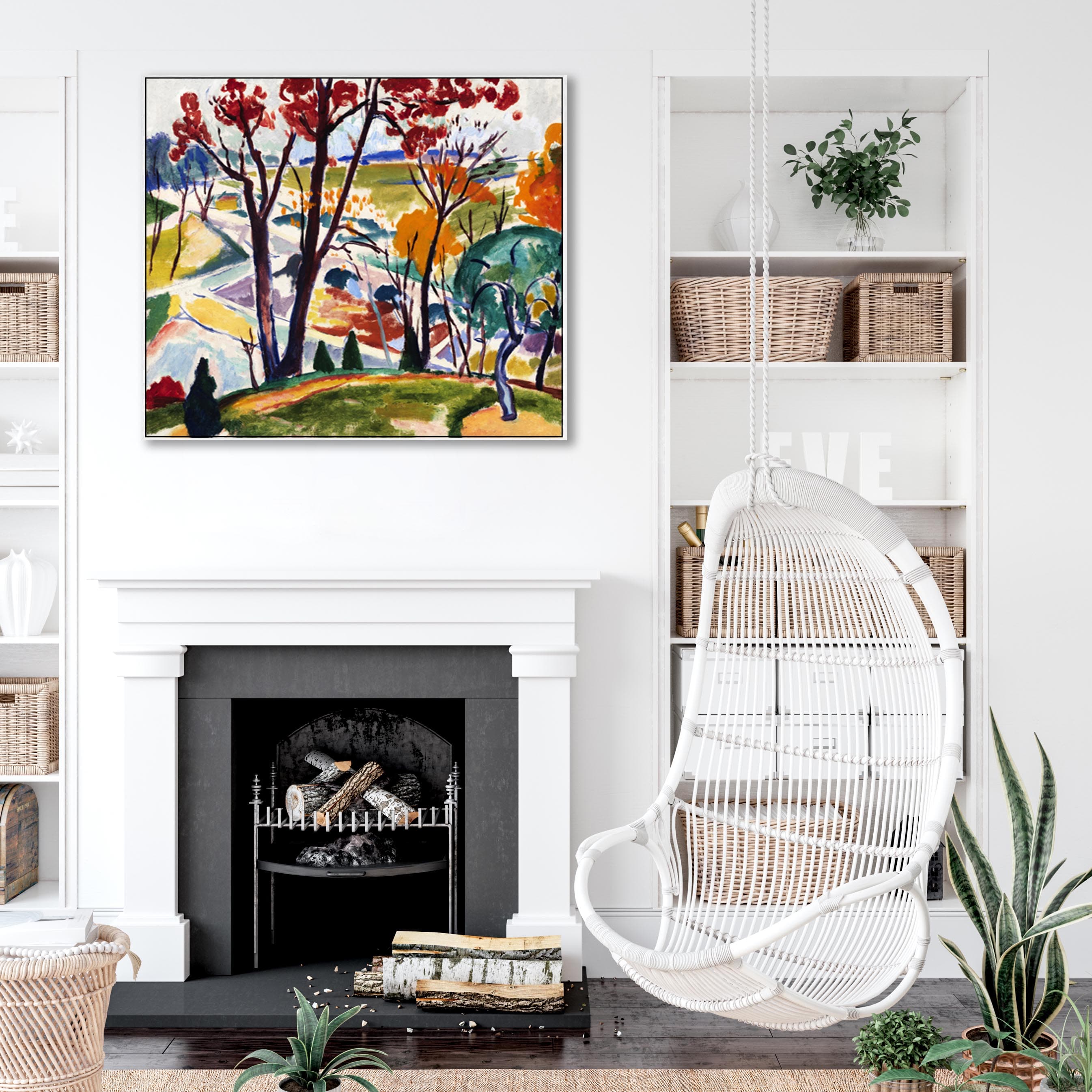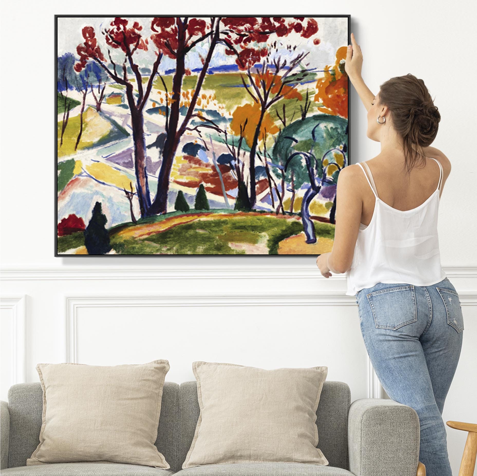 Large Colourful Wall Art Framed Canvas Print of Henry Lyman Sayen Huntingdon Bridge Landscape Valley Painting