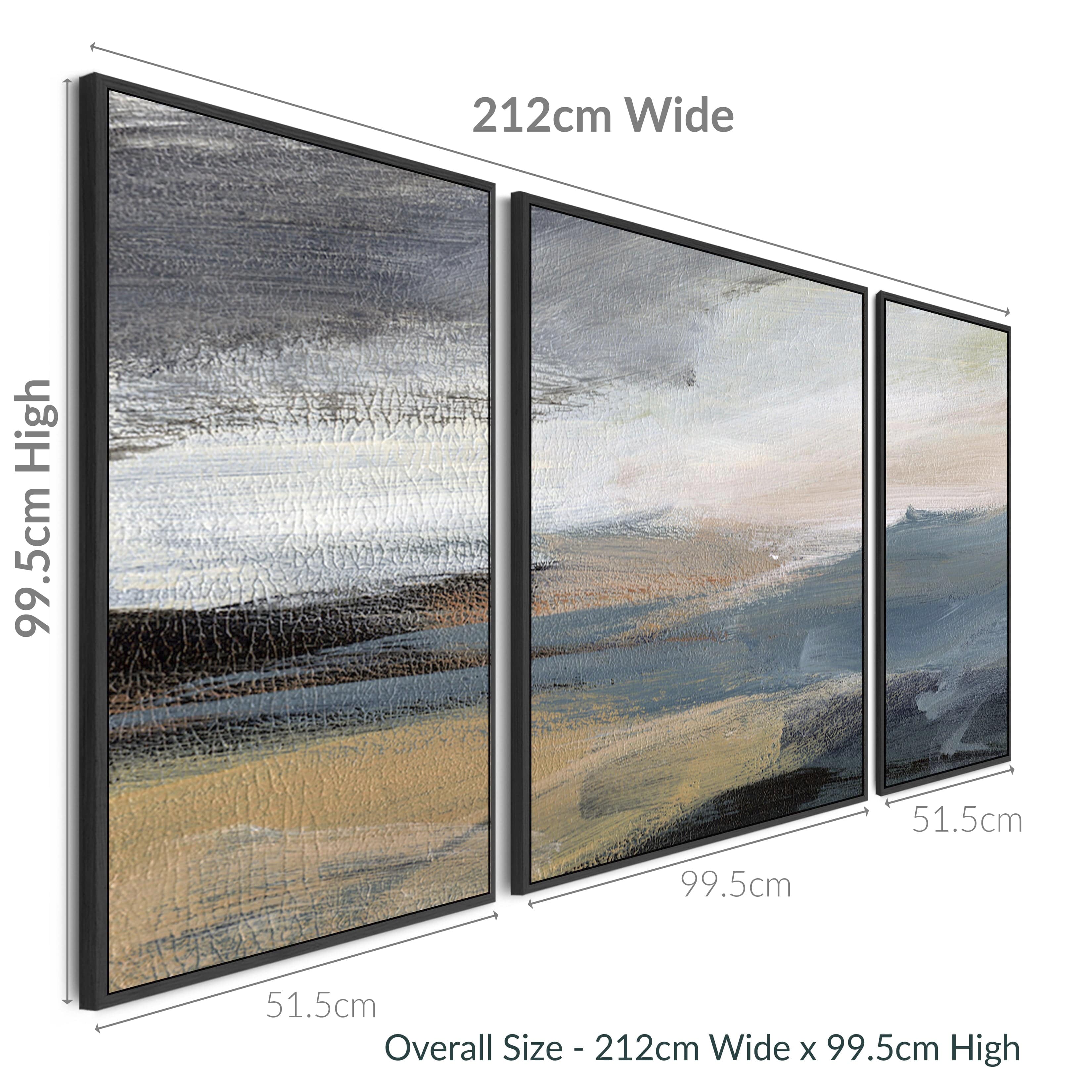 Extra Large Framed Abstract Artwork for Living Room - Blue Grey Canvas Wall Art - XXL 212cm Wide