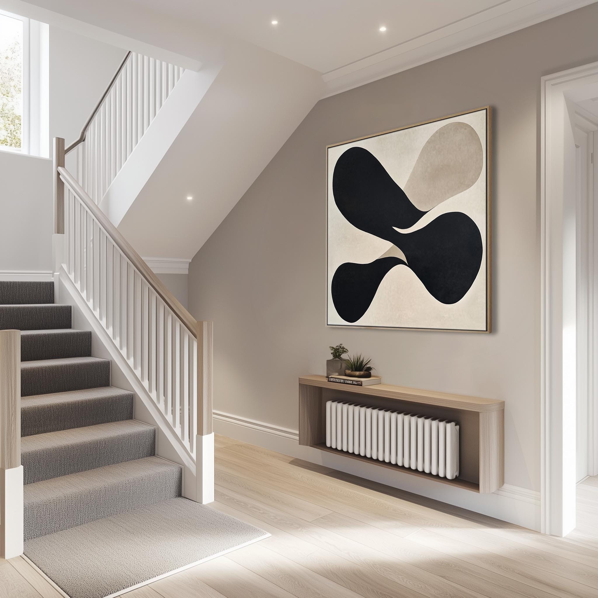 Large Hallway Beige Black Neutral Wall Art Framed - Symmetry Eclipse